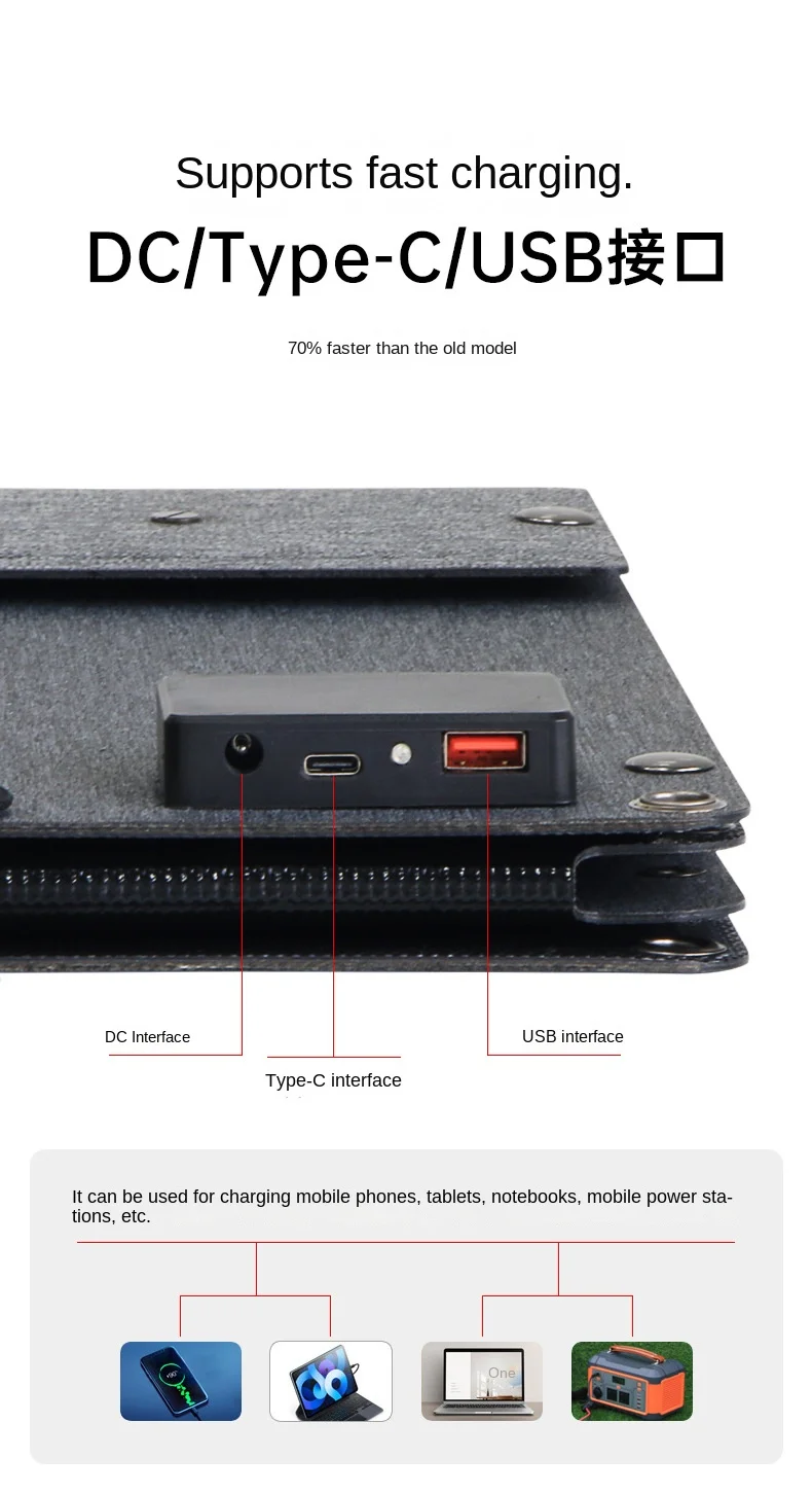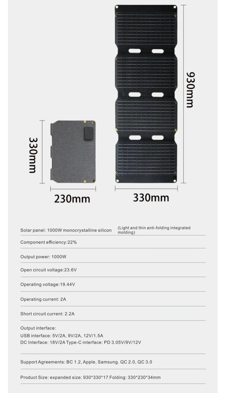 1000W Solar Folding Panel Portable Bag USB Output Solar Charger Outdoor Power Hiking Camping Power Generator Home Mobile Phone