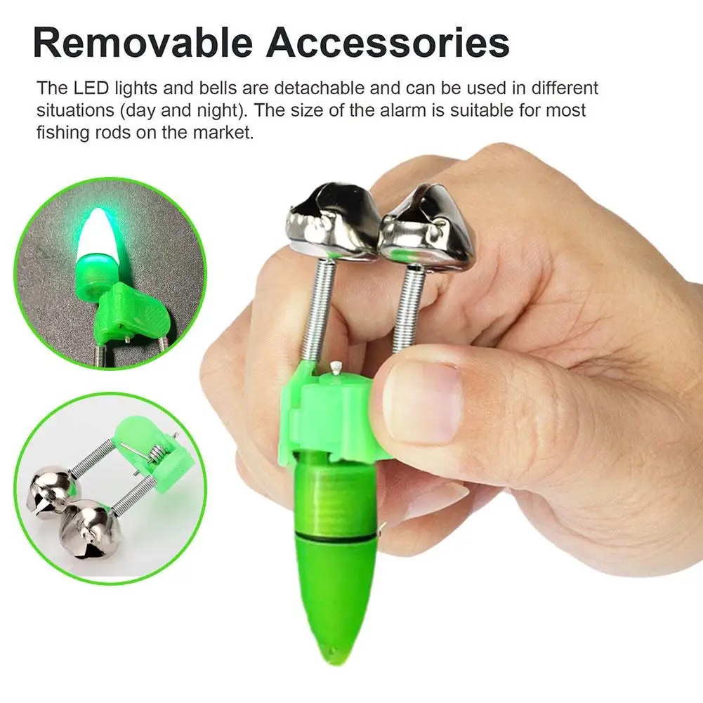 Product features: 1.Convenient and practical: This fishing rod with built-in lights and alarm bells is a convenient and practical tool for night fishing. The lights help to illuminate the surrounding area, making it easier to see your fishing line and detect any potential bites. The alarm bells provide an audible alert when a fish is biting, ensuring you never miss a catch. 2.Easy to install: The plastic clip-on design allows for easy installation on your fishing rod. Simply attach the light and alarm bells to the desired position on the rod using the clip, and you're ready to go. No complicated setup or additional tools required. 3.Durable and reliable: Made from high-quality materials, this fishing rod accessory is built to last. The lights and alarm bells are resistant to water and impact, ensuring they can withstand the rigors of fishing in various conditions. You can rely on this tool to perform consistently and reliably. 4.Versatile use: This fishing rod accessory is suitable for a variety of fishing scenarios, including freshwater and saltwater fishing. Whether you're fishing from a boat, shore, or pier, the lights and alarm bells will enhance your fishing experience and increase your chances of a successful catch. It's a must-have tool for avid anglers who enjoy night fishing.