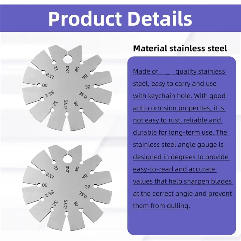 Made of high quality stainless steel, anti-corrosion and anti-rust, not easy to break or deform, durable and reusable Our knife angle finder ranges from 15 to 120 degrees. Straight ruler and precipitator combination design: The protractor can measure 0-180 degrees in both positive and negative directions. Straightedge measures length 0-14cm/0-5.51inches Adopts degree design, clear and accurate reading, easy to read, durable. Easy to use. Adjustable protractor arm locks into desired position with knurled thumb nut to quickly and easily identify Knife angle finder and protractor is suitable for engineering, angle measurement, architectural design, carpentry, length measurement, it is a common tool for craftsmen, architects and designers 2pcs knife angle finder with storage box, 1pcs protractor. They are suitable for setting bevels, drawing radial lines, measuring and marking angles and more