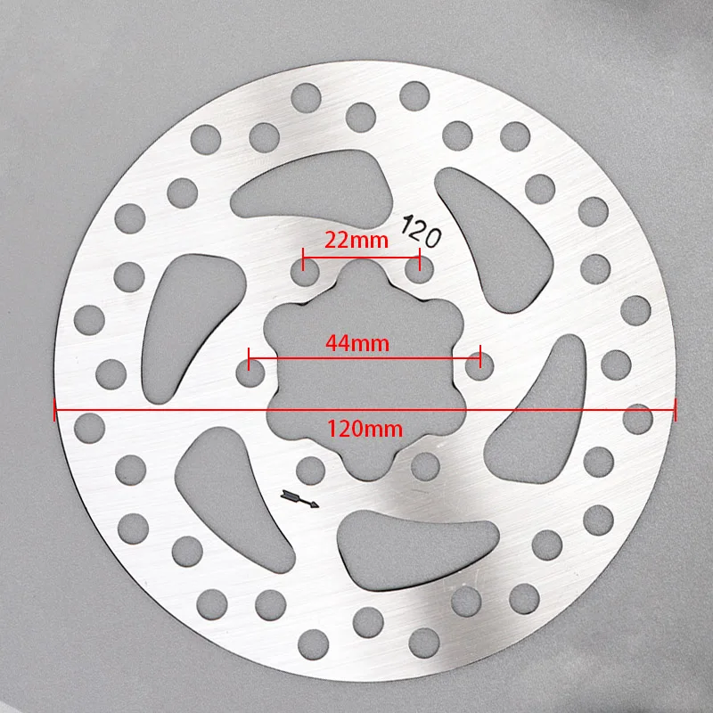 Disc diameter: 120mmHole center distance: 44mmThickness: about 1.8mmWeight: about 99gramsProcess: Stainless steel one-piece moldingDistance between adjacent holes: 22mm