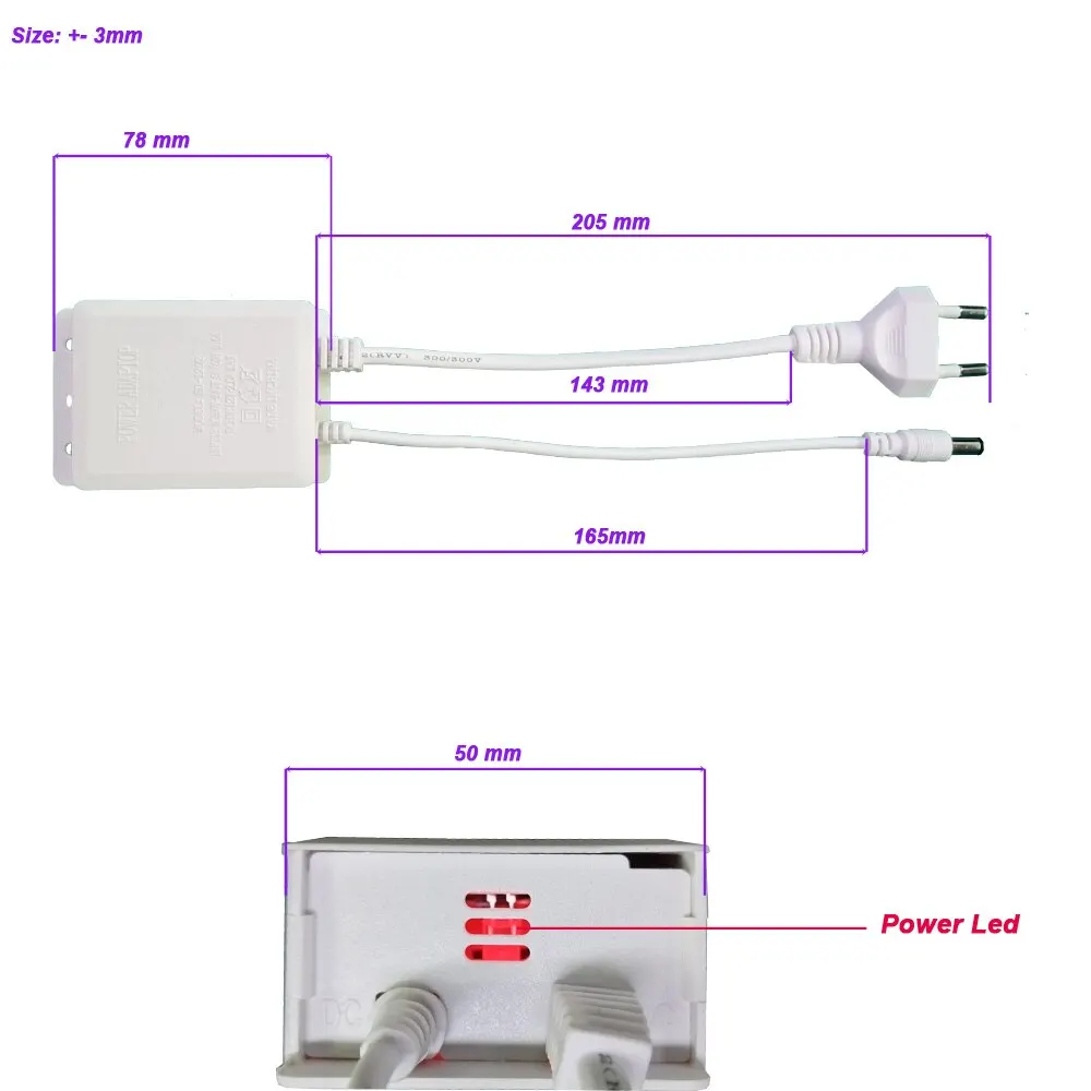 4. Output voltage: DC12V, current 2A, +-10 error. Please do not use it beyond the scope.