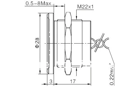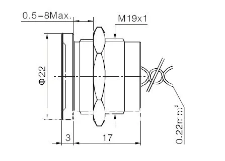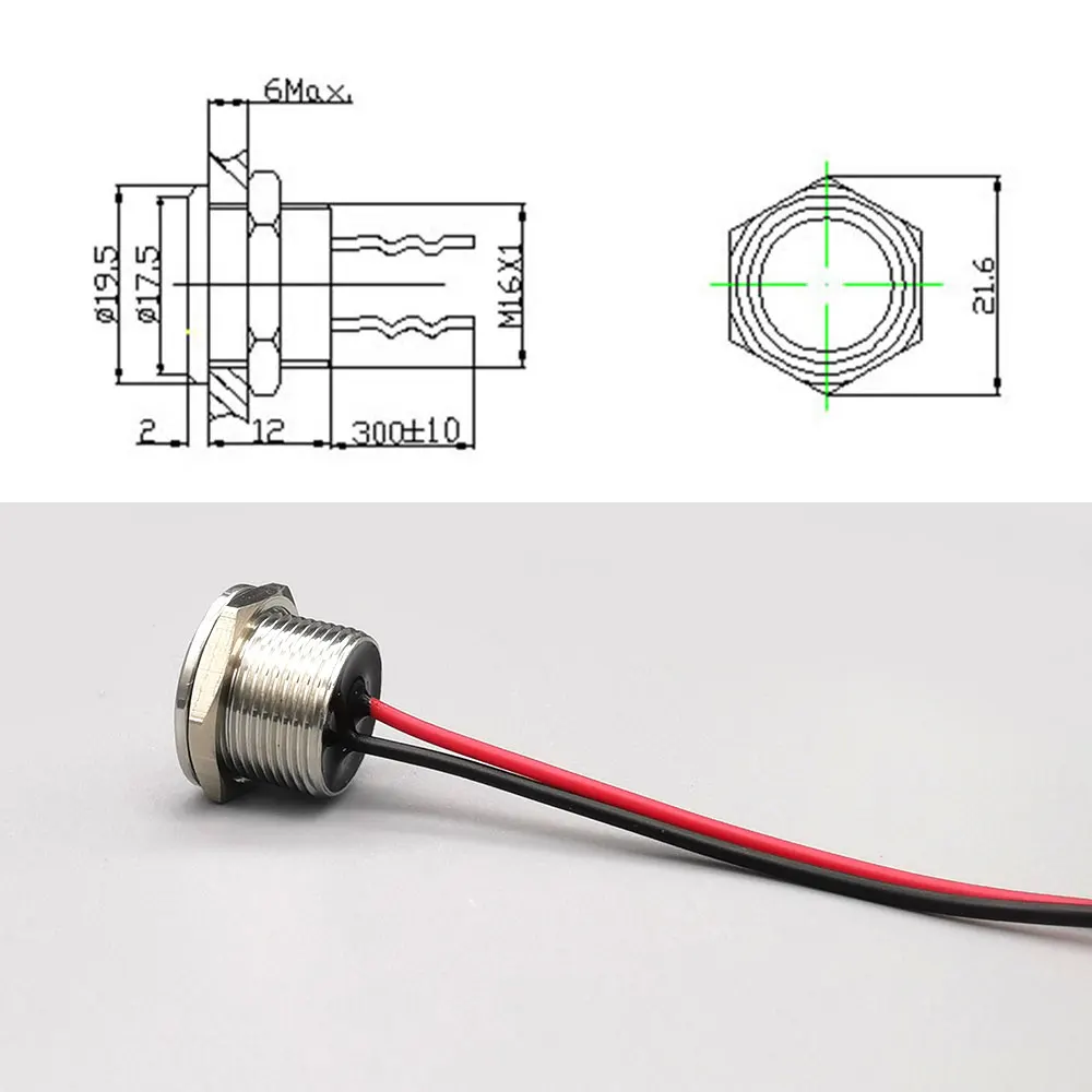 Install diameter : 19mm hole diameterRated current : 200mARated voltage : 24VAC/DCCrust Material : Stainless steelCrust color: Stainless steelIP rated : IP68Life : 5 MillionStandard : Rohs, CEOperation force: 2 to 6 (N)Operation temperature: - 40 to +75 degree