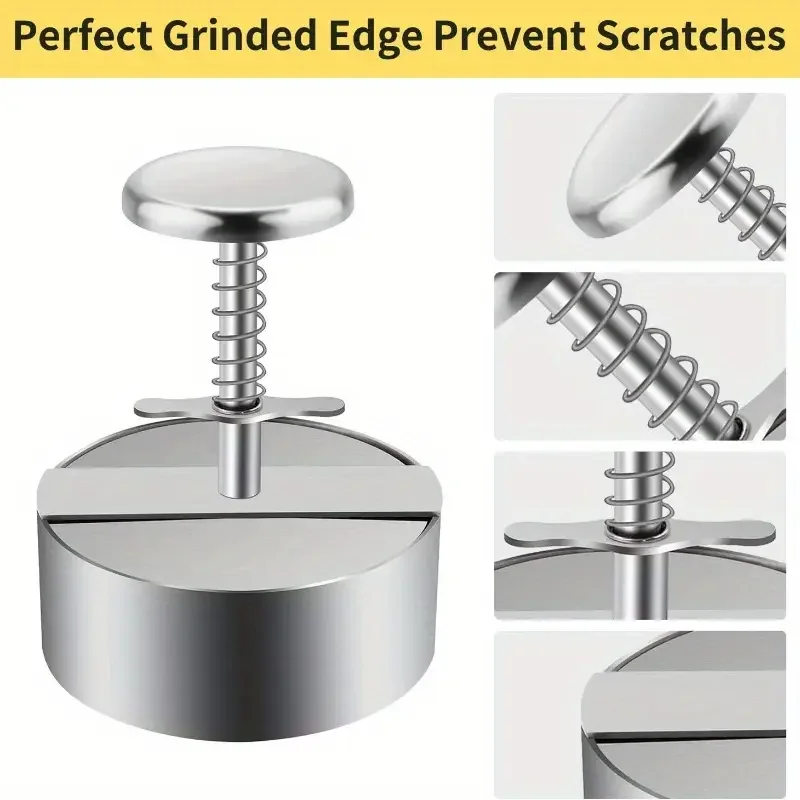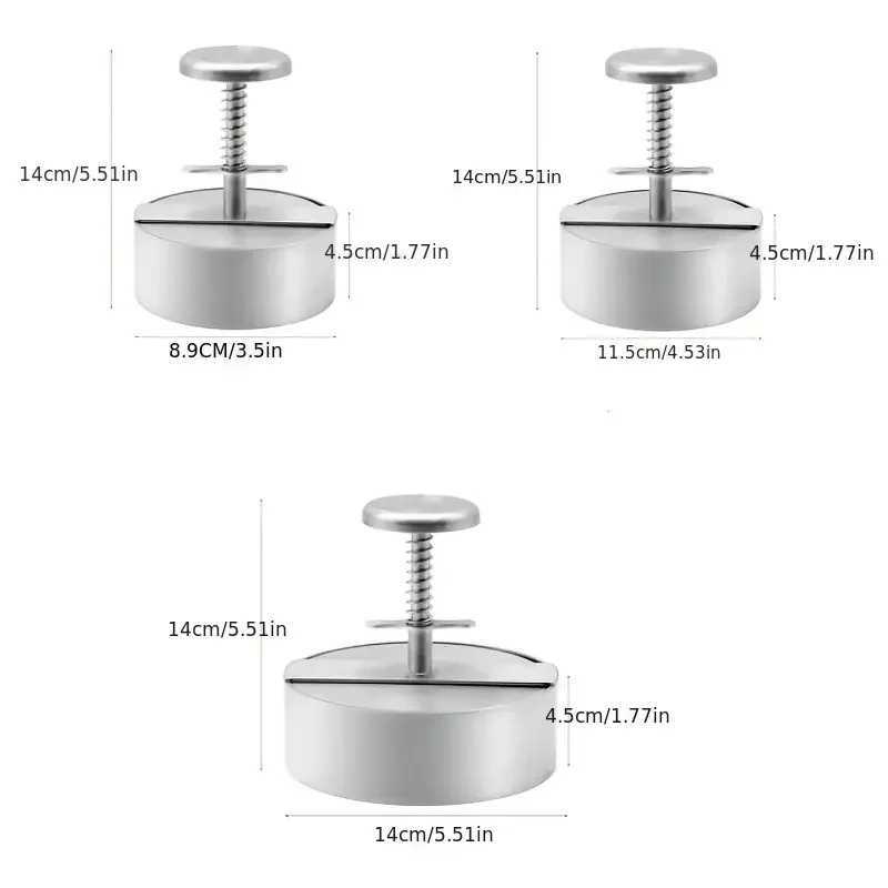 Create perfect, uniform hamburgers every time with this heavy-duty 3-size patty press set, ideal for home cooks, BBQ enthusiasts, and commercial kitchens.