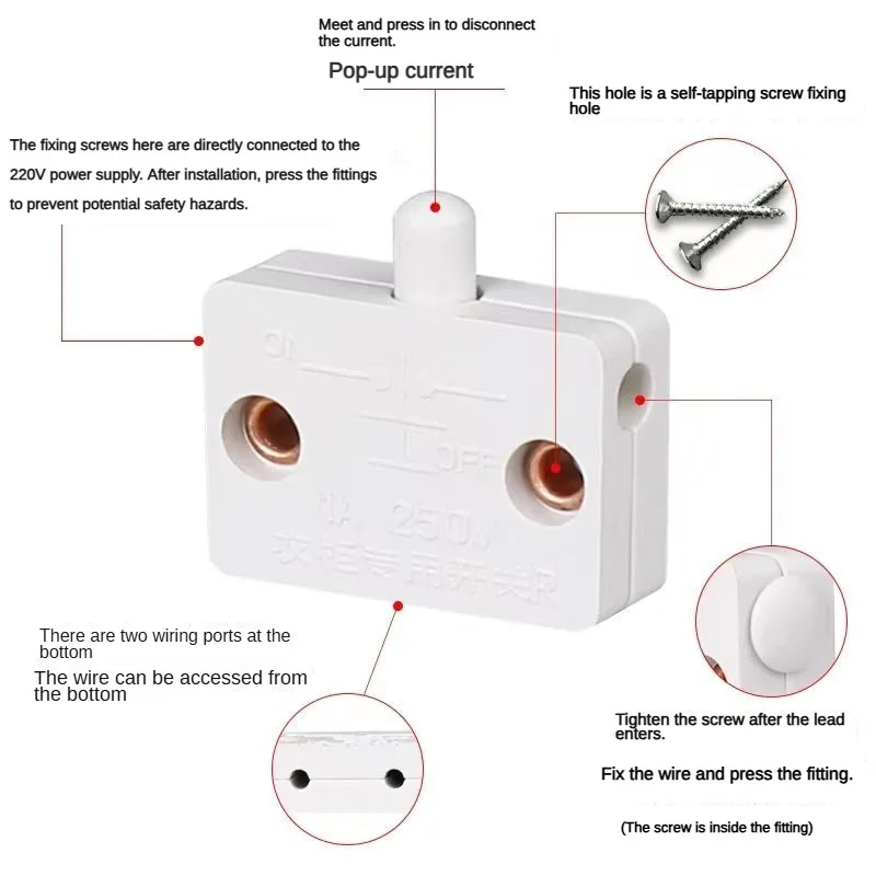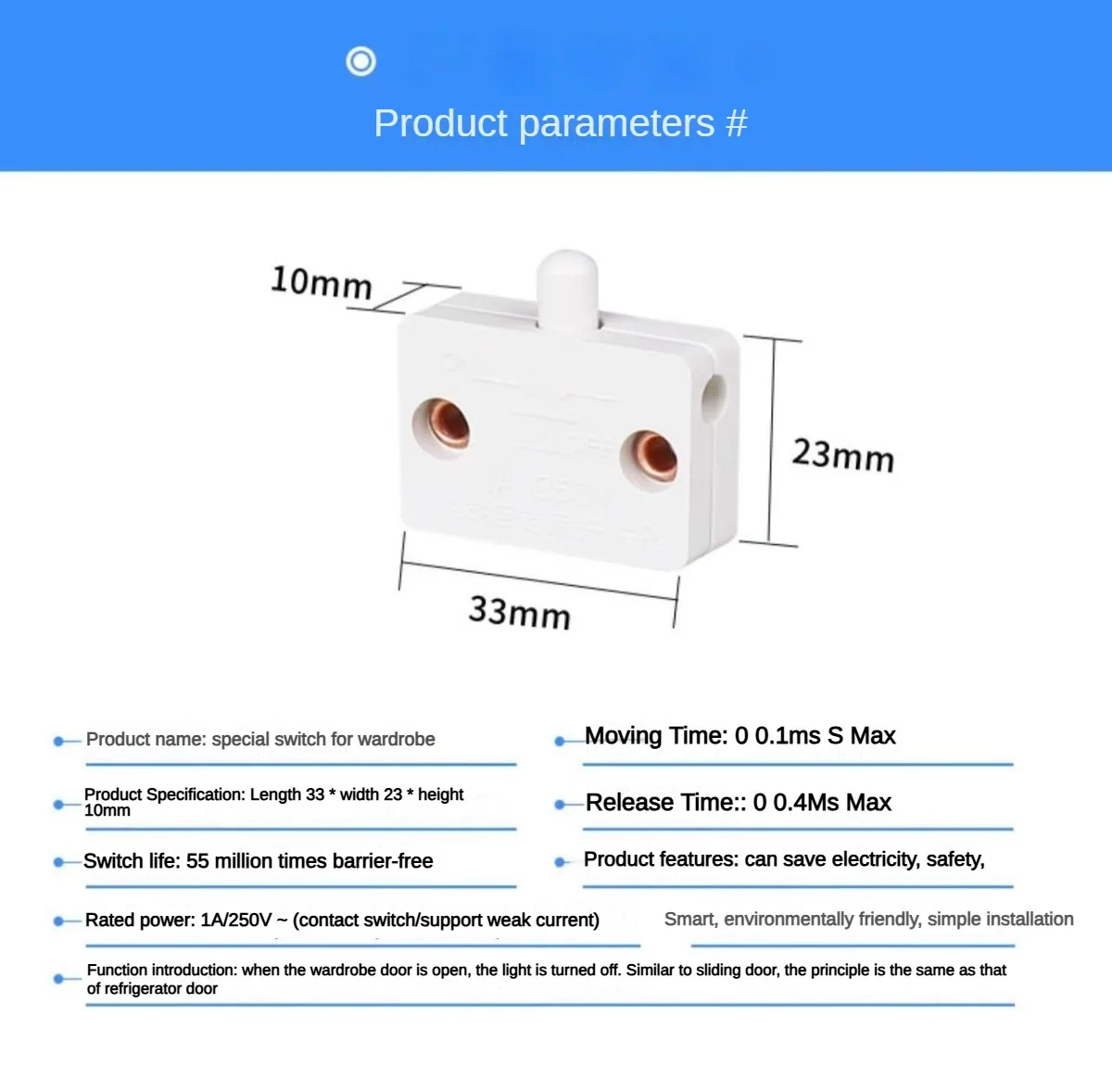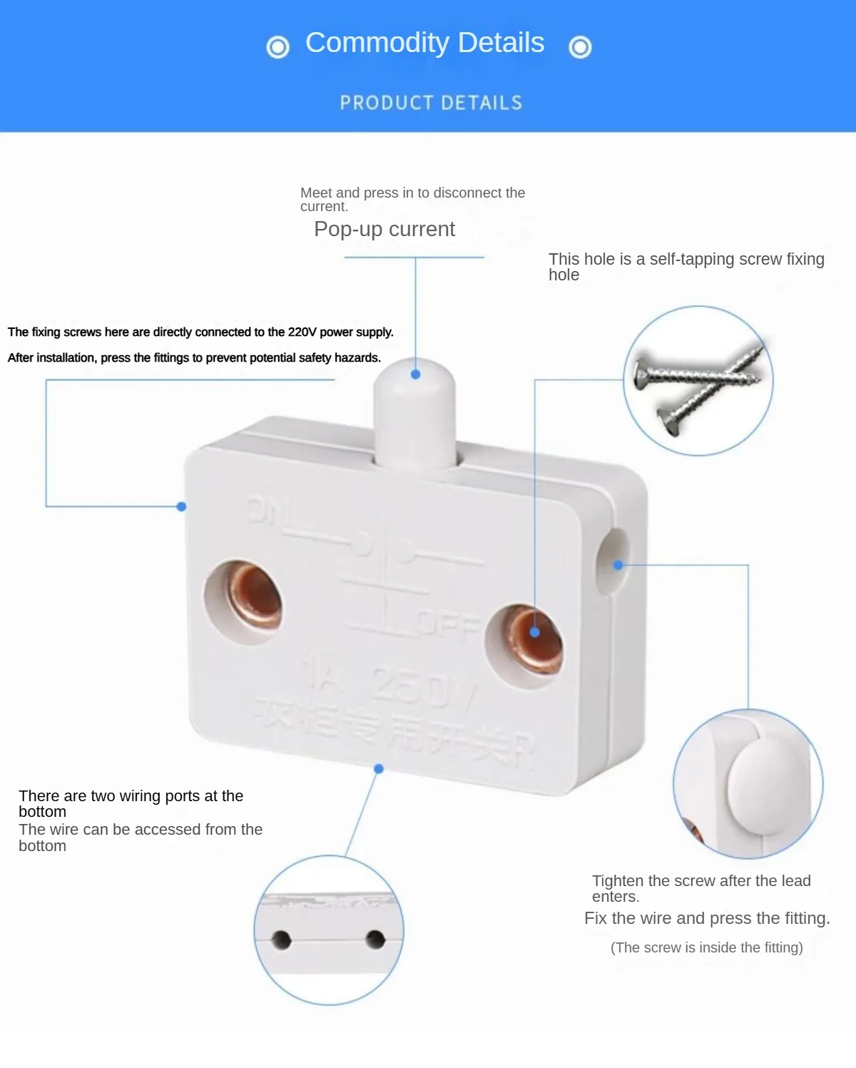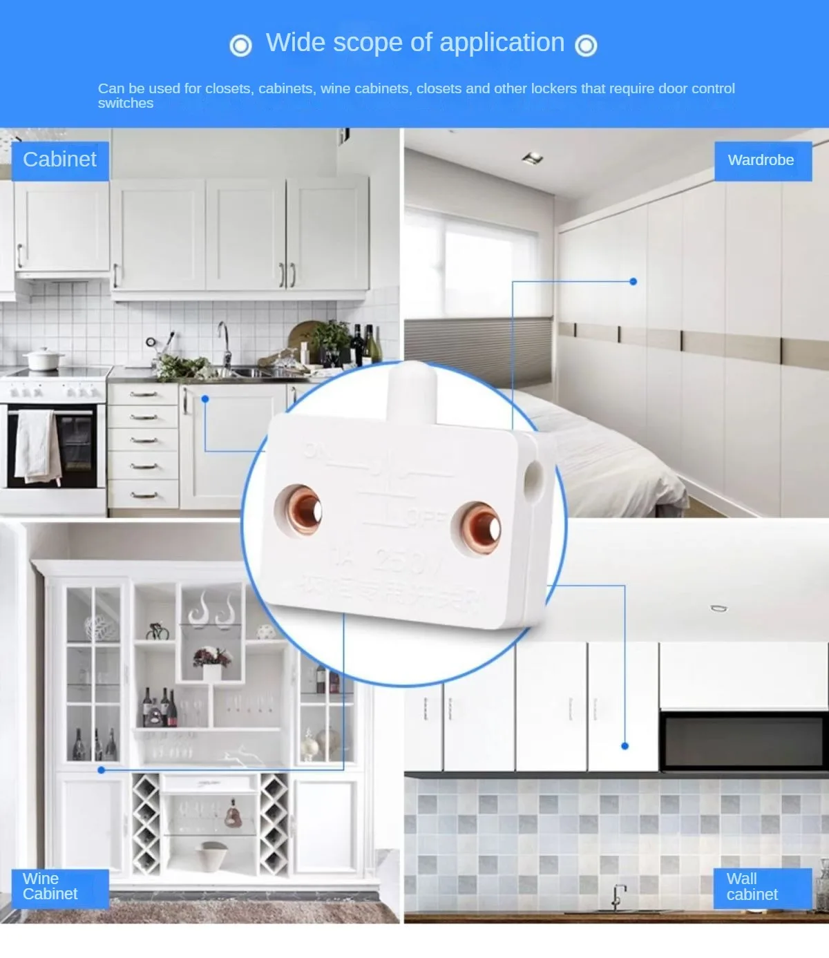 Function introduction: the wardrobe door turns on when the light is opened and turns off when it is closed. Similar to sliding doors, the principle is "refrigerator door"