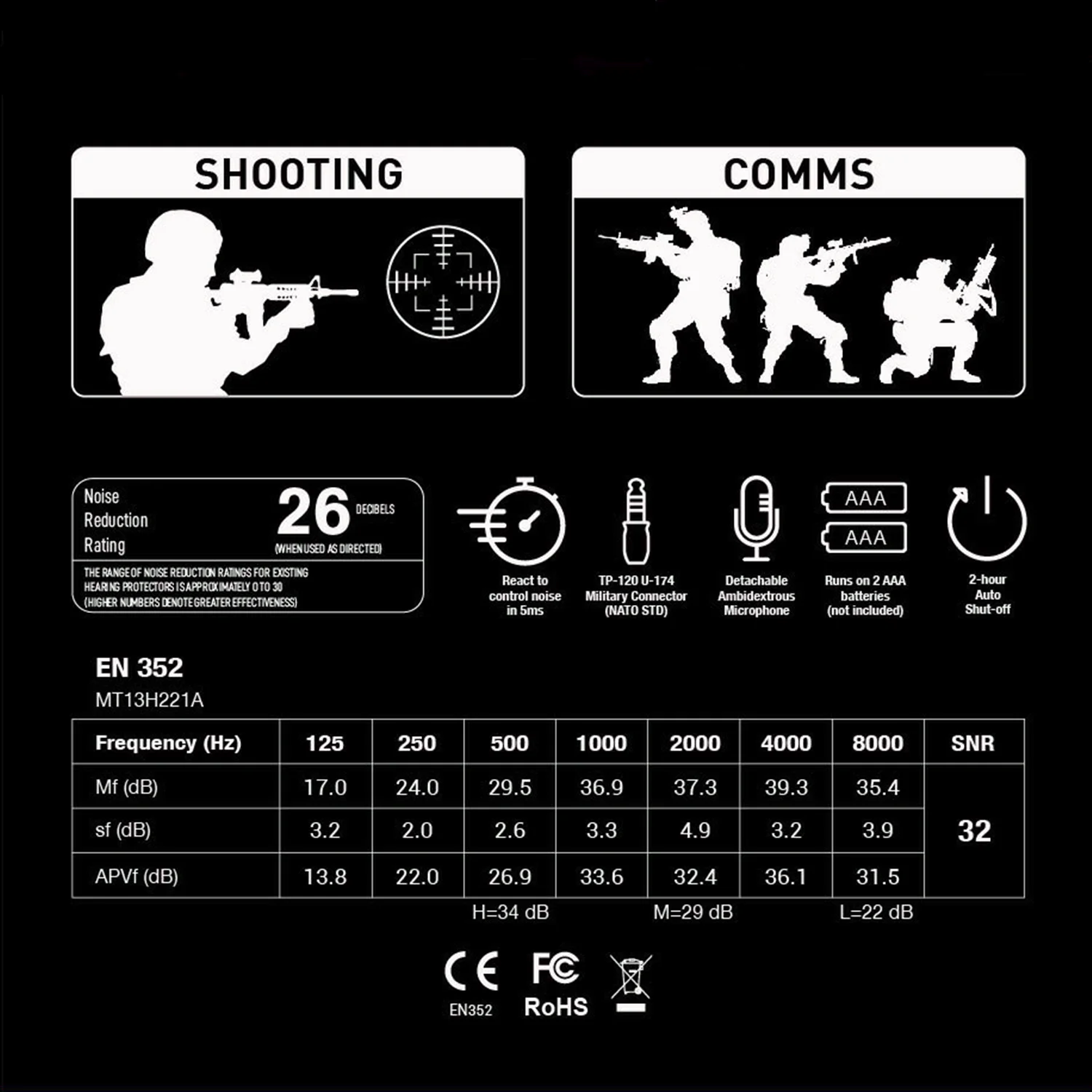 Comfortable Design - Soft pleather ear cups and adjustable ear-hook frame for extended wear. Clear Communication - High-quality mic with good sound pickup and flexible boom. Effective Noise Amplification - Ambient sound enhancement for better situational awareness.