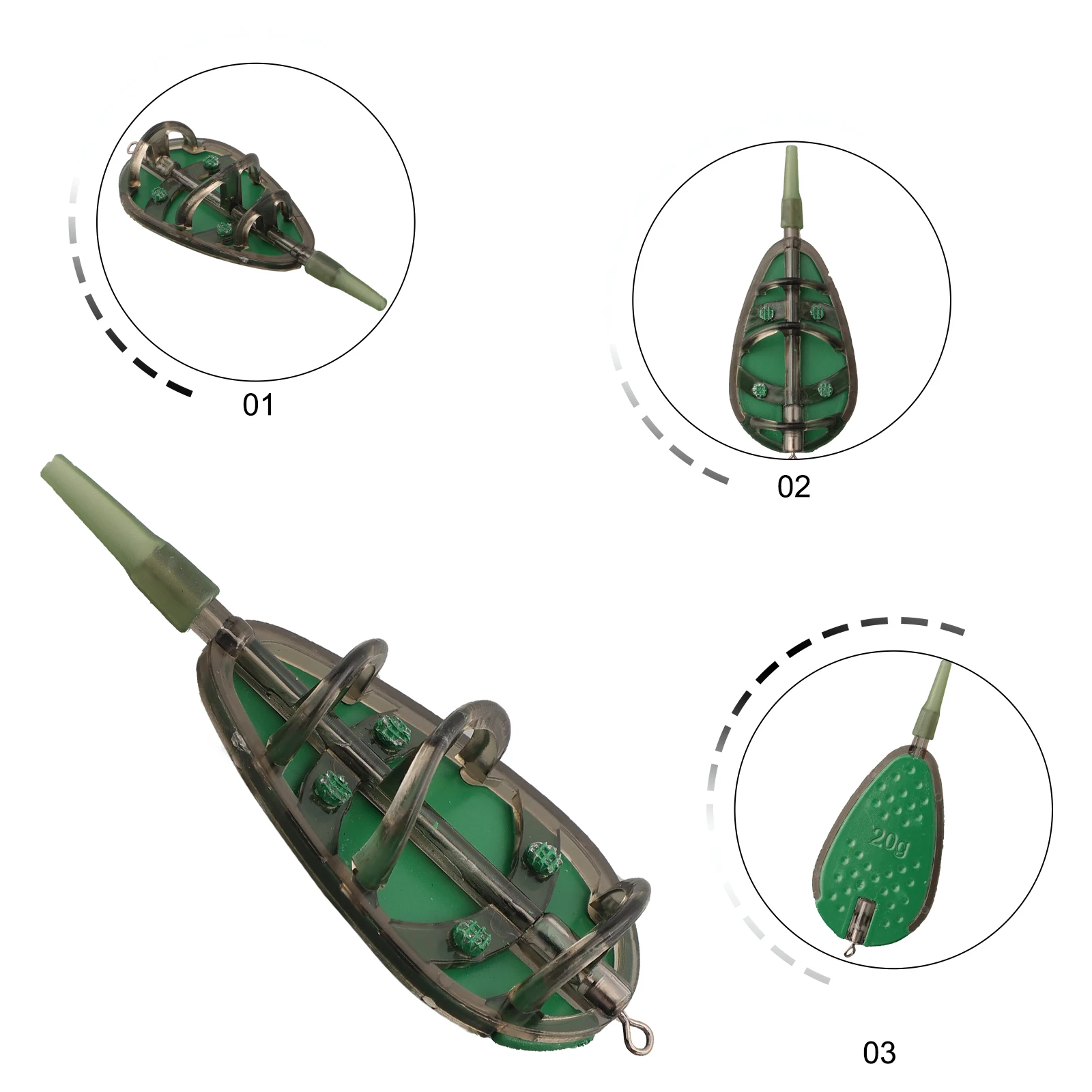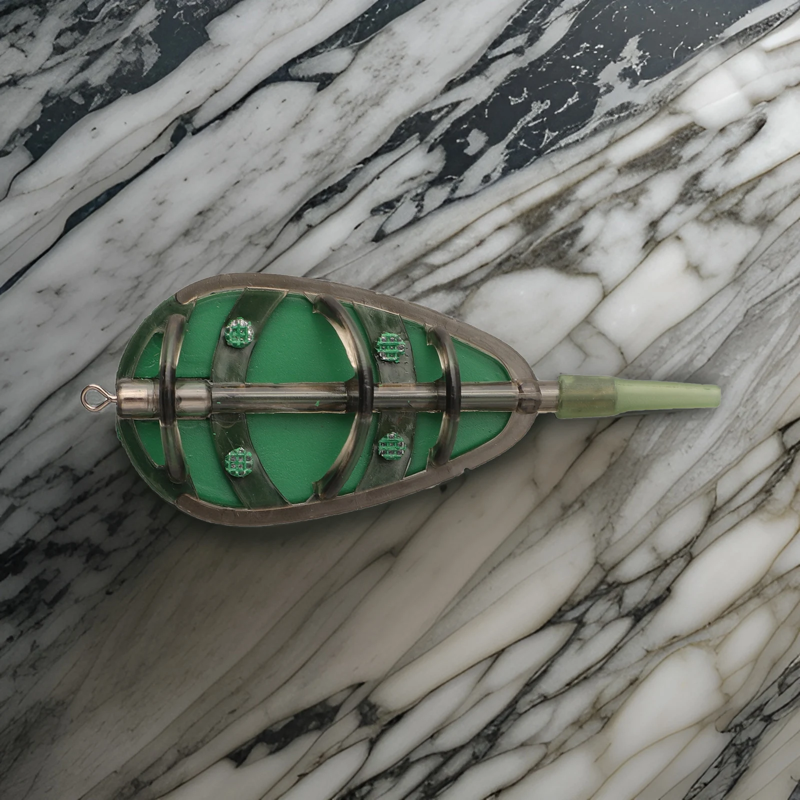 *The flat method feeder is designed so that the in the flat base, and the bait load, bias the combined weight into an aerodynamic bomb shape that improves both casting distance and accuracy.