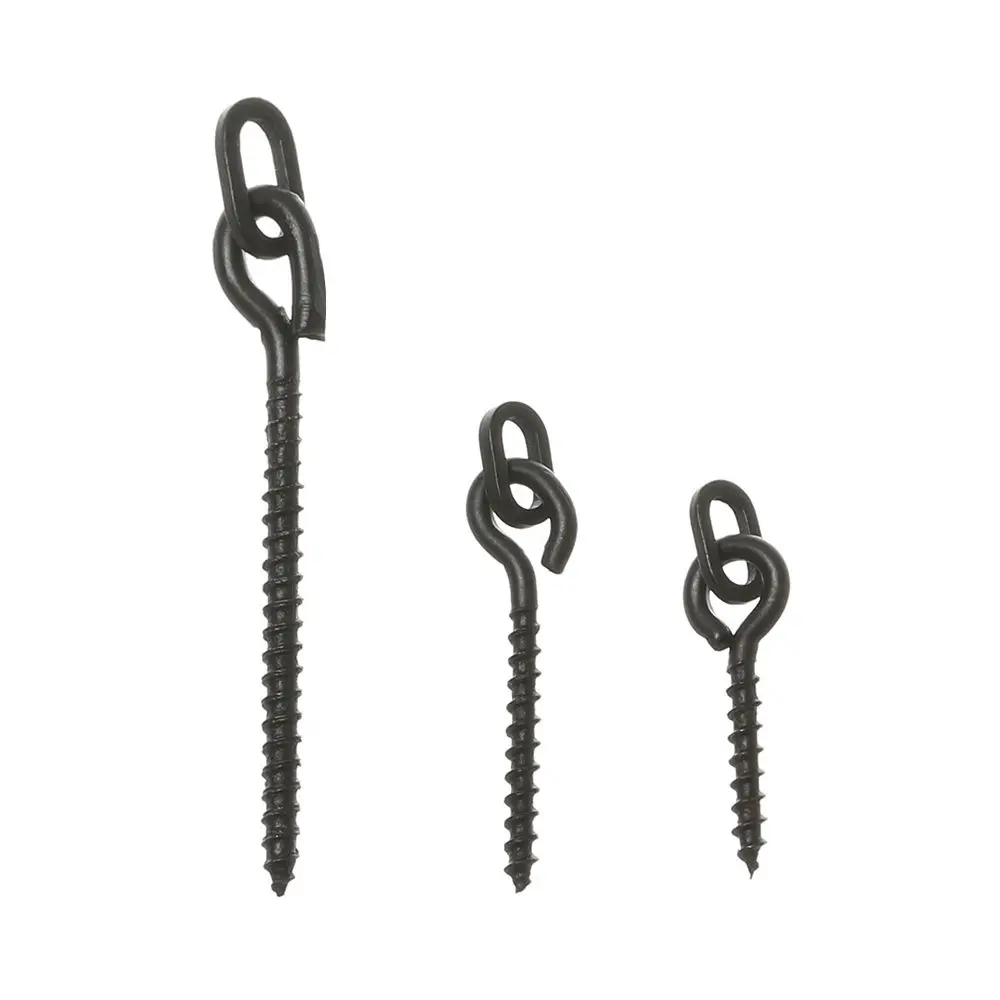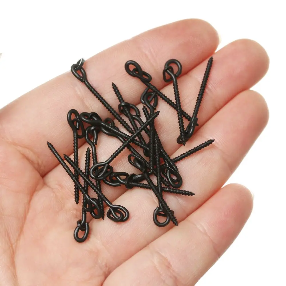 Matt Black Bait Screw with Ring Matt black color With micro hook ring model available: round ring/oval+ screw Size: 12mm/16MM/26mm Package Included: 20pcs Fishing boilie Chod Screw .
