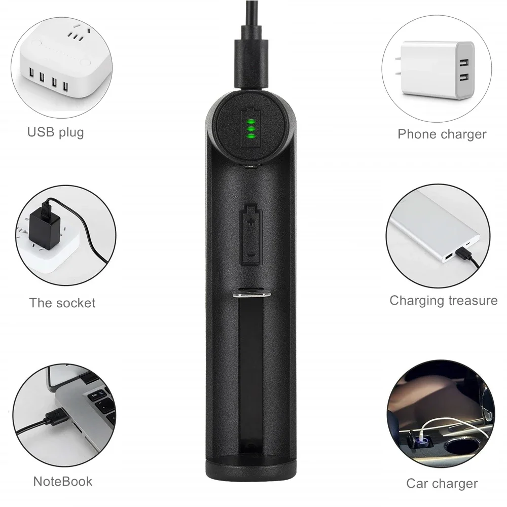 Able to charge:26700,26650,26500,25500,22700,21700,20700,22650,22500,18700,18650,18500,18490,18350,17650,16650,16340(CR123),14650,14500....... rechargeable battery
