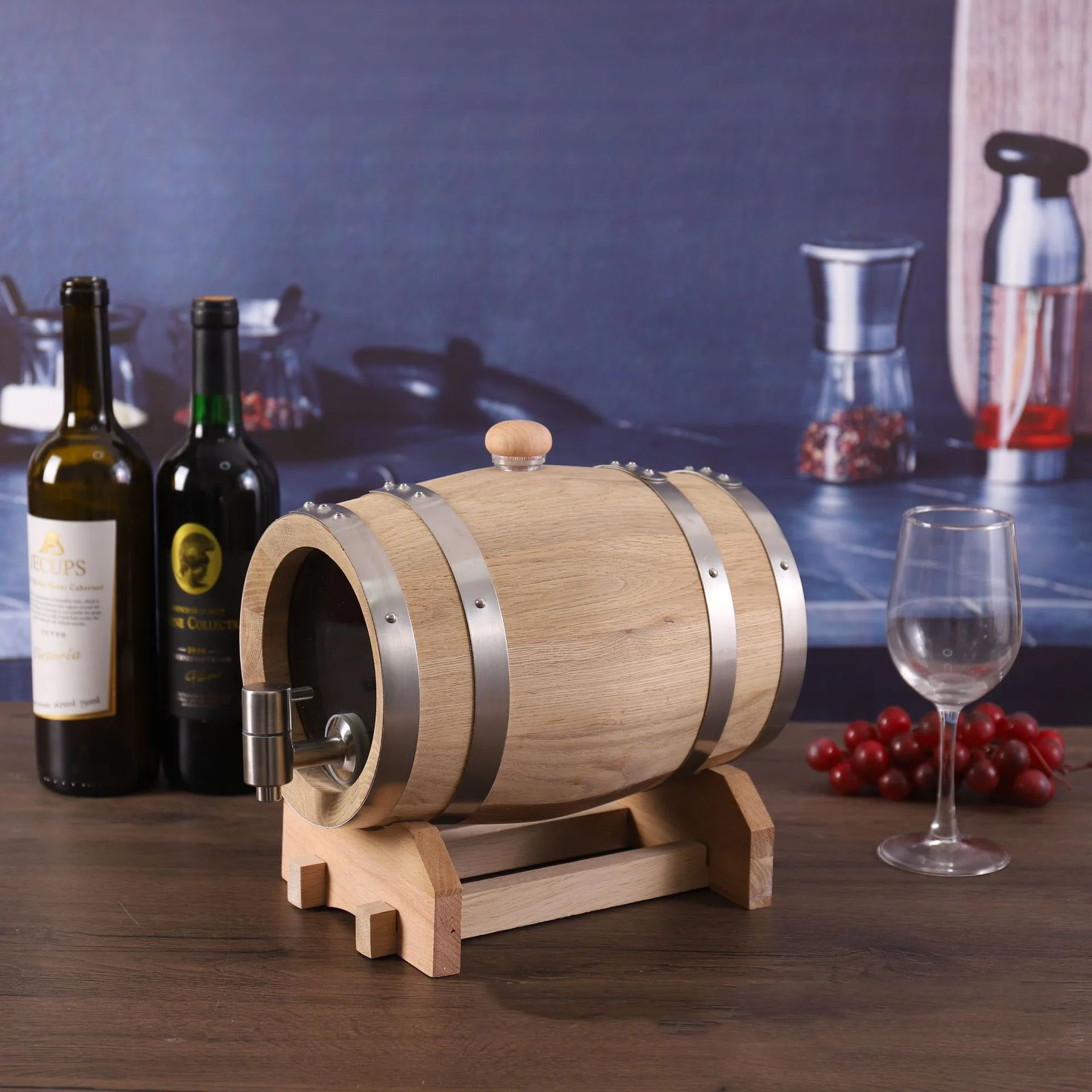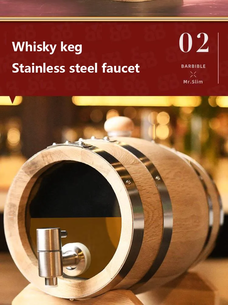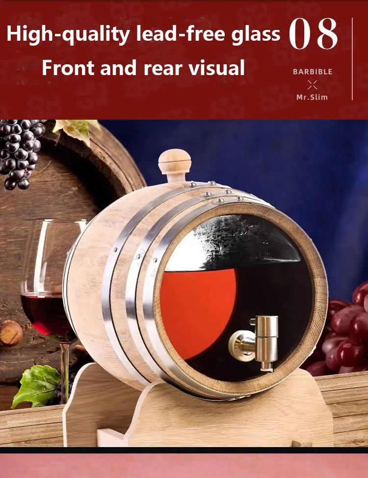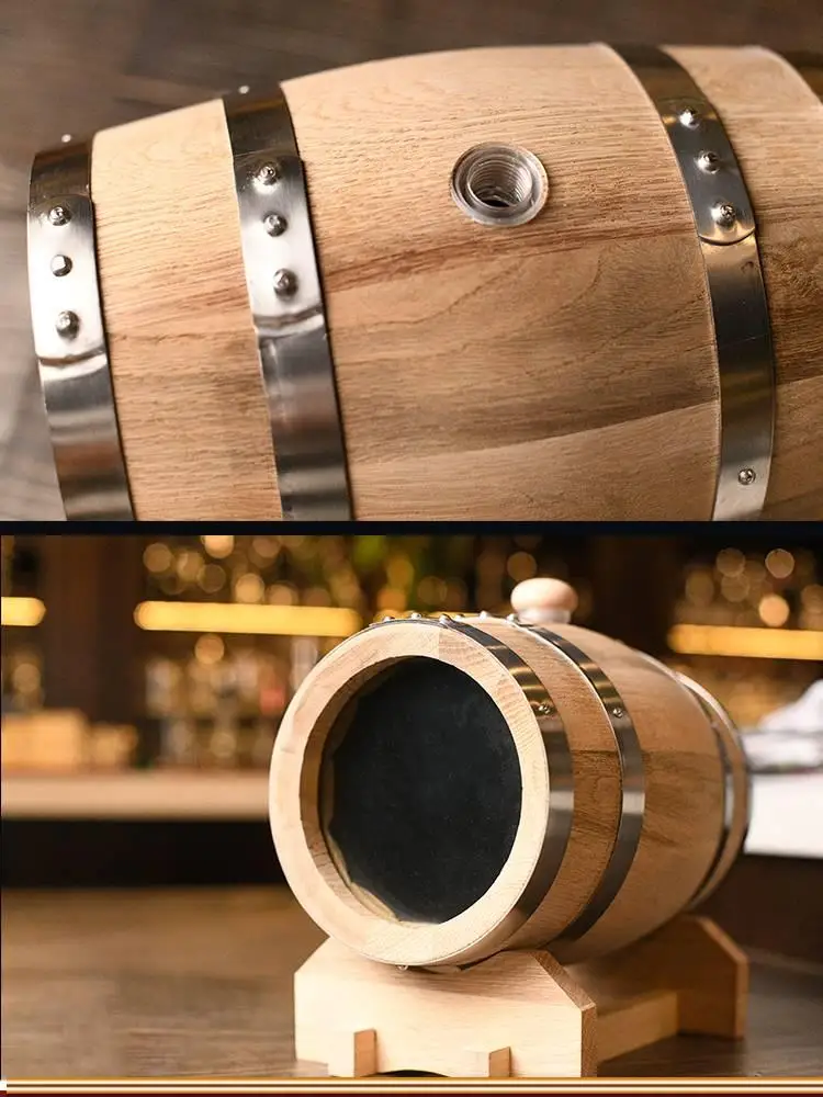 01 can absorb the nutrients, aroma, color and alcohol taste of oak from oak barrels. 02. As oxygen slowly seeps into the oak barrel, the texture of the wine tends to be soft. 03. The organic substances in the wine react with each other with the oak barrels to make the wine mature ★ LYN & GY oak barrels Instructions for use and FAQs LYN & GY oak wine barrels are professional wine storage vessels, which are necessary containers for brewing good wine. Please read the instruction manual carefully before use to avoid unnecessary losses. If you encounter other problems, please contact LYN & GY after-sales immediately. We will do our best to serve you! ★ LYN & GY oak barrels are wooden wine storage vessels, suitable for storing various wines, Baijiu, distilled spirits, such as: "Brandy, whiskey, Odek, gin, rum, Great Wall dry red, etc., are currently deeply loved by self-brewing enthusiasts. ★ Please inject water into the oak wine barrel and soak it for at least 72 hours before using it for the first time. Slight leakage may occur during the soaking process of the new barrel, which is a normal phenomenon. Soaking in water makes the board fully expand and the pores become smaller. After soaking for more than 3-7 days without leakage at all (change the water at least once every 3 days during this period), drain the water and rinse it clean. After the wine injection hole is down and the barrel is dried for 24 hours, the wine can be loaded. ★ If you store high-grade Baijiu, you should first inject a small amount of Baijiu to clean it, and then release the wine in the barrel. After drying, you can inject high-grade Baijiu, and enjoy the wine for a period of time! The oak barrel used for fermentation should be placed in an underground wine cellar or a constant temperature and cool place away from light. And regular pressure discharge (the lid must be opened once a day before the month of self-brewed wine, and it will ferment again after the wine is installed, generating heat and gas. Space is required, and the handle should be discharged regularly. Later, the lid should be opened every 3-5 days until no gas is produced). Long-term empty wine barrels need to be regularly injected with water into the barrel, otherwise the oak will dry out and crack, and the barrel hoop will be loose (but the water injection time should not be too long, the water will deteriorate and pollute the barrel for too long, and the active ingredients of the oak will seep into the water, and the oak barrel will lose its own meaning).