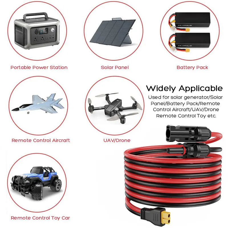 12AWG 3m/10FT 1.5m/5FT Length Charging Cable MC4 to XT60 Female Extension Cord Compatible for ALLPOWERS R600 R1500 R2500 S2000 S2000 Pro, Ecoflow RIVER & DELTA Series, Anker SOLIX C1000 F1200 PowerHouse 757 SOLIX F2000, Bluetti AC2A AC50B AC70 EB55 etc. Portable Power Station or Solar Generators, RC Lithium Battery Pack, Solar Panels, Remote Control Car, Drone and More Devices with XT60 Charging Ports.