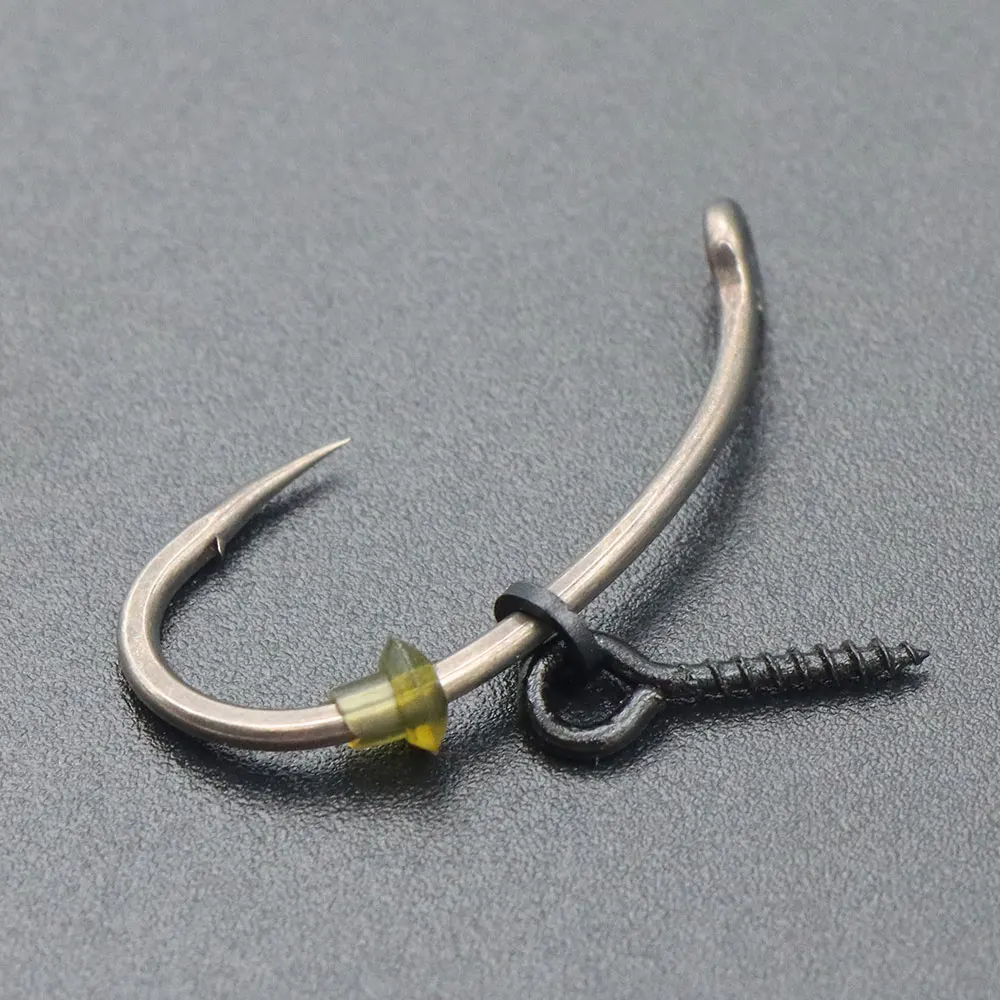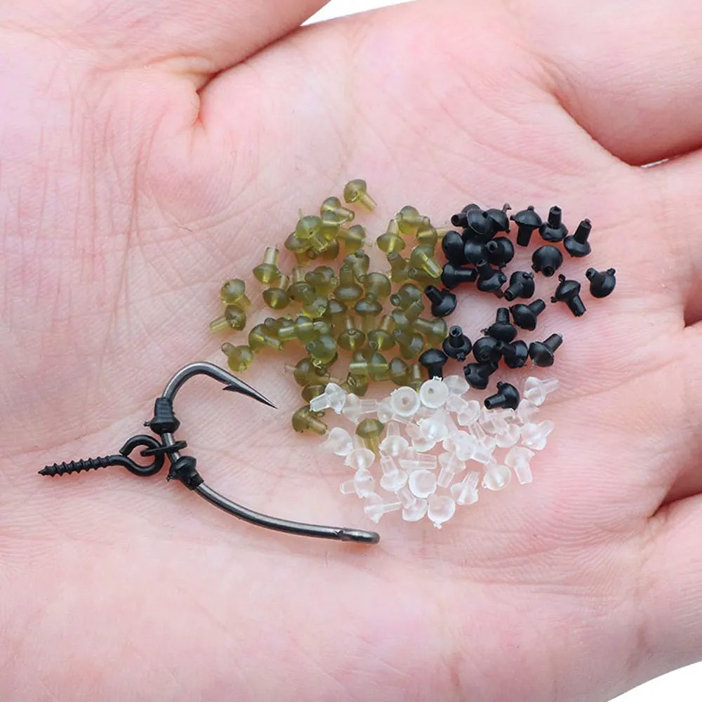 Hook Stops are used to keep Micro Swivels, Rig Rings and Bait Screws on hooks. Made from durable rubber, Hook Stops have a small hole through the middle which slides on to hooks. Wetting the hook before use helps the hook slide easier.