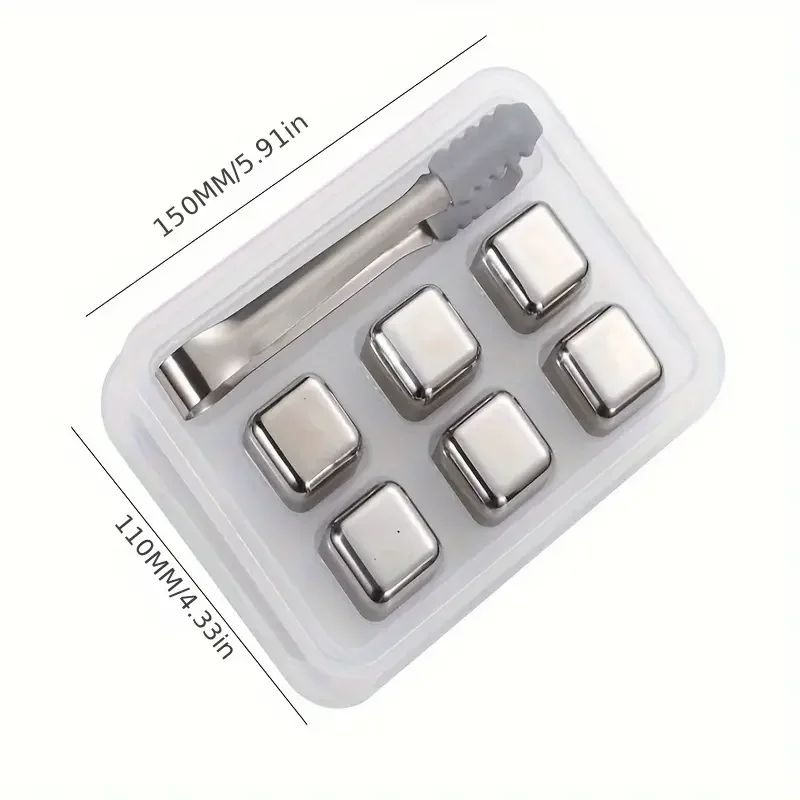 (1) 304 stainless steel ice cubes - 6 ice cubes + cloth bag + PVC bag + ice clip