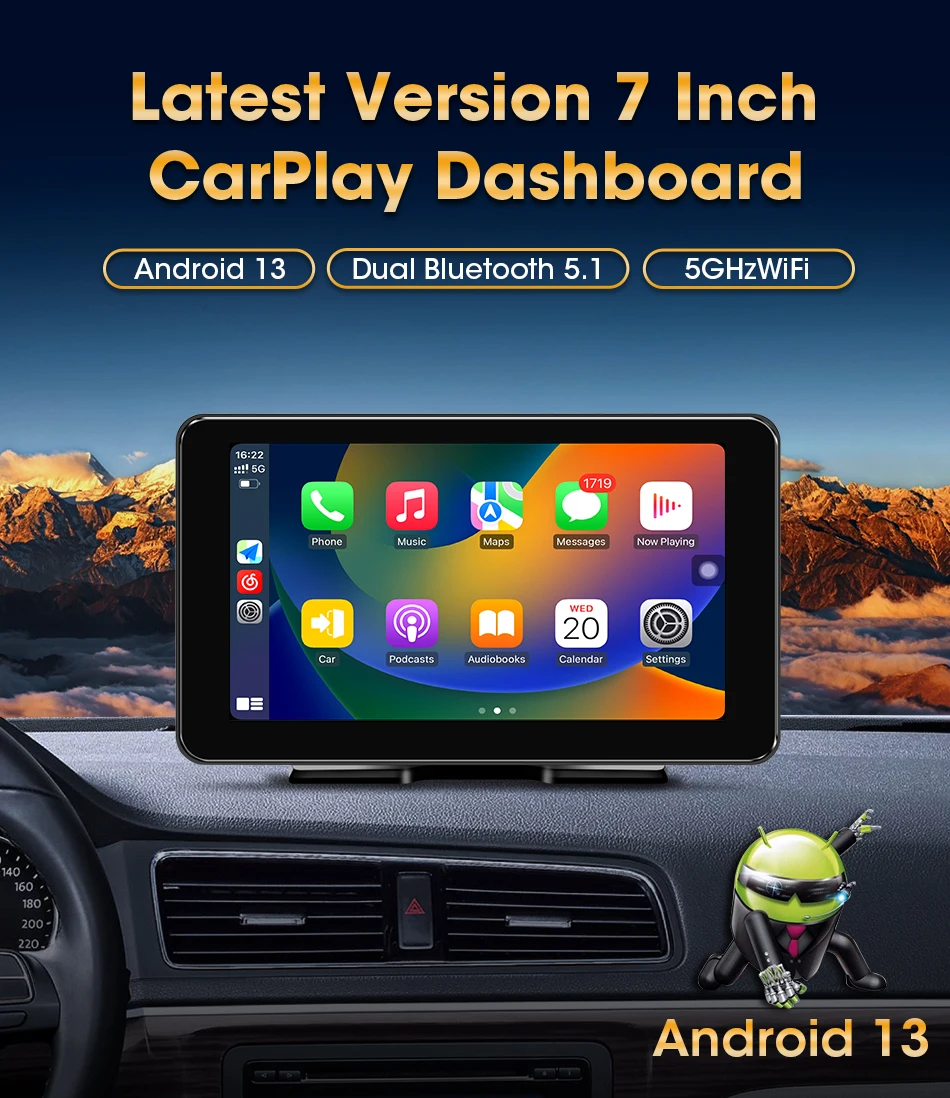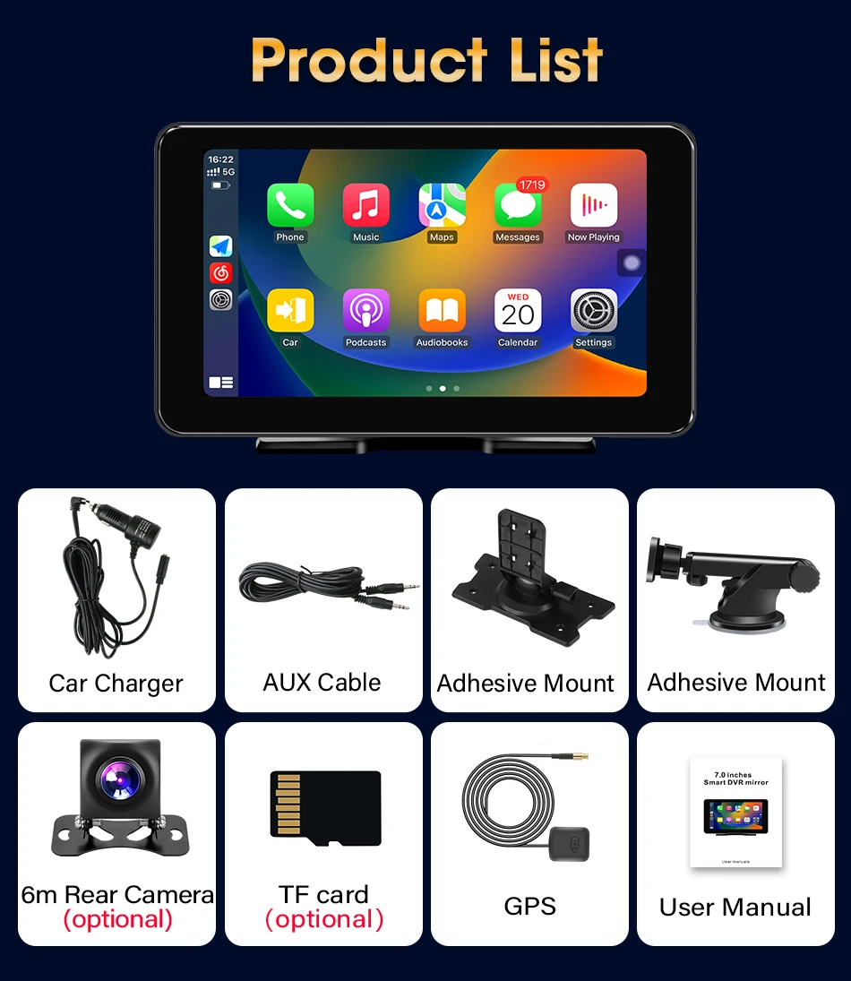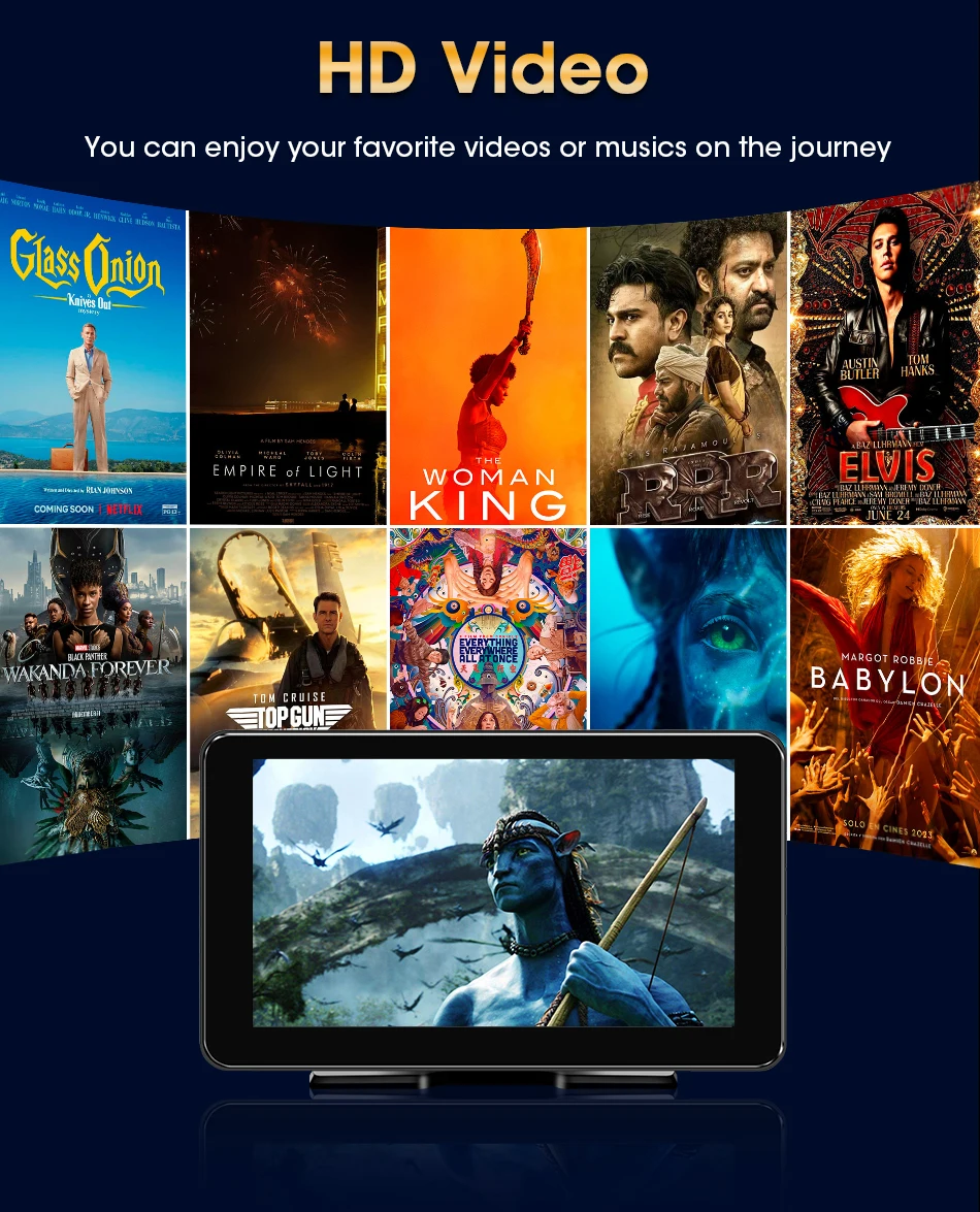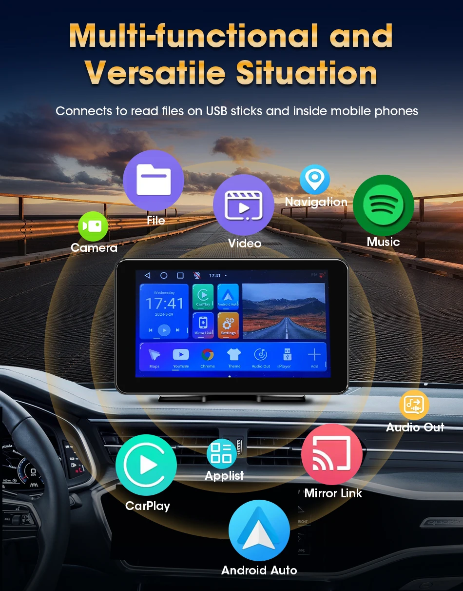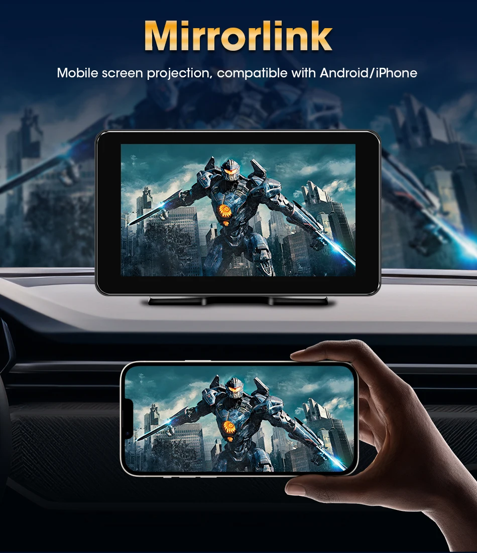 【Wireless Mirror Link】This 7" carplay screen for car features a resolution of 1600*600. The mirror link function enables you to synchronize the mobile phone screen with the android auto screen for car, and enjoy larger and clearer visual effects. After successful connection, you can play YouTube, Tiktok, etc., and also play your favorite movies and movies es, providing more entertainment experience. Even outdoors, you can also enjoy the HD large-screen video experience.