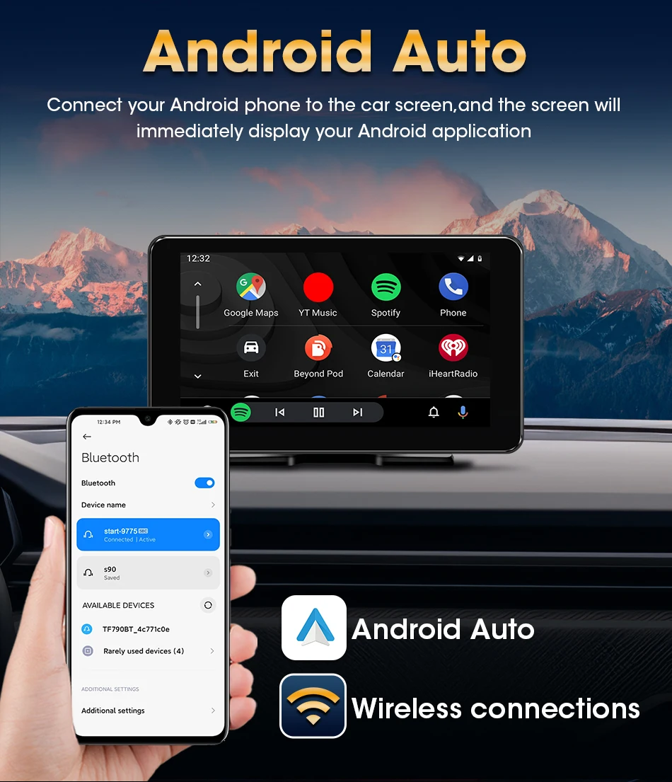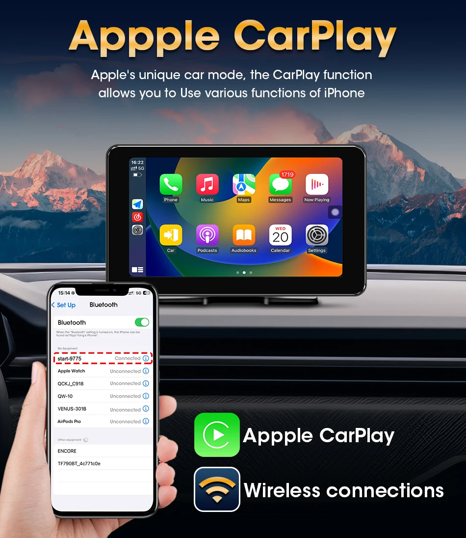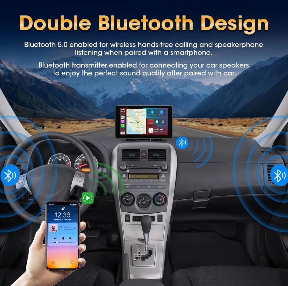 【Wireless Carplay/Android Auto】This android auto screen is ready to use out of the box, connect your phone wirelessly to Carplay&Android Auto via Bluetooth and WiFi, allowing you to experience the convenient wireless connection between your phone and the car entertainment system. Once connected, you can access maps, music, videos, messages, etc.. The carplay screen for car also supports Siri or Google Assistant, allowing you to control the portable screen without touching the screen.