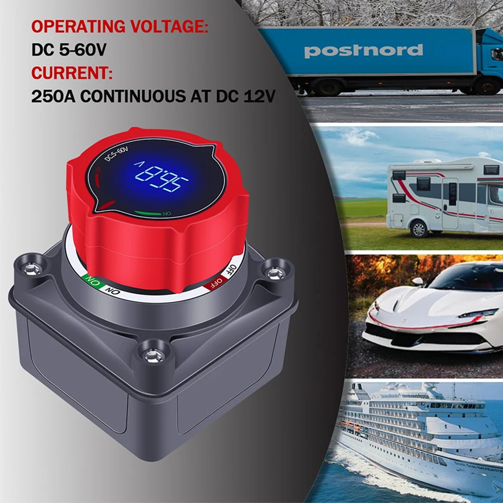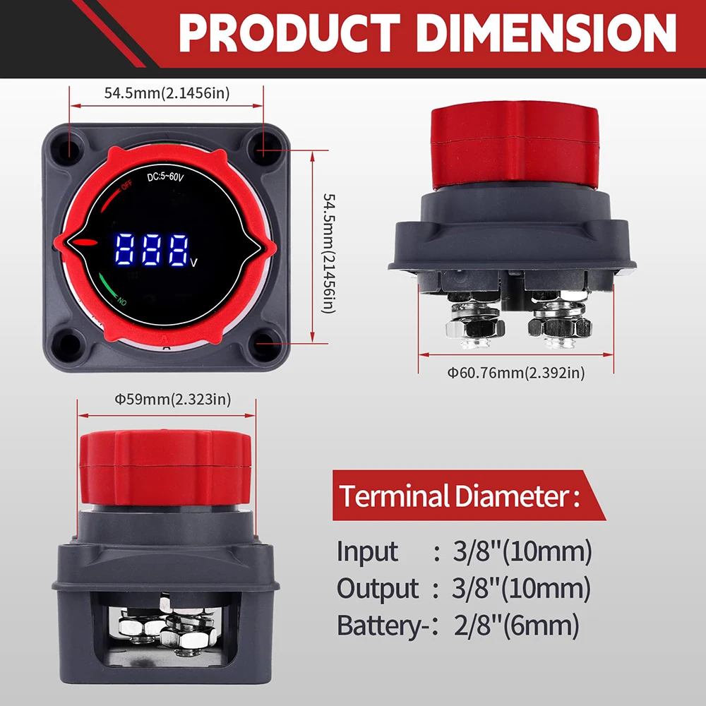 Upgrade Battery Disconnect Switch with Voltage Display, DC 5-60V Battery Power Master Switch Disconnect Isolator Cut Shut Off Switch for Marine Boat Car Truck Camper RV Trailer (On/Off)