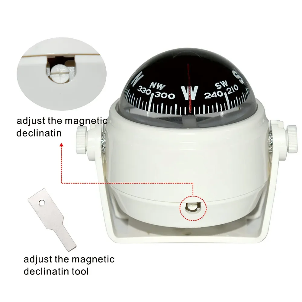 - The scale circle is precise, clear and accurate proportions. - Professional damping oil ball, anti-interference and more stable. - The 360°rotating base support can be adjusted at right angles for viewing. - Application: car compass, navigation compass, outdoor travel guide thorium