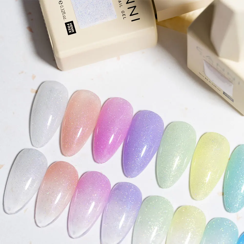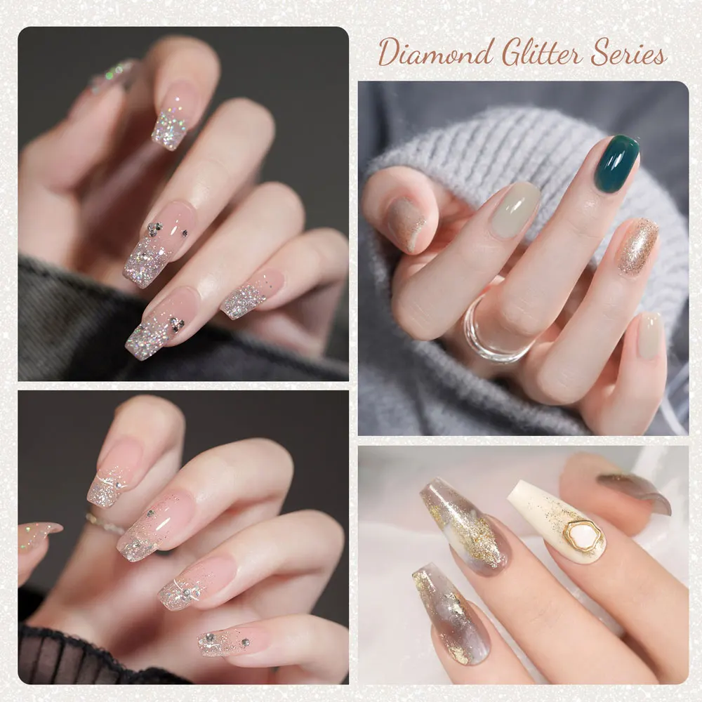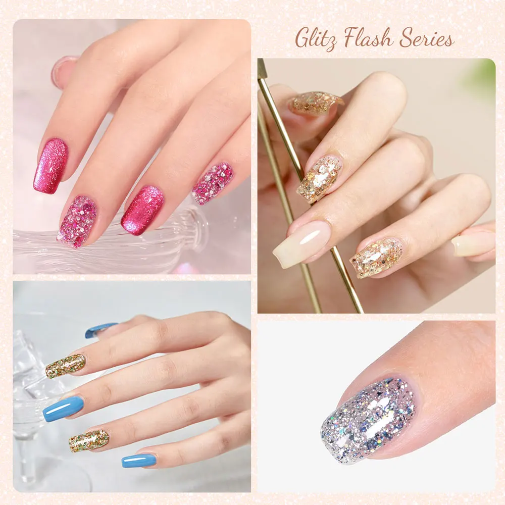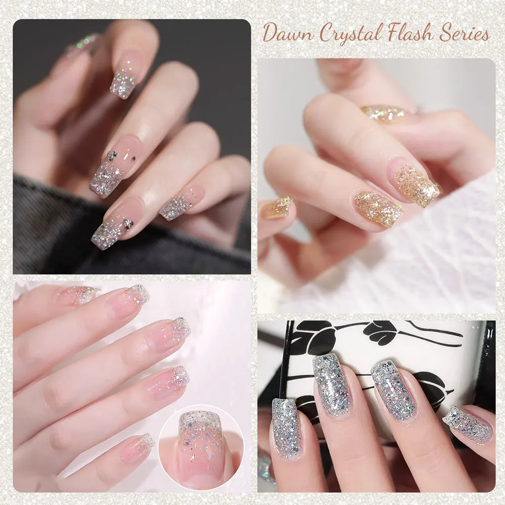 2、Glitter Gel Polish: shiny decorative sequins, making you more dazzling in the crowd. Suitable for all seasons, achieve the best modern salon-looking nail art mani at home