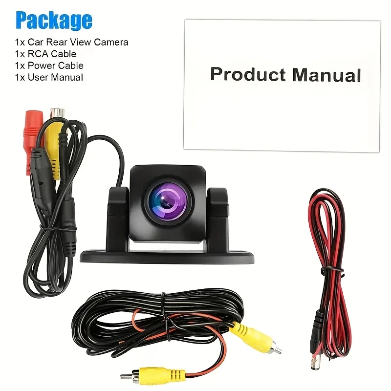 Package list: 1x Universal Car Rear View Backup Camera 1x Video Cable 1x Power Cable