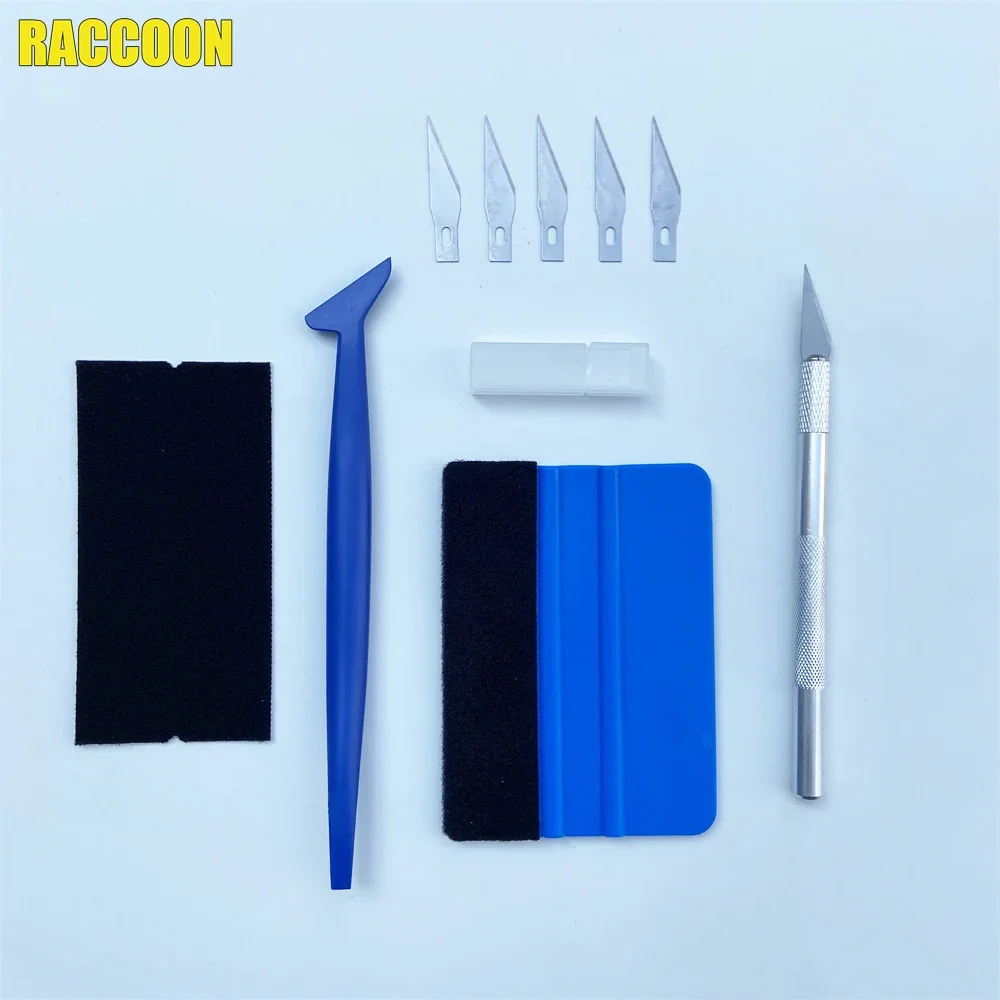 Package included: 1 x Blue Squeegee 1 x Blue Vinyl Squeegee Stick 1 x Black Fabric Felt 1 x Craft Knife 5 x Blades