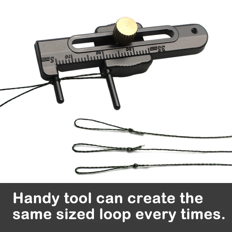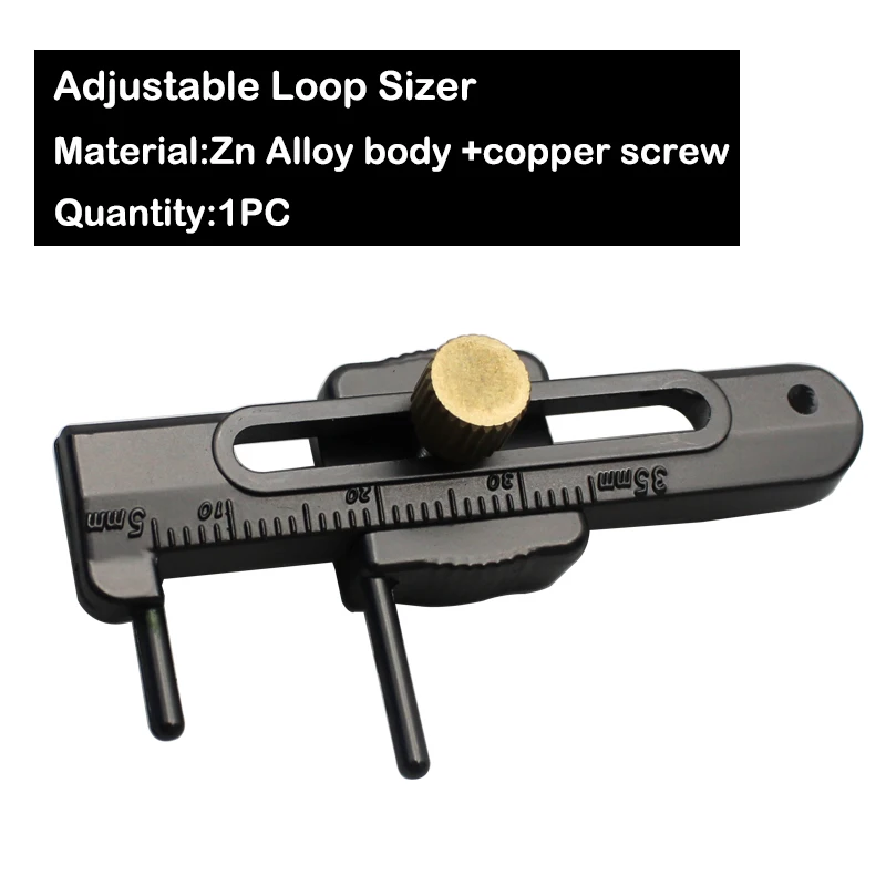 ADJUSTABLE LOOP SIZER Loop Size:5mm/0.196in-35mm/1.377in Material:Zn Alloy body +copper screw The adjustable loop sizer help you create the same sized loop every time. A very useful accessory that improves your accuracy when tying hook length of carp fishing. Handy tool can create the same sized loop every times. Quantity:1PC