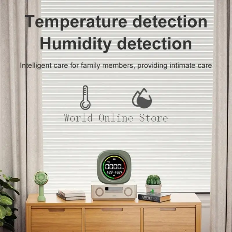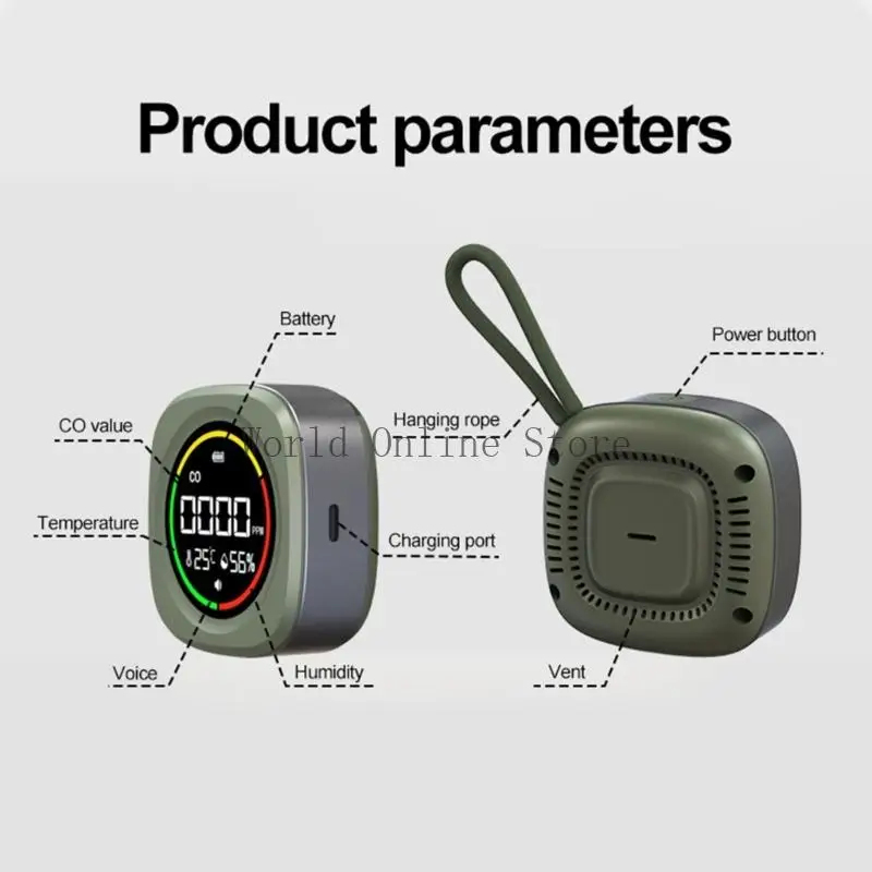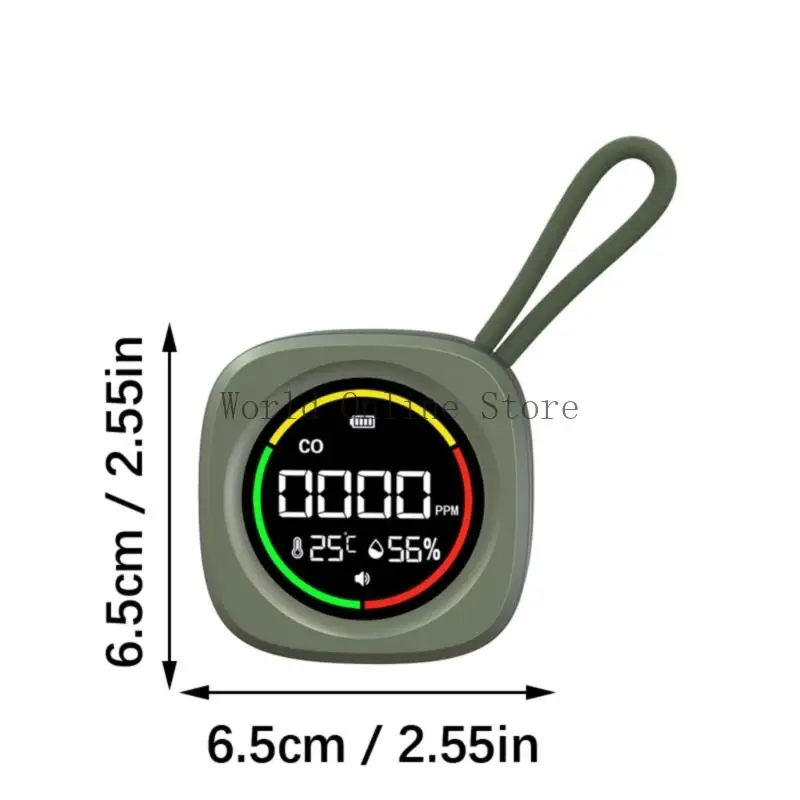 Specifications: Material: ABS Battery: 3.7v, 1000mah(Include) Measurement Ranges: Carbon Monoxide: 0-500PPM Temperature: 0 to 50℃, 32 to 122℉ Humidity: 20-80%RH Storage Temperature: -10 to 70℃, 14 to 158℉ Product Size: about. 6.5x6.5x3cm/2.55x2.55x1.18in