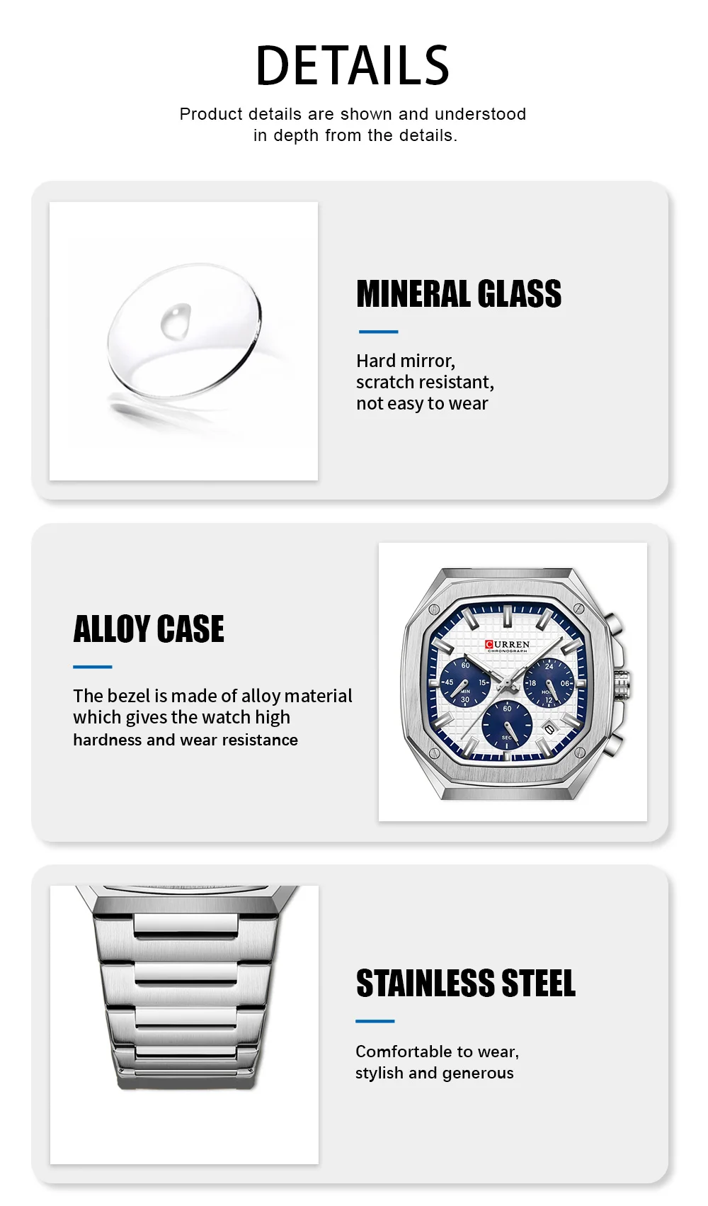 Dial Diameter: 39 mm Case Thickness: 11 mm Watch Length: 240 mm Band Width: 20 mm Watch Weight: 118 g