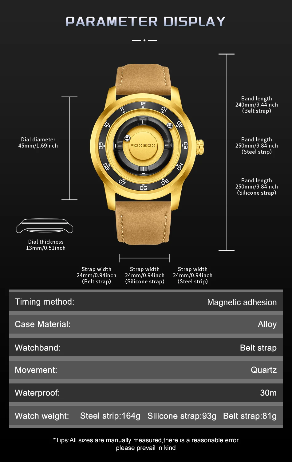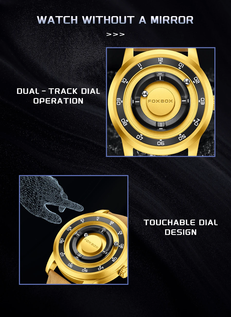 - Each watch features two ball bearings that use magnetized technology to travel around the face of the watch.