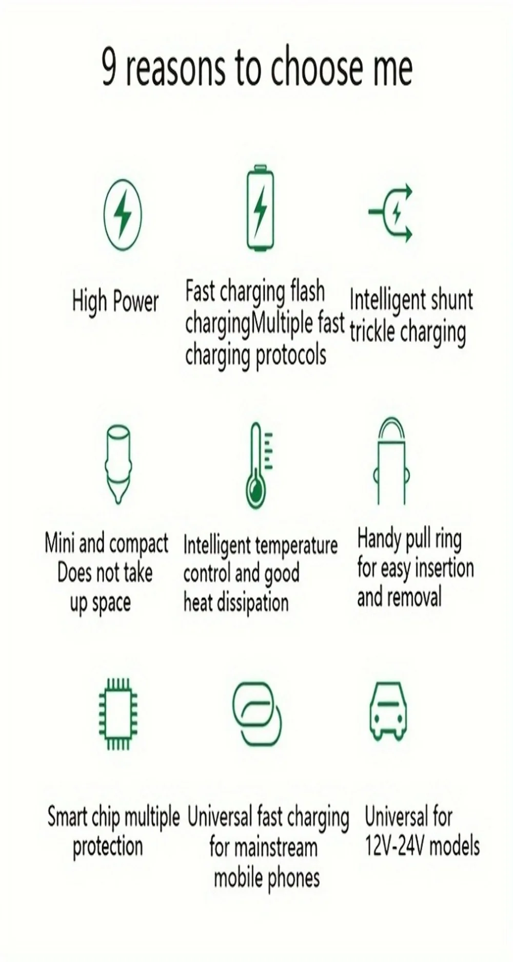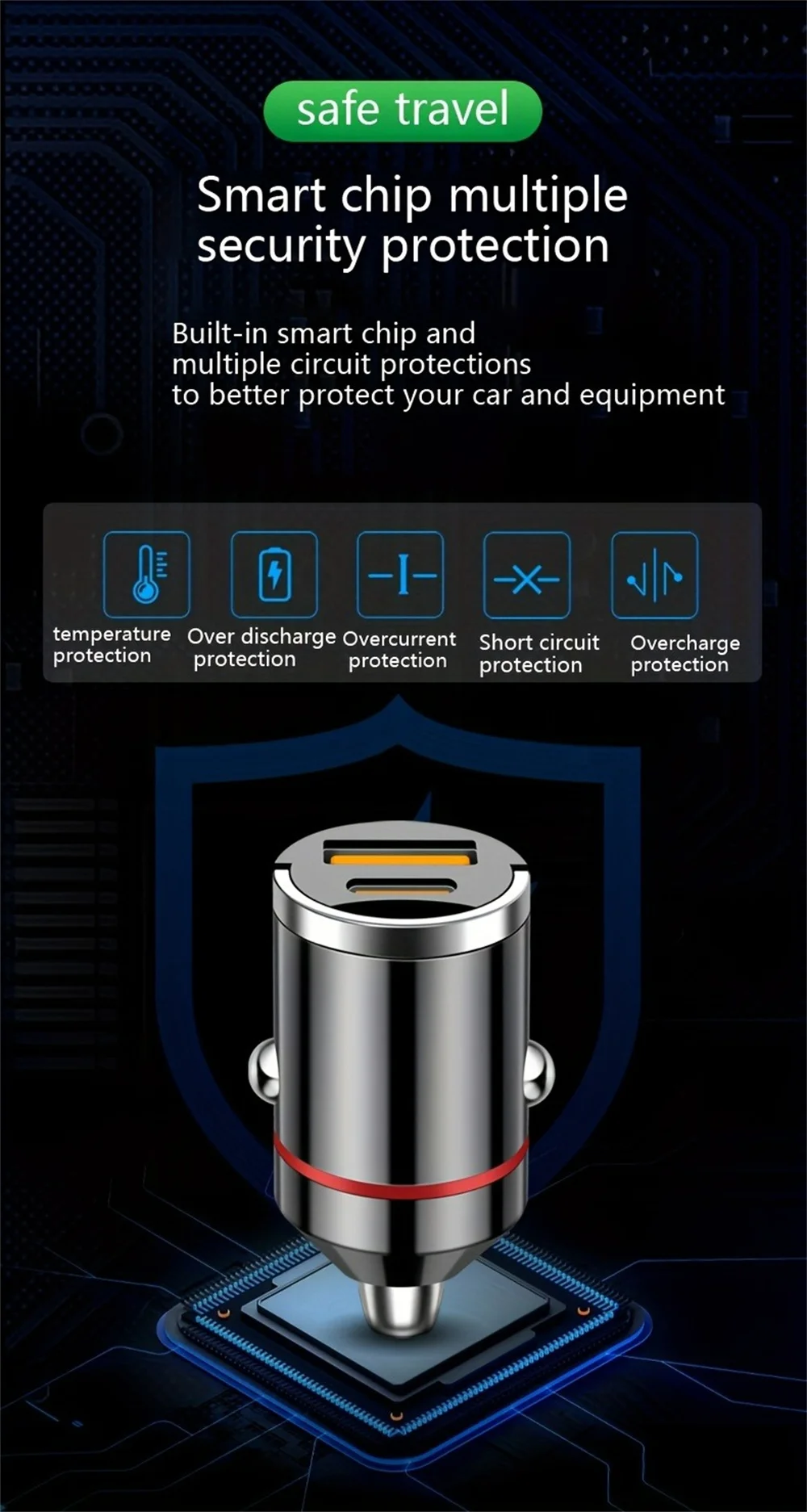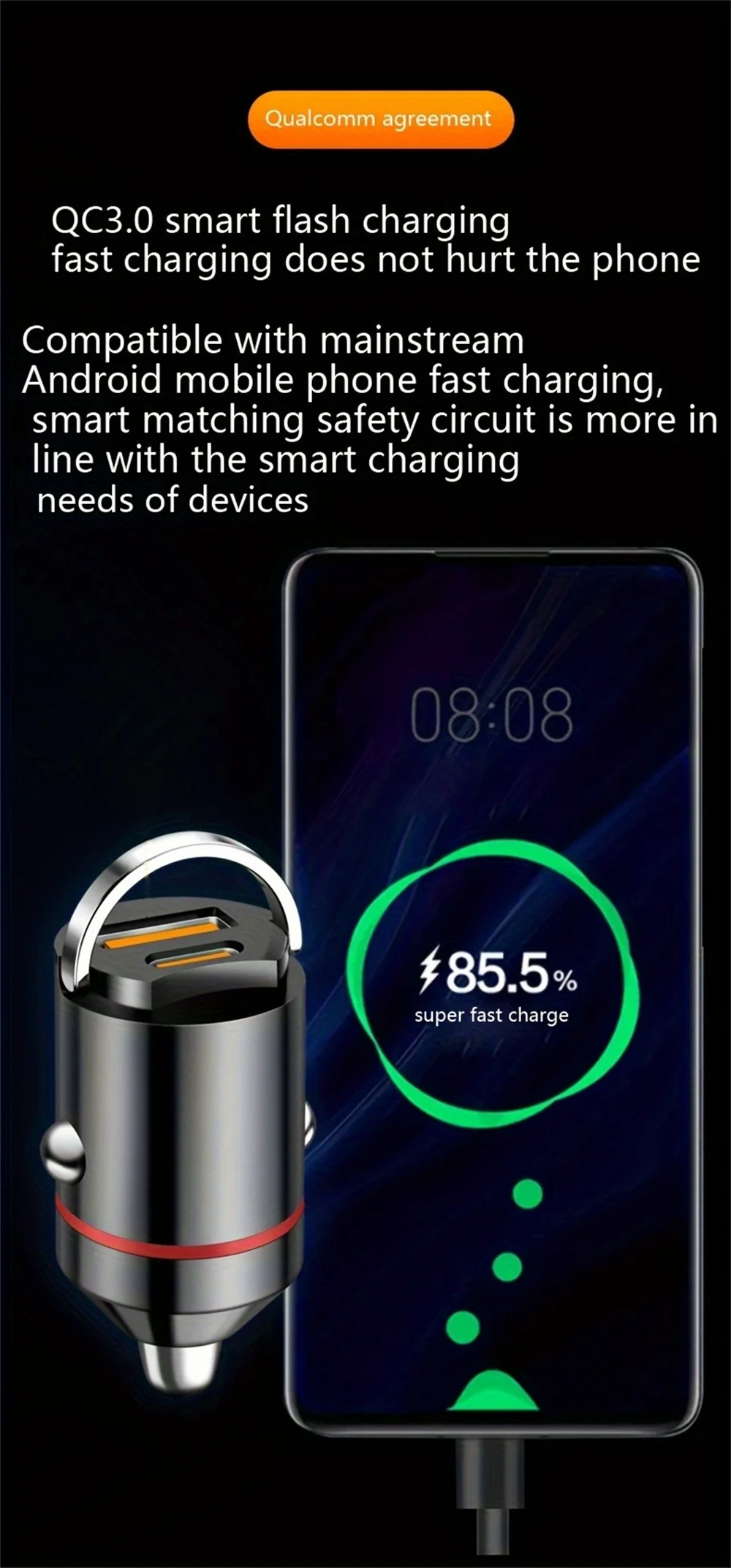 4. Compact and portable: The car USB charger is small and light, easy to insert into the car ashtray socket, and does not occupy too much space. Very suitable for travel, long-distance self-driving.