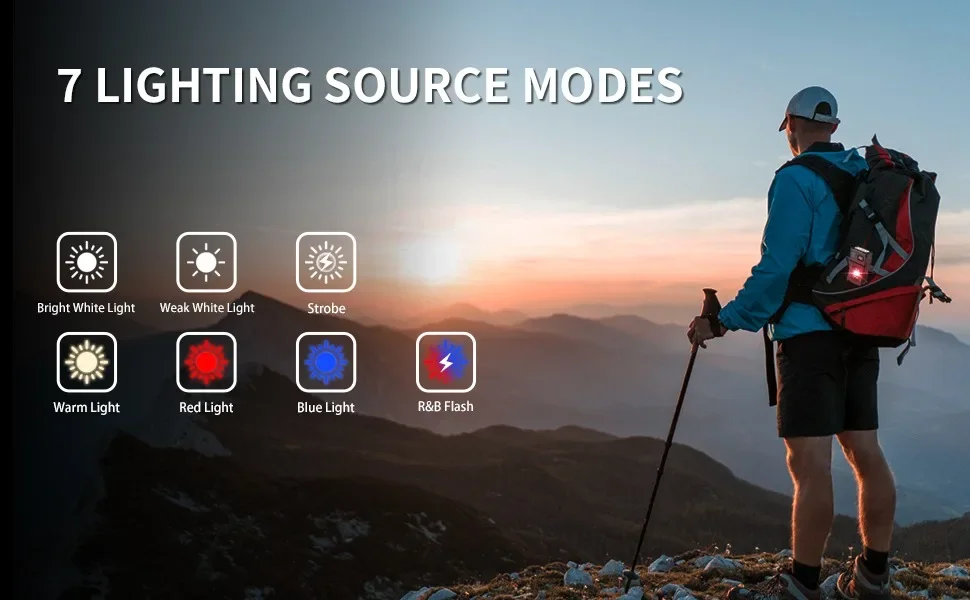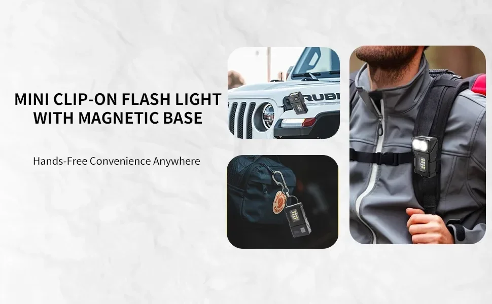 Lightweight and compact: The rear clip flash is sufficient to be used as a key ring light, a headlight clip on a hat, and a signal tool on a backpack. When you go hiking, take a night walk, camp or fish.