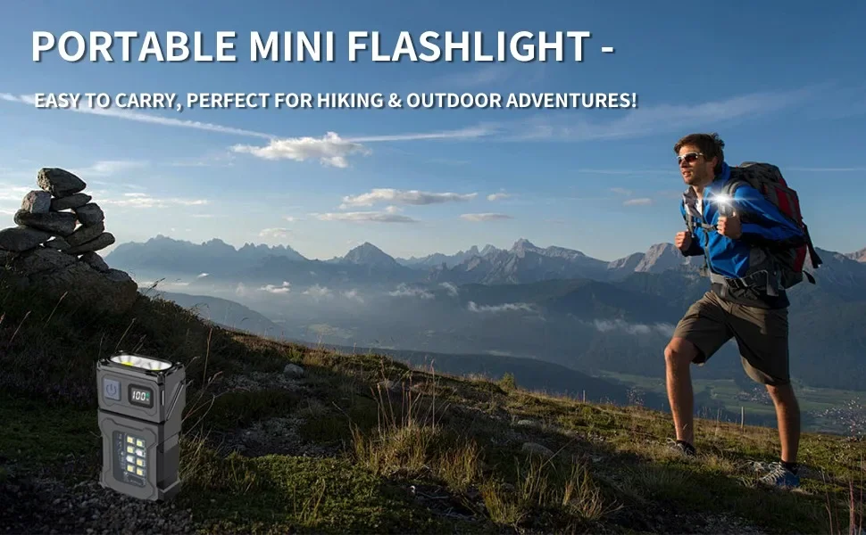 Dual light source: The mini portable pocket flashlight has 7 lighting modes, with a focused main light and a wider side light.