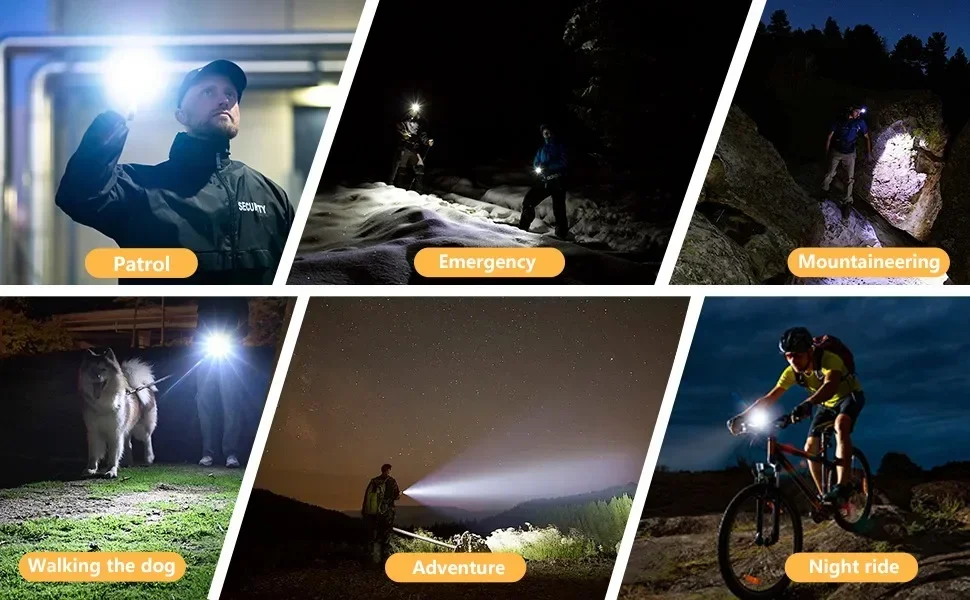 Rechargeable flashlight: Fast charging via USB C for 2 hours, continuous use for 15 hours.