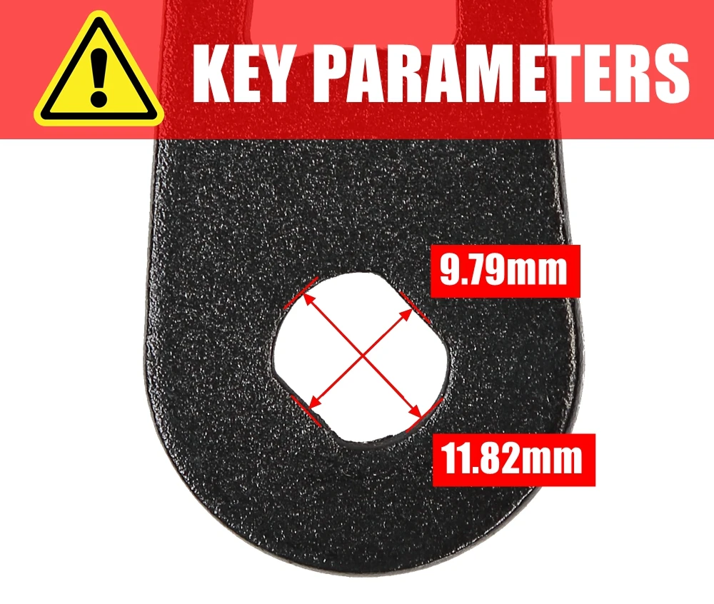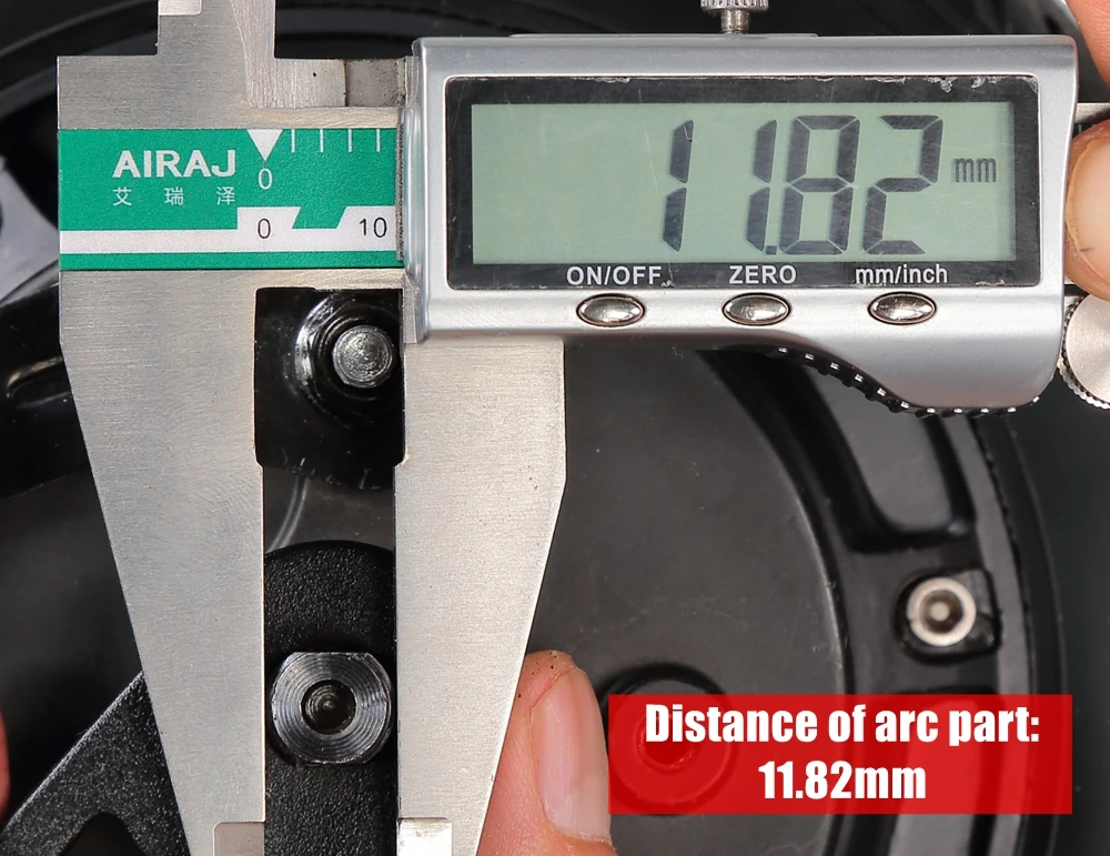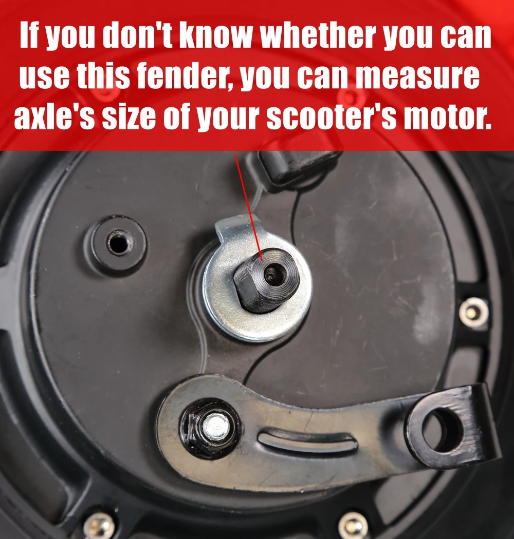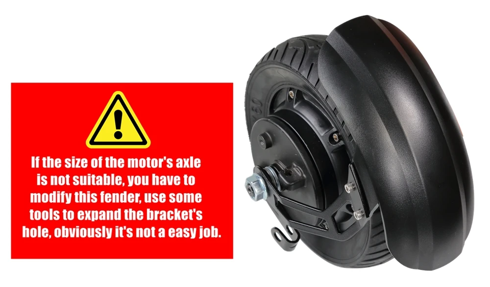 * The second most important thing is the size of bracket's hole for crossing motor's axle, you must make sure the motor's axle can insert the hole. The hole of bracket is an irregular shape, part of which is circle(Distance: 11.82mm) and part of which is square(Distance:9.79mm), so you can't adjust the position of the fender unless you refit the shape of the hole with some tools. You have to do this work by yourself.