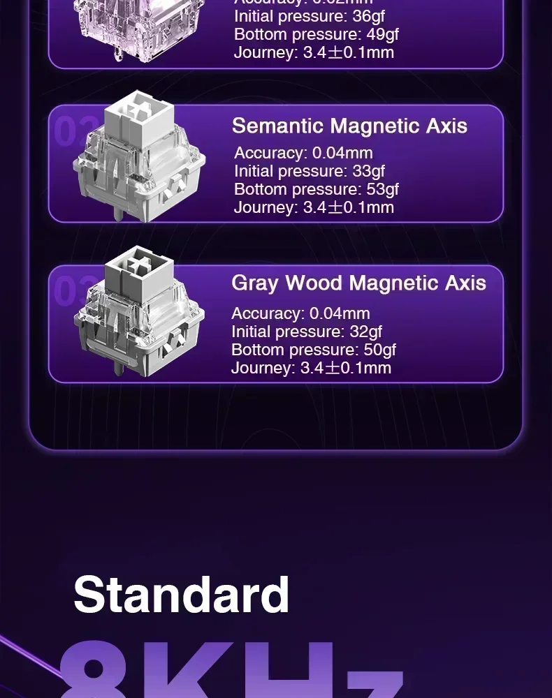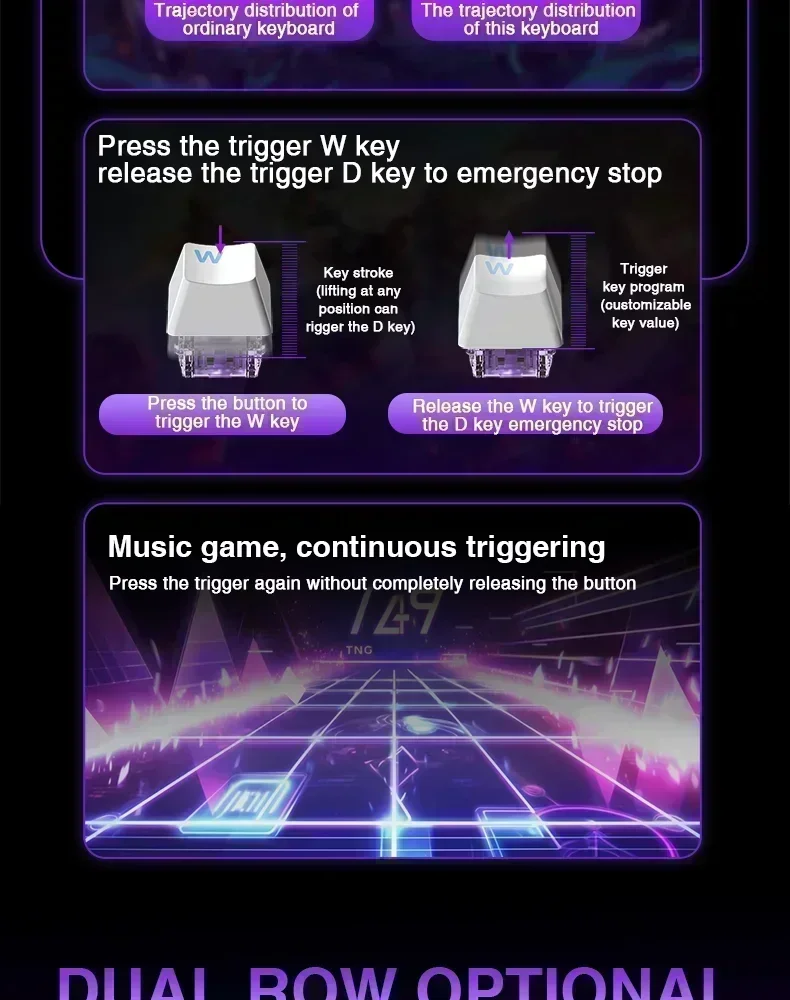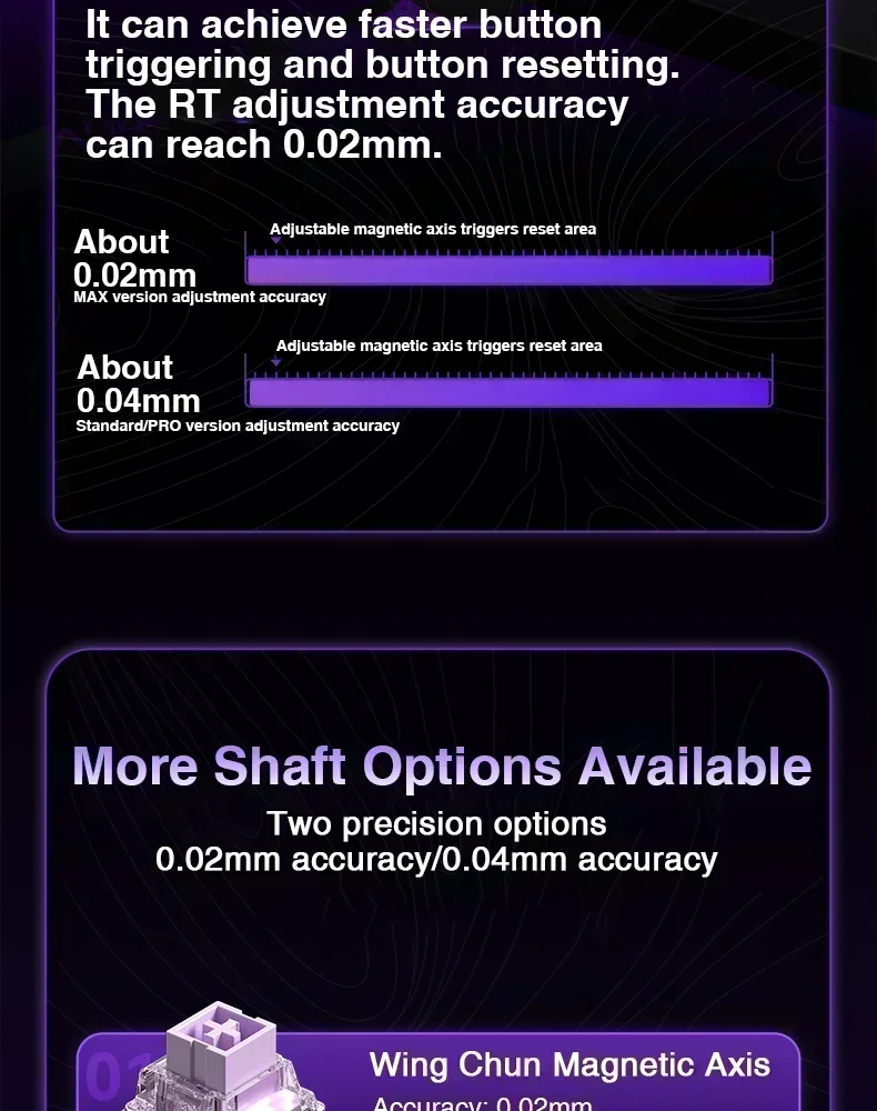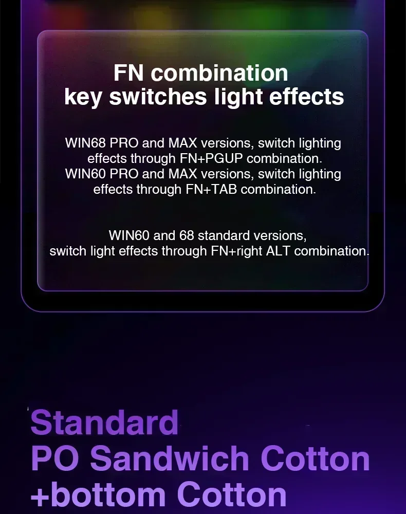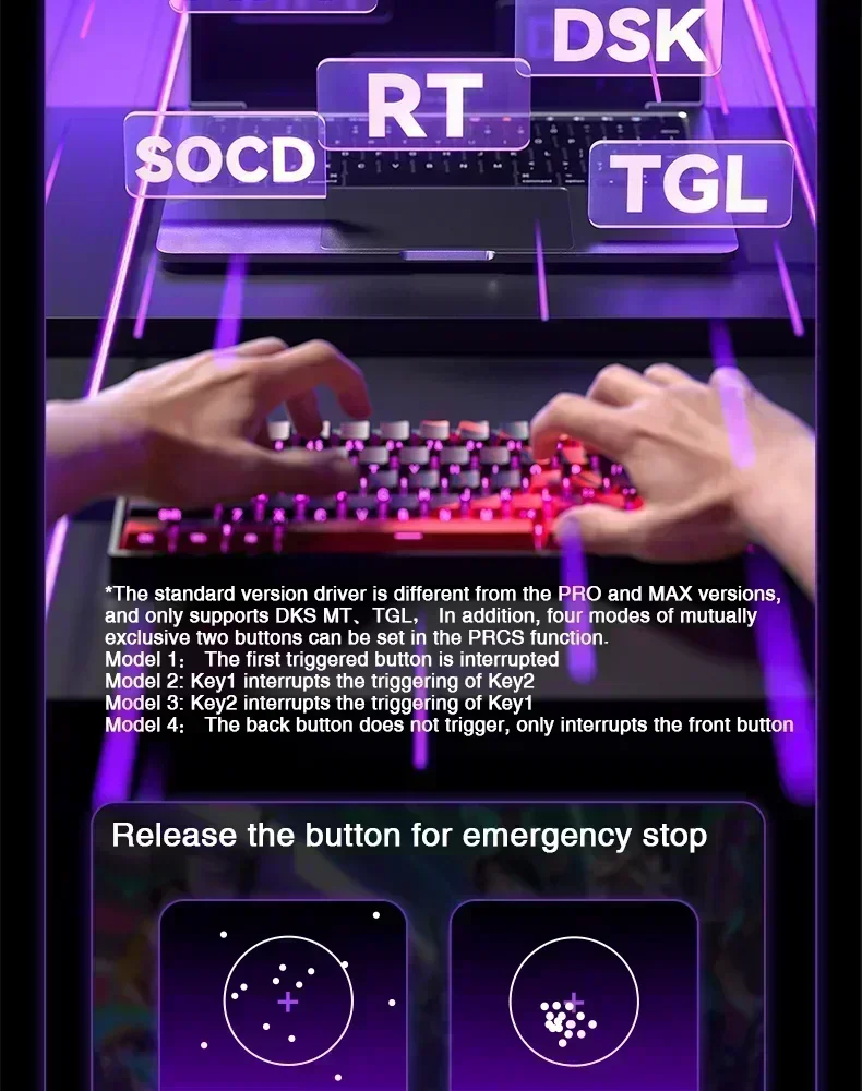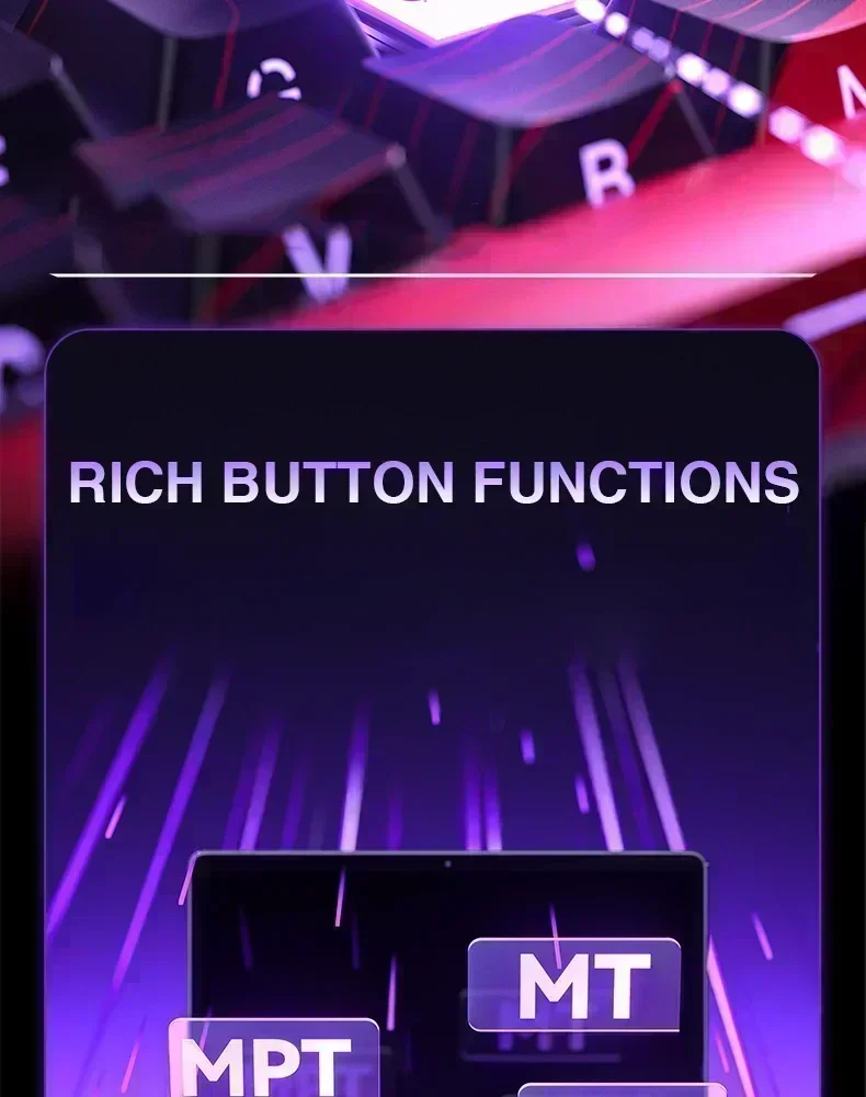 (WIN60/68 HE PRO, MAX versions)It supports RT, RS, DKS, MT, TGL, MPT, SOCD,functions etc. It supports the setting to make the subtle operation in the game easier to realize and faster response.Perfect game keyboard choice for Valorant.