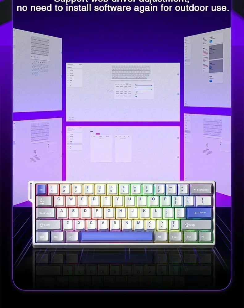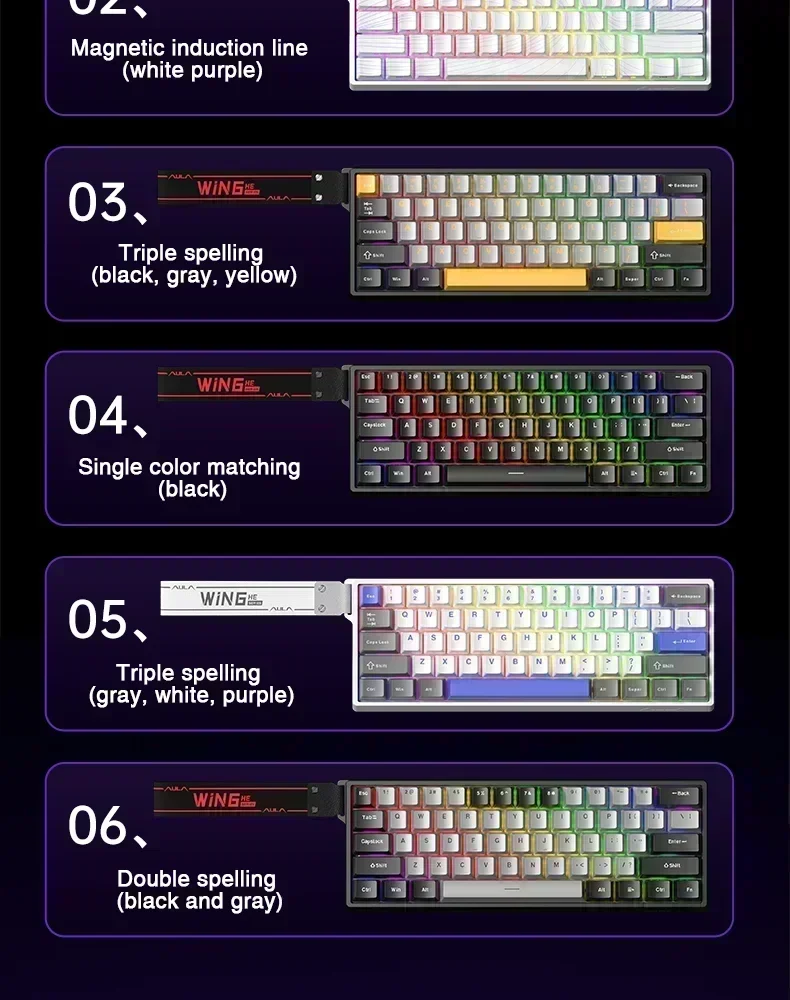 AULA WIN60 WIN68 not only increases the RGB lighting effect, but also upgrades the RGB light effect, provides RGB DIY and more types of RGB light setting.Make your games more atmospheric!