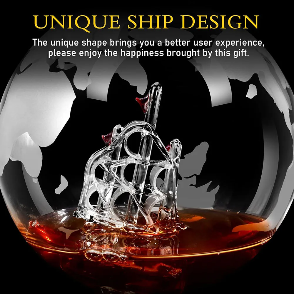 UNIQUE GIFTS FOR MEN ---- Hand blown elegant whiskey decanter dispenser featuring an etched globe design and antique ship in the bottle will undoubtedly enhance your drinking experience while making a bold impression.