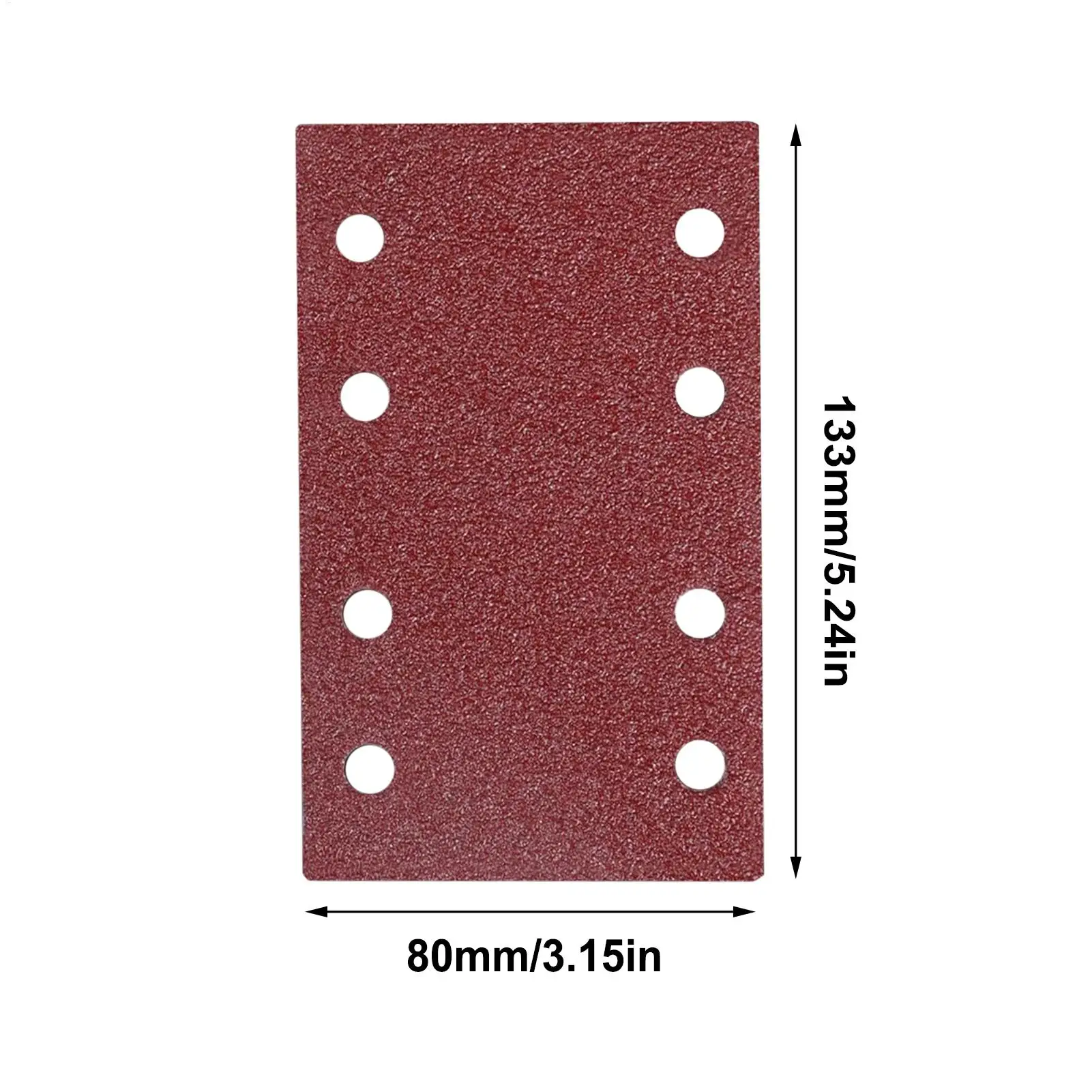 Product specifications: Product name: Orbital Sander Pads Product material: aluminum oxide particles, resin Product size: about 8x13.3cm/3.15x5.24 inches Product attributes: 40/60/80/100/120/150/180/240/320/400/600/800 grit Product weight: about 95g