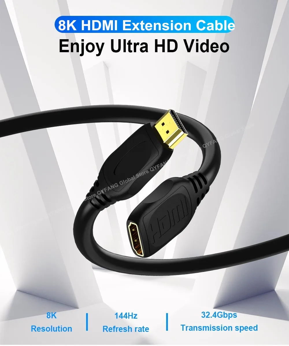 Name: 8K HDMI 2.1 Extension Cable 4K HDMI 2.0 Extension CableColor: BlackVersion:8K HDMI 2.1 version: 8K @ 60Hz 4K @ 120Hz4K HDMI 2.0 version: 4K @ 60Hz1-5m(4K@60Hz)5-15m(4K@30Hz)8K HDMI 2.1 bandwidth: 48Gbps4K HDMI 2.0 bandwidth: 18Gbps