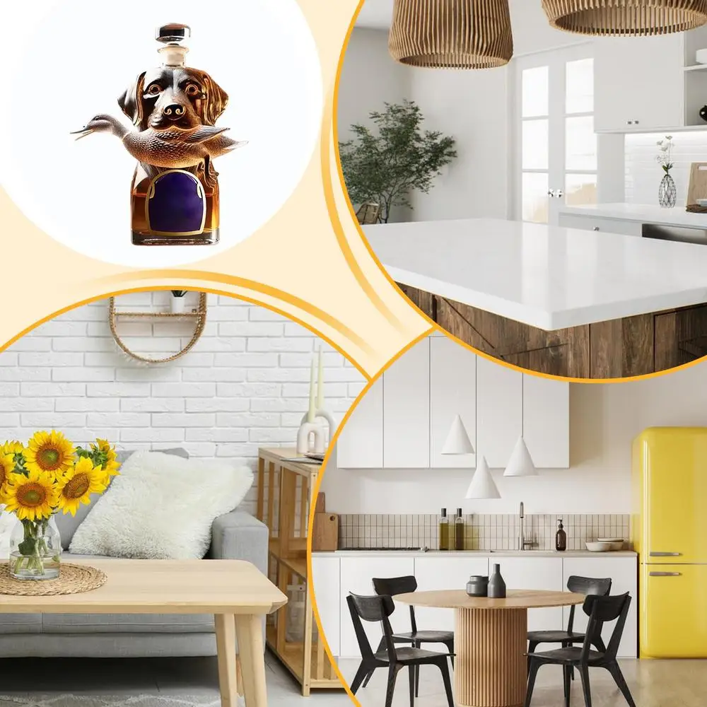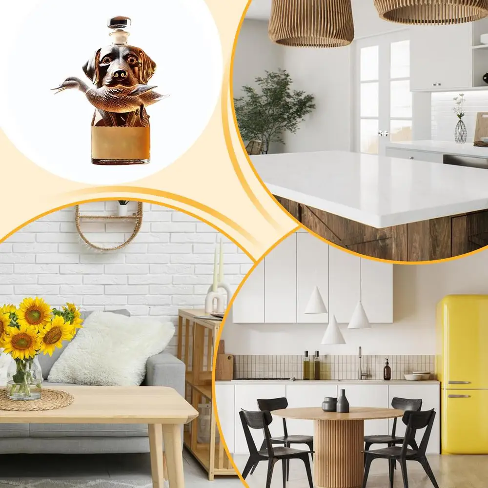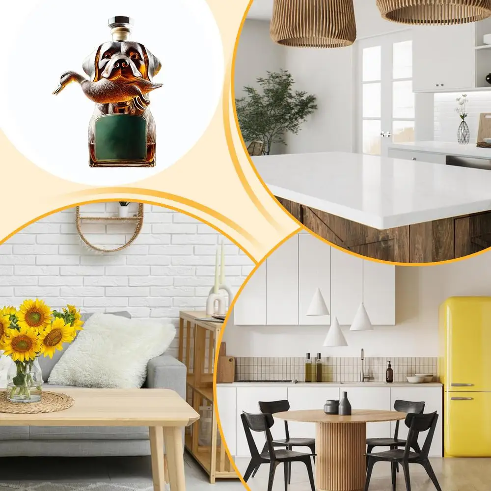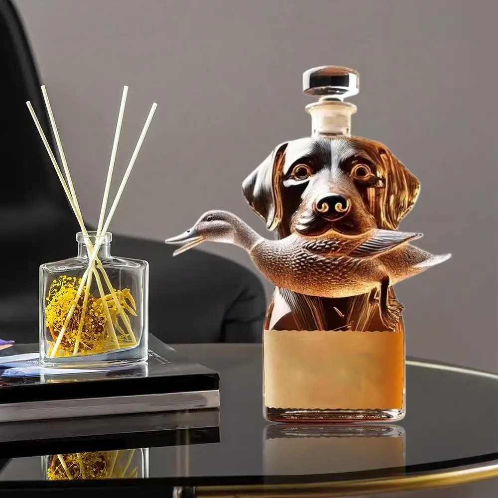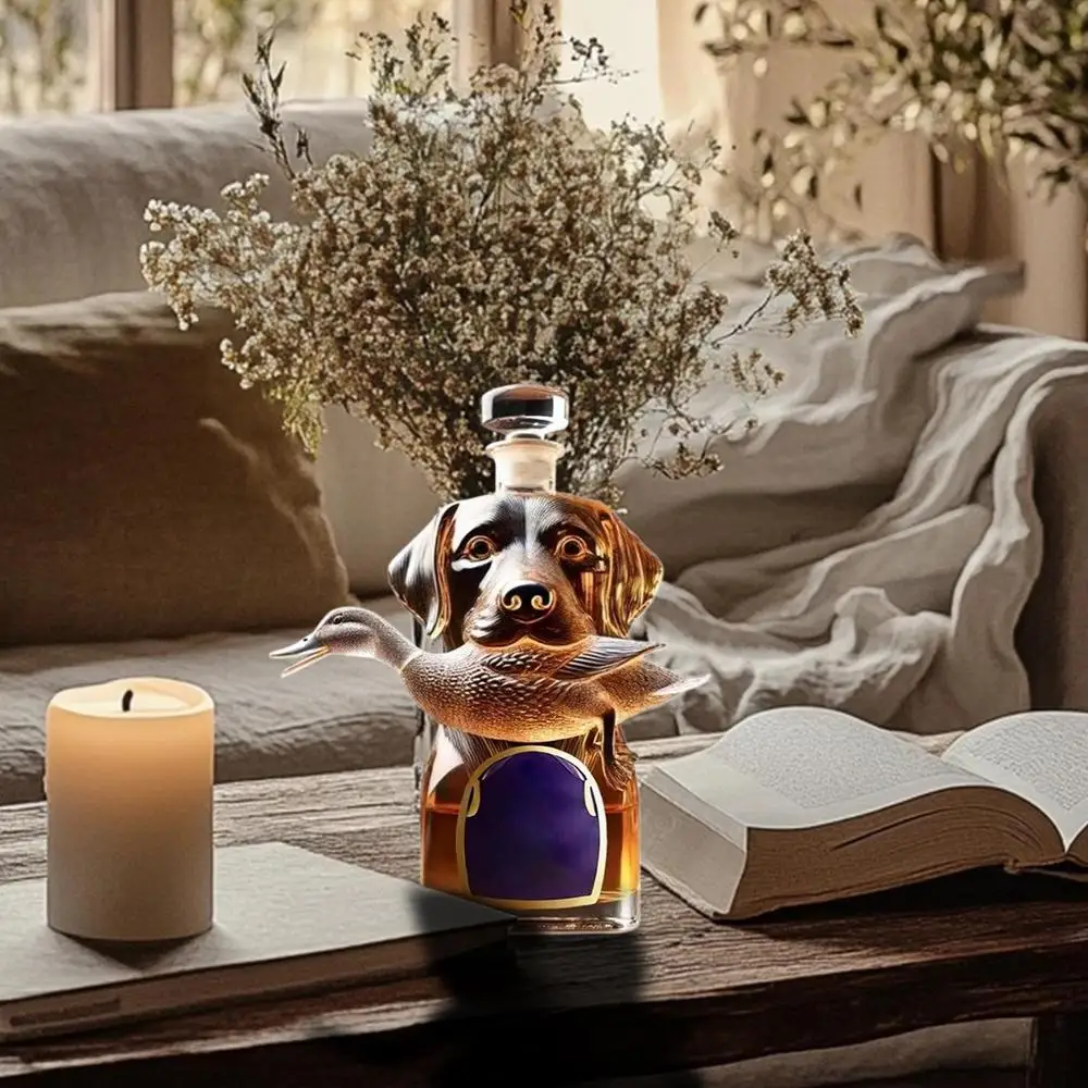 Bullet Points: 1.Stylish Whiskey Storage: Upgrade your whiskey experience with a hound-shaped decanter, doubling as a home decor accent piece, featuring intricate 3D engraved detail, glass bottle for stylish whiskey storage, decorative bottle display 2.Sturdy Glass Construction: Combining wear resistant with hand polished detailing, the bottle provides smooth tactile surfaces and robust thick clear glass structure, ensuring long-lasting use and refined aesthetics 3.Vintage Decor Enhancement: Designed to complement living spaces, this whiskey bottle integrates smoothly into living rooms and kitchen areas, creating a timeless and sophisticated ambiance 4.Refined Bottle Art and Stability: Smooth engraved surfaces highlight the deep carved pattern design, complemented by a stable flat bottom structure and vivid hound figure detailing for refined aesthetics 5.Whiskey Lover's Delight: A timeless addition to home decor, this whiskey bottle features a classic themed design, making it both a cherished collectible item and a thoughtful holiday gift for lovers of fine spirits Crafted as an airtight container, this whiskey bottle is ideal for preserving the rich flavors of vodka, tequila, bourbon, brandy, and wine. Its special dog statue design doubles as a collectible figurine, making it perfect for home decor or table centerpieces. Whether used as desk decor or party decorations, this alcohol holder adds a touch of elegance. A thoughtful gift for men or fathers who appreciate functional art.
