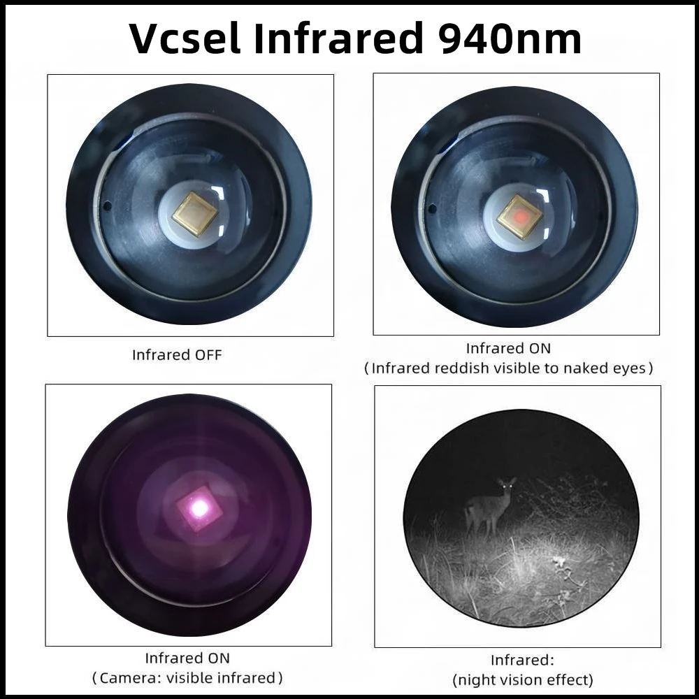 Vcsel 850nm/940nm: TK504 IR Latest infrared chip Led with night vision more bright visible longer distance Vcsel 850nm/940nm LED today's smallest and most advanced infrared LED with high efficiency, low thermal resistance. It can produce a powerful punch with approximately 100-500 meters+ range with focused beam. (The farthest can reach more than 500 meters.)