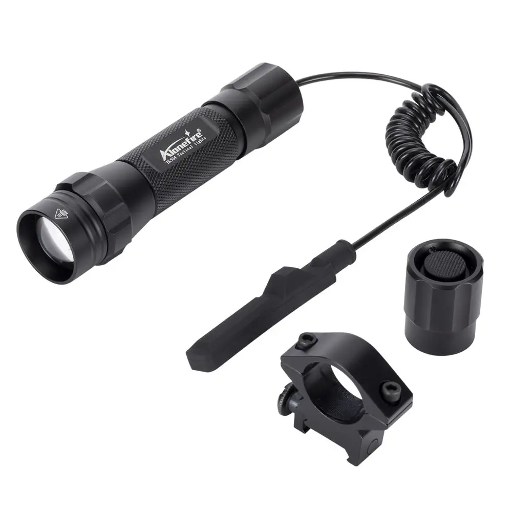 Packing list: 1 x Led flashlight 1 x 18650 battery 1 x 25DK 25mm scope mount 1 x Remote pressure pad switch 1 x USB Charger 1 x Hand rope 1 x Box