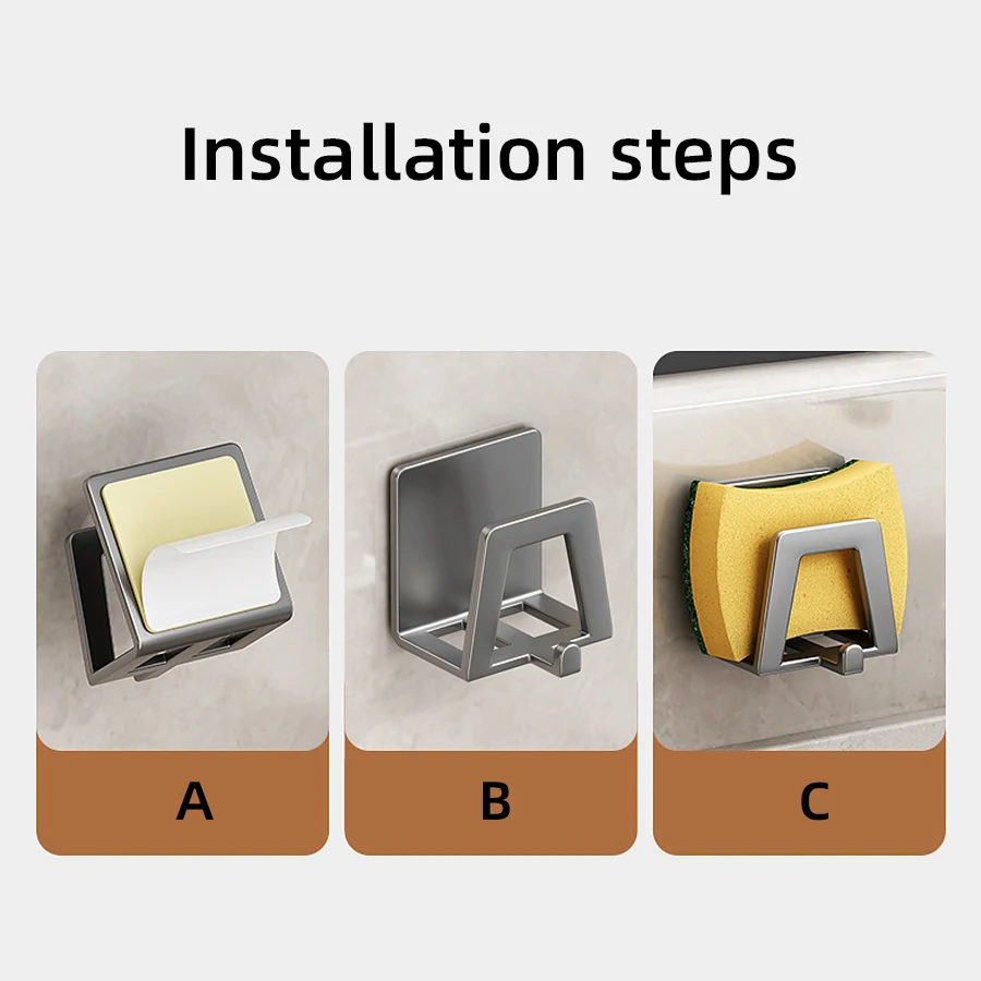 Kitchen Sink Sponge Pot Lid Rack Rack Drain Storage Holder Self Adhesive Stainless Steel Wire Rag Brush Organizer Wall Hooks