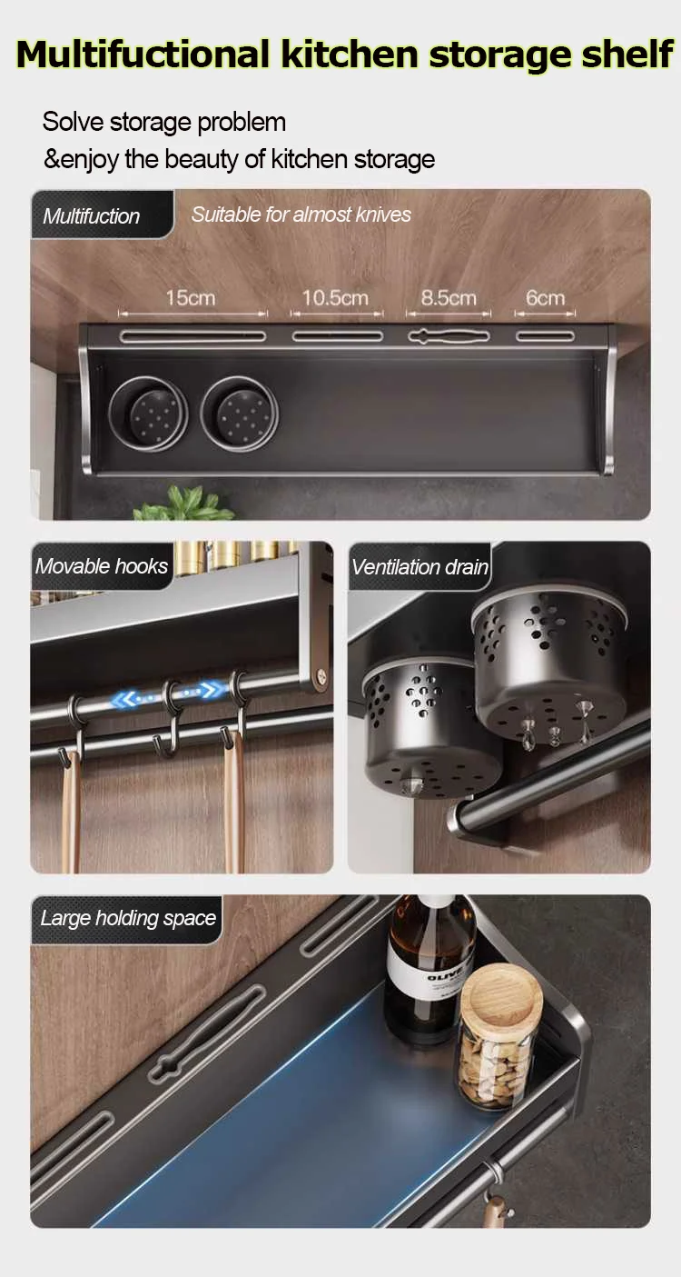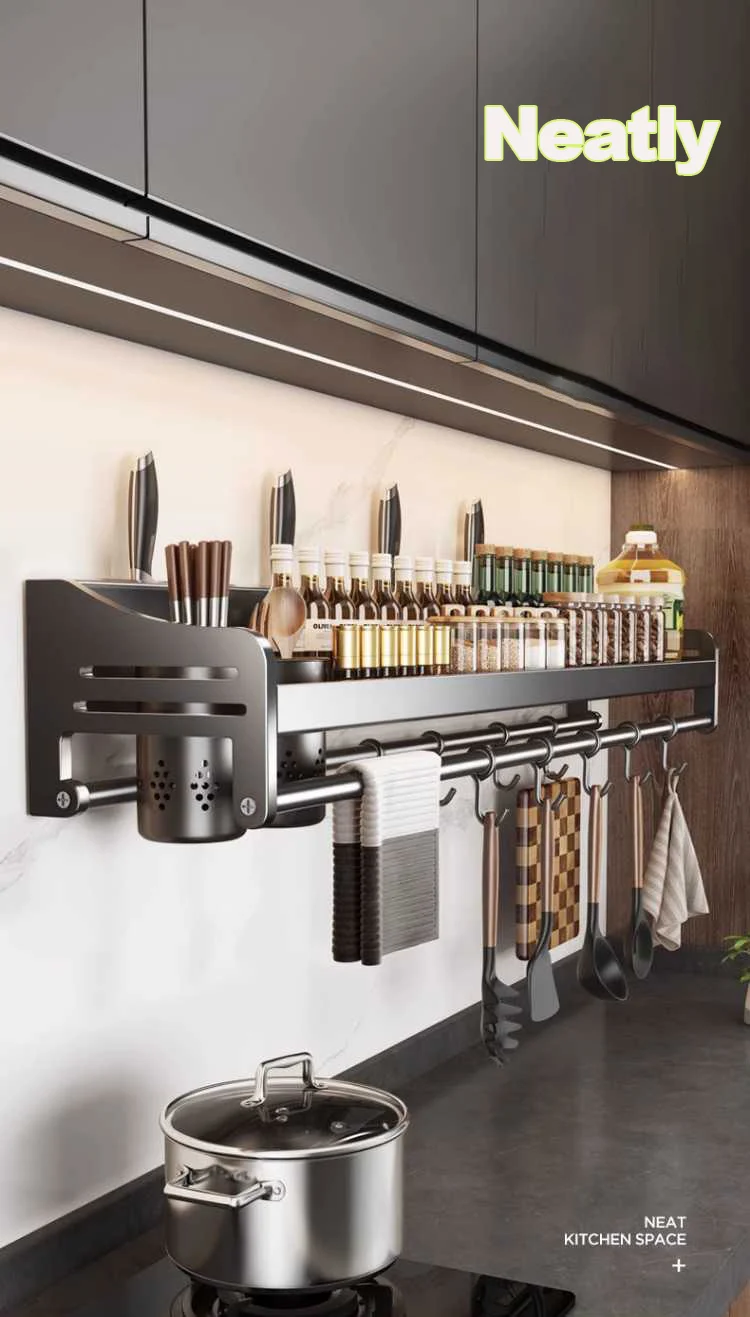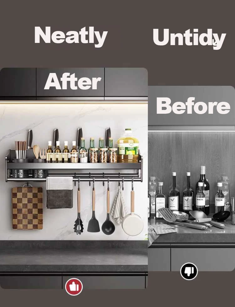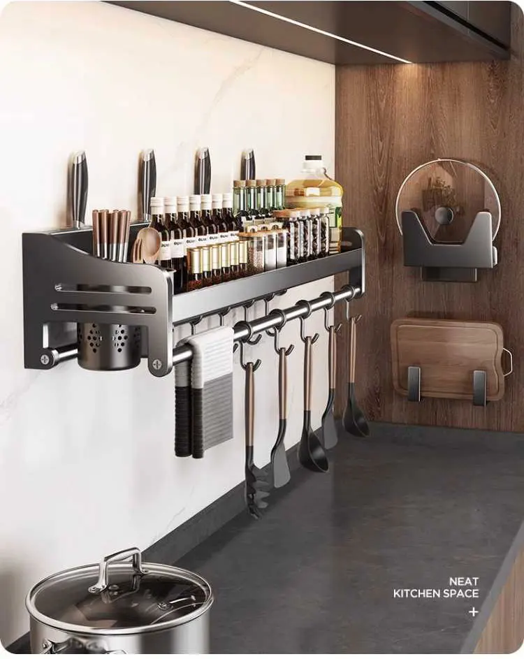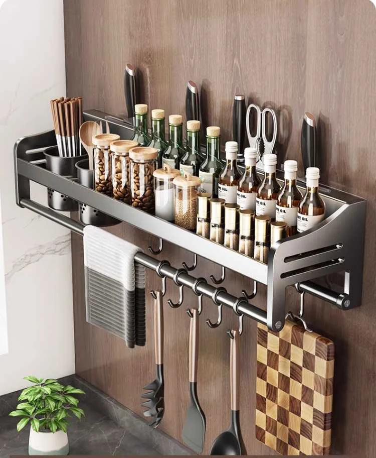 Kitchen Organizer Wall-Mounted Spice Seasoning Storage Racks Knife Spoon Chopsticks Stand Utensils Rack Kitchen Accessories