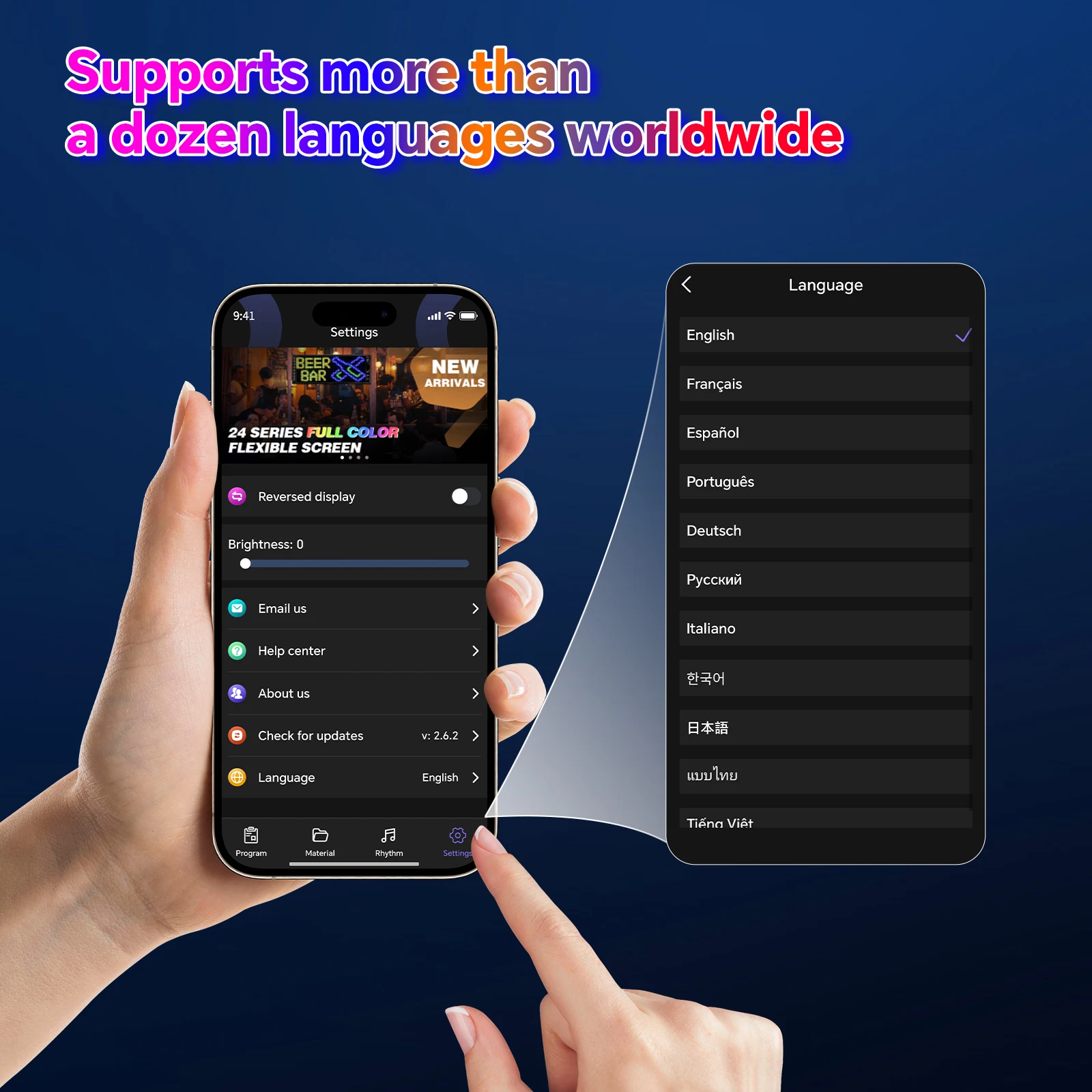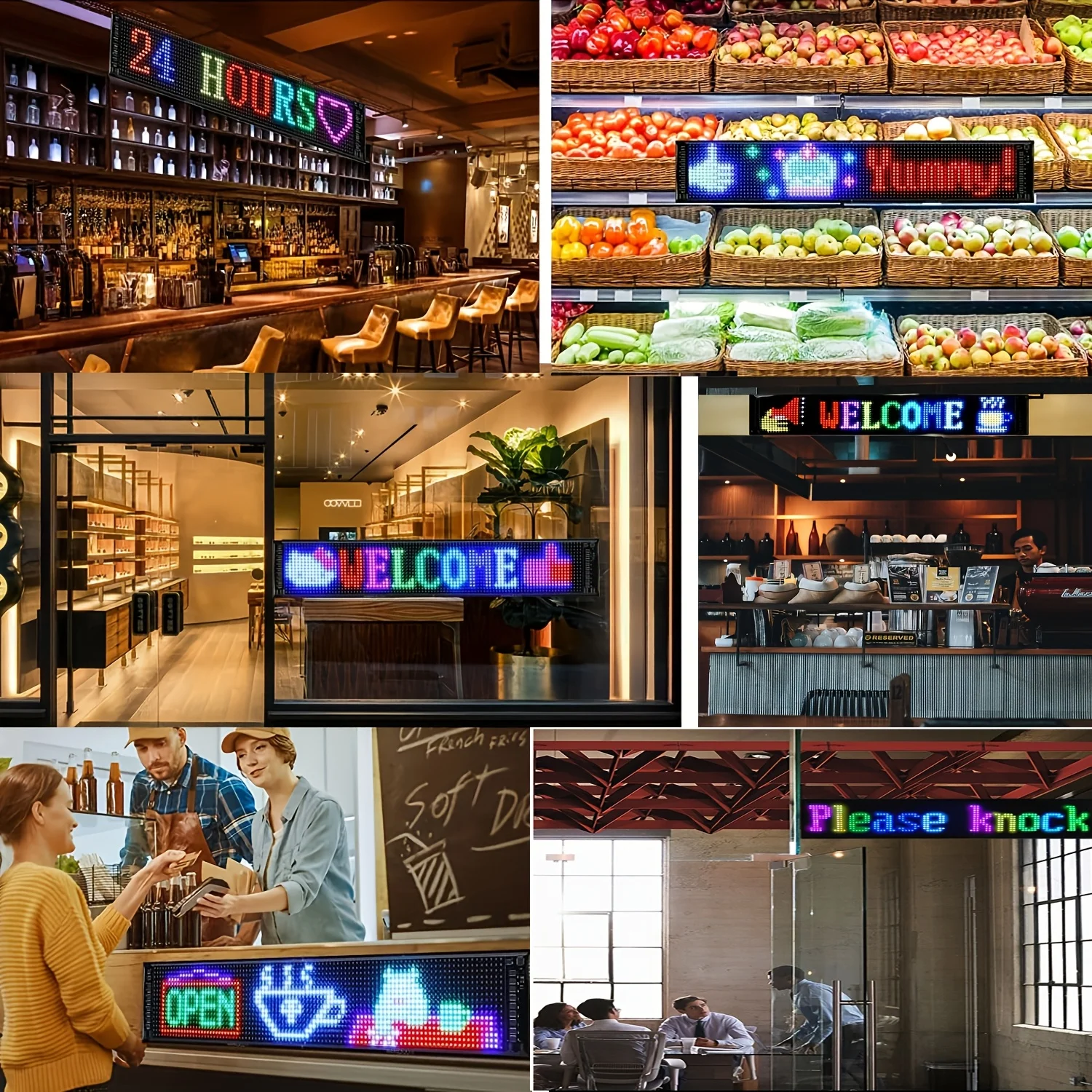 The LED display is controlled by a Bluetooth-connected app, which supports connecting multiple LED displays at the same time, making your store more eye-catching. The app has a variety of fun modes and animations built in. You can more easily use your phone to customize interesting patterns and texts to create a personalized store.