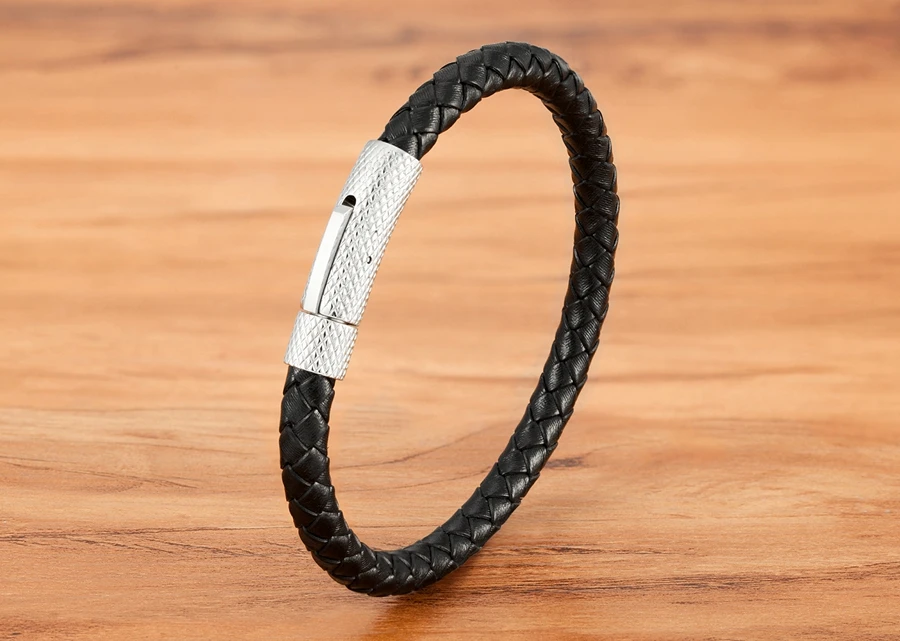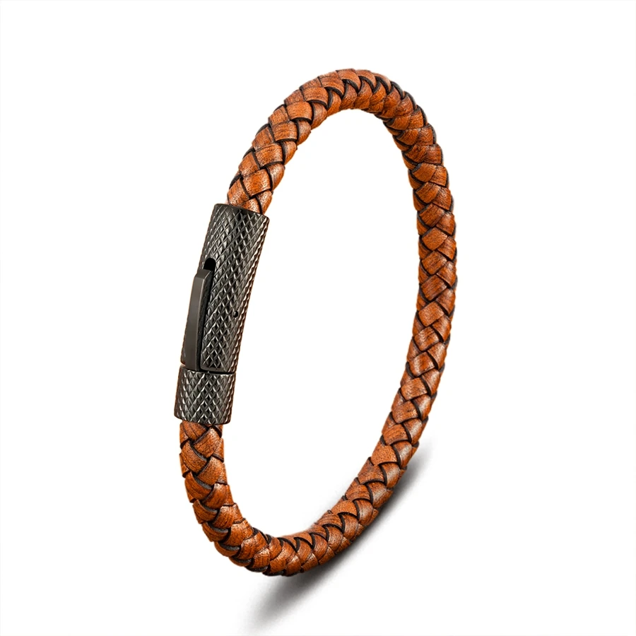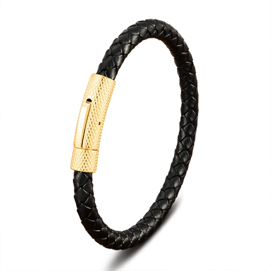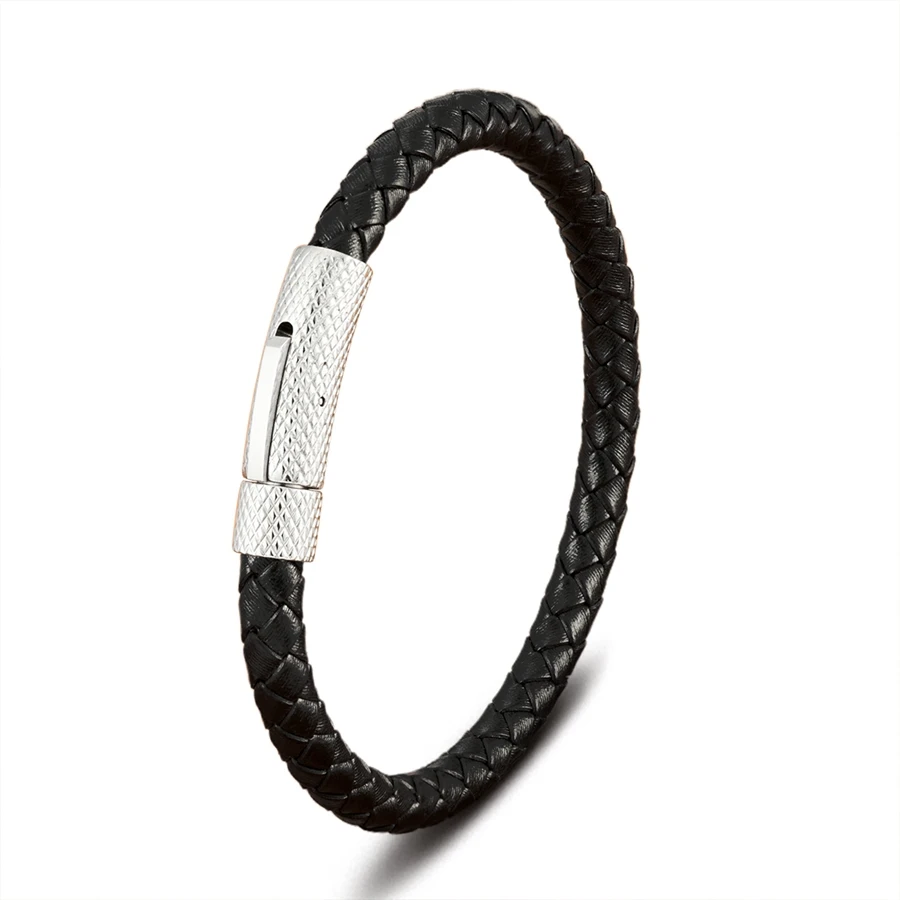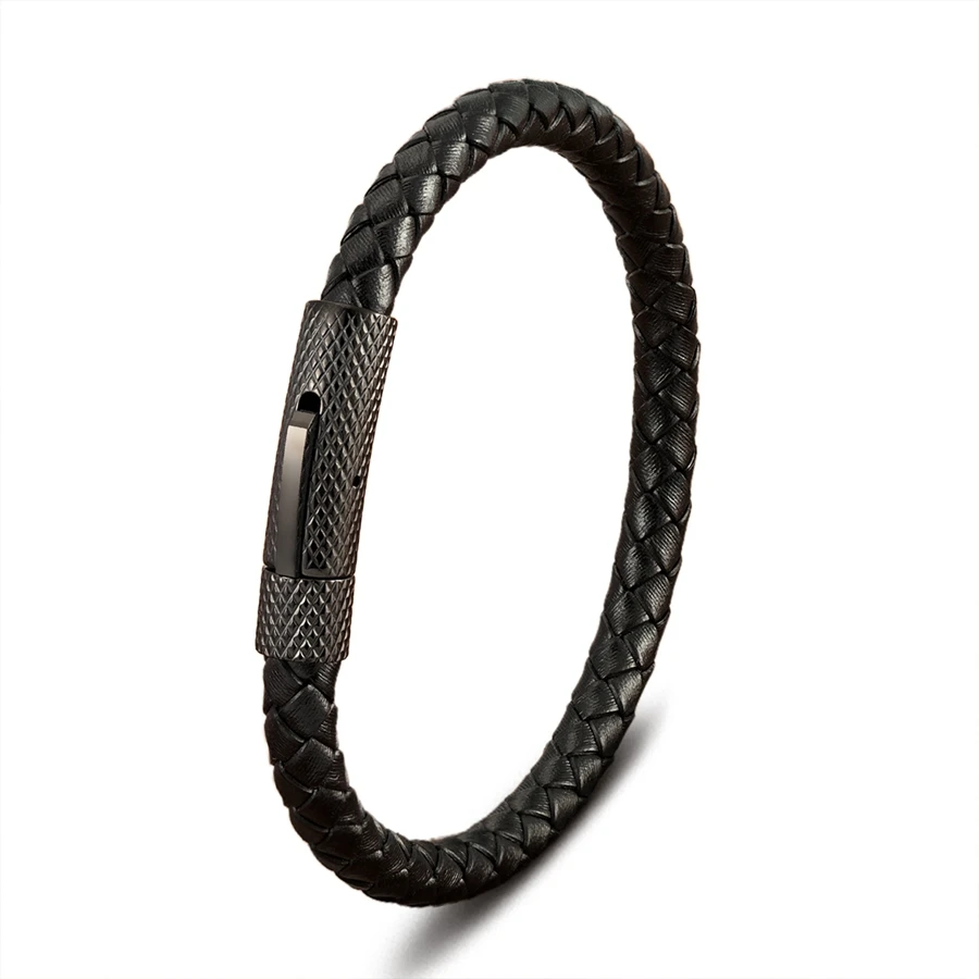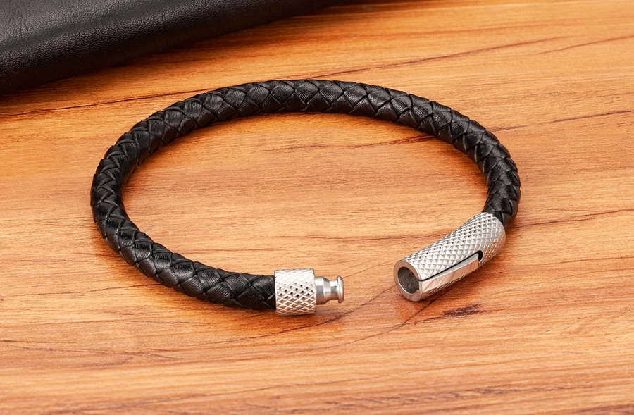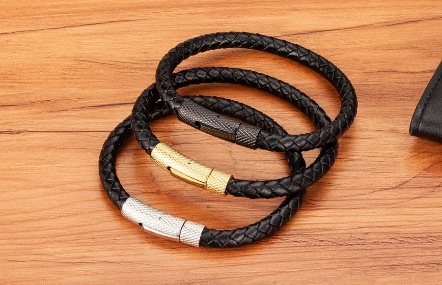 TYO Luxury Classic Style Stainless Steel Mens Leather Bracelet Hand-woven Magnetic Clasp Black Simple Jewelry Gifts Customization