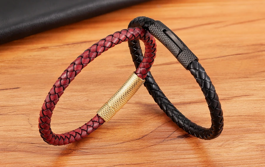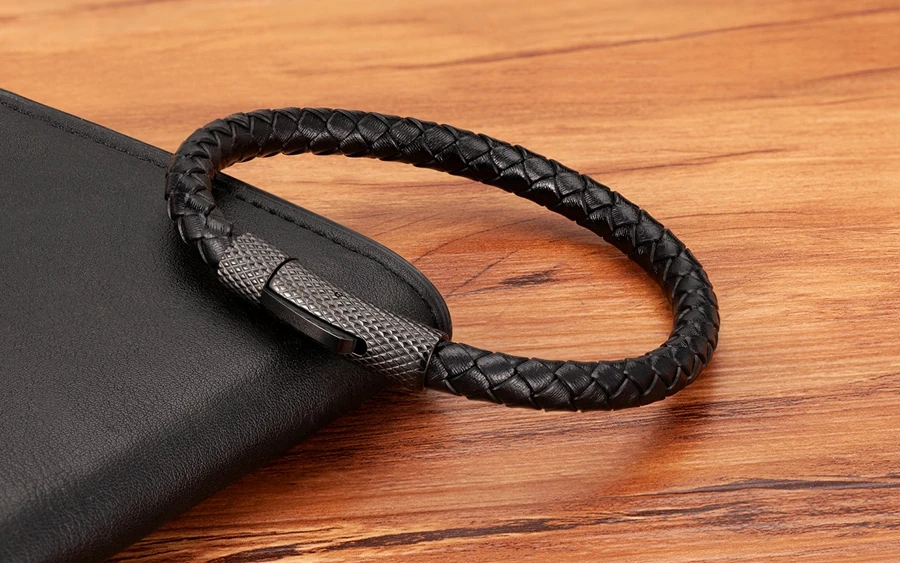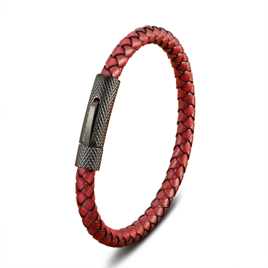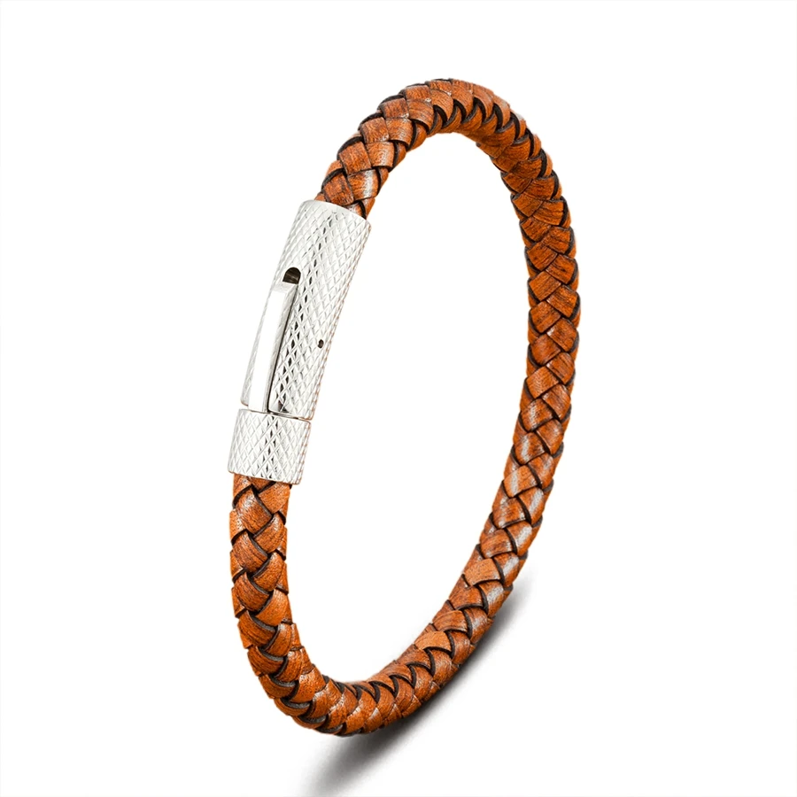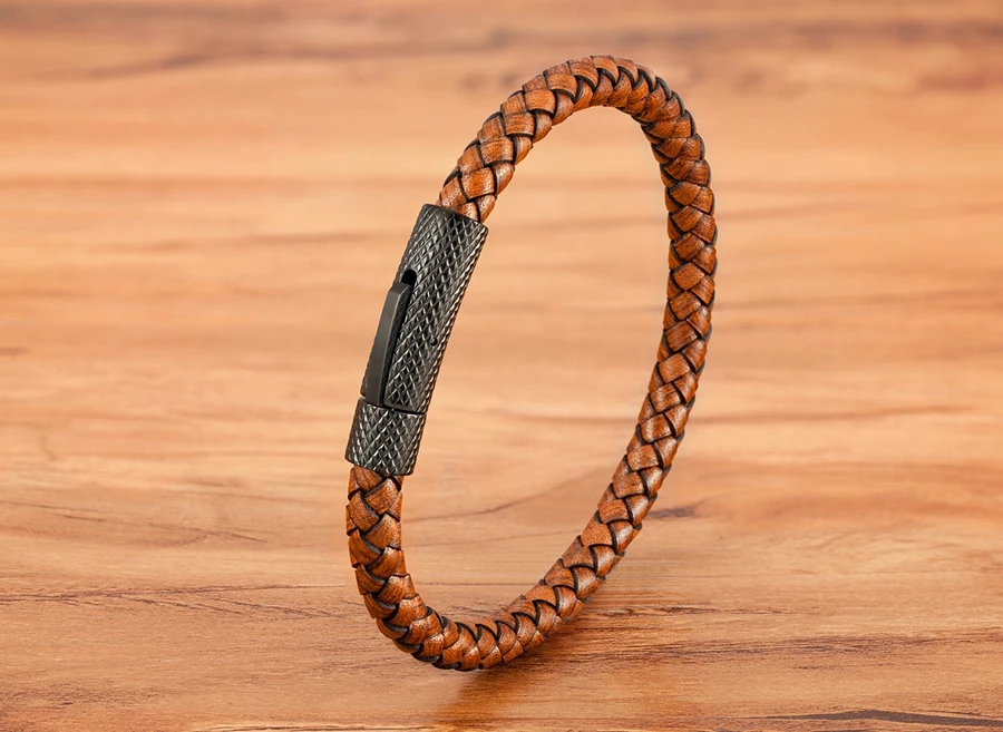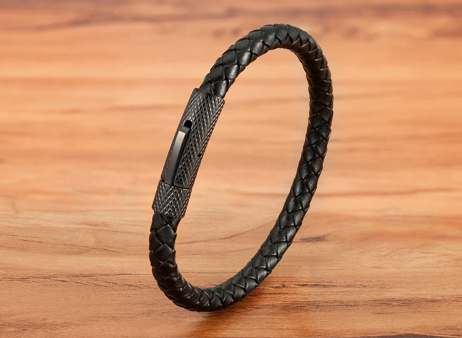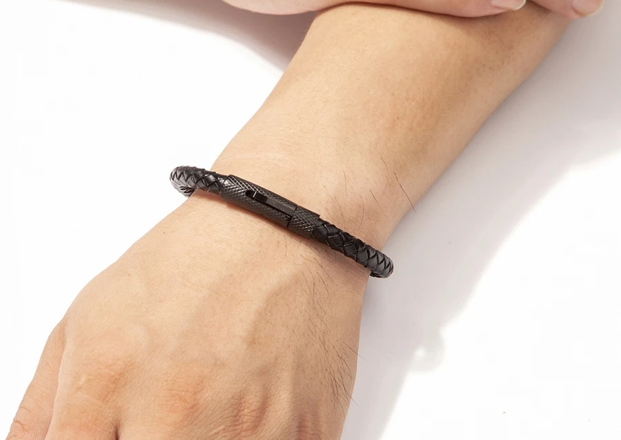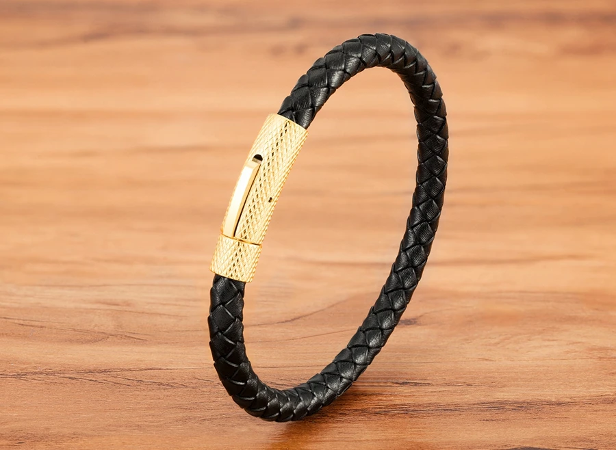 TYO Luxury Classic Style Stainless Steel Mens Leather Bracelet Hand-woven Magnetic Clasp Black Simple Jewelry Gifts Customization