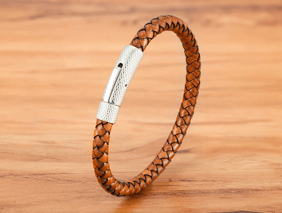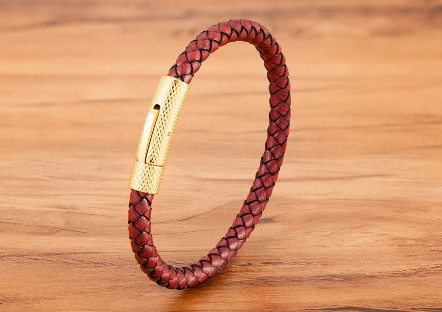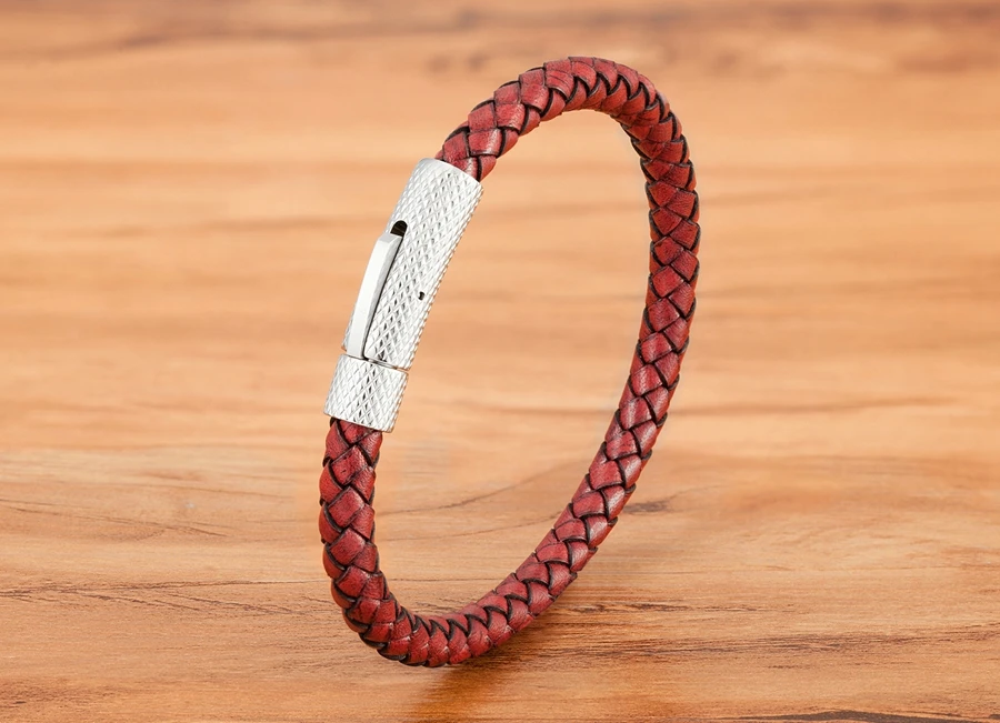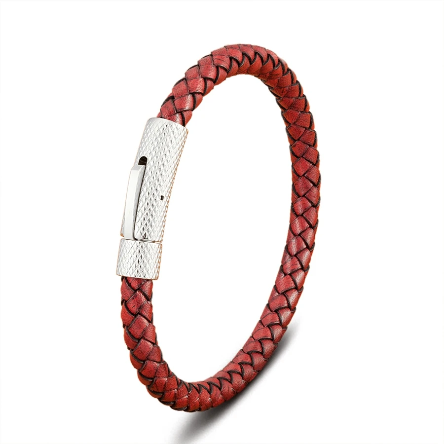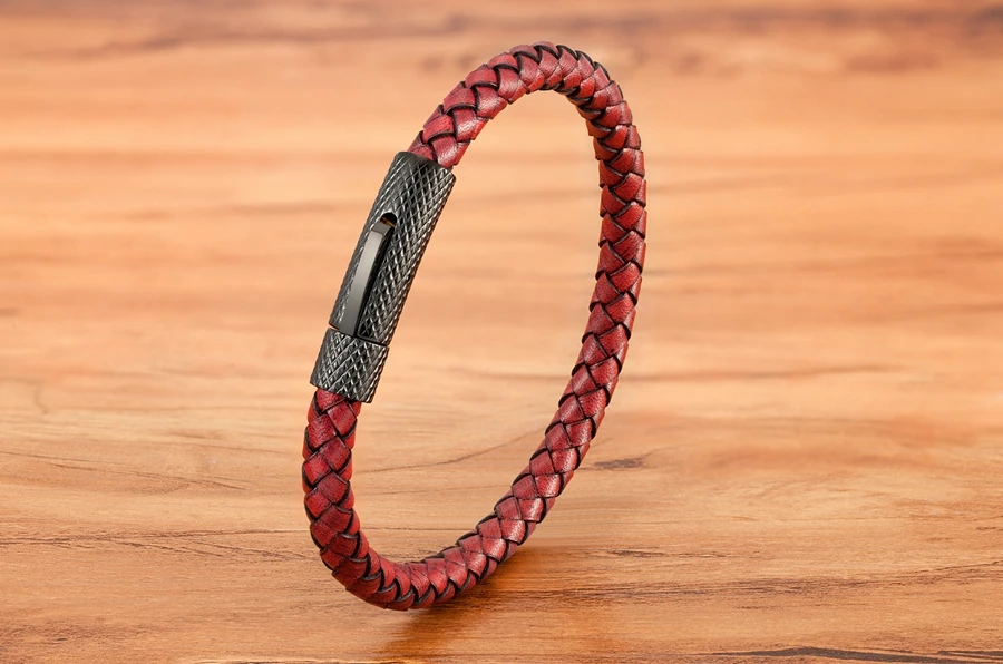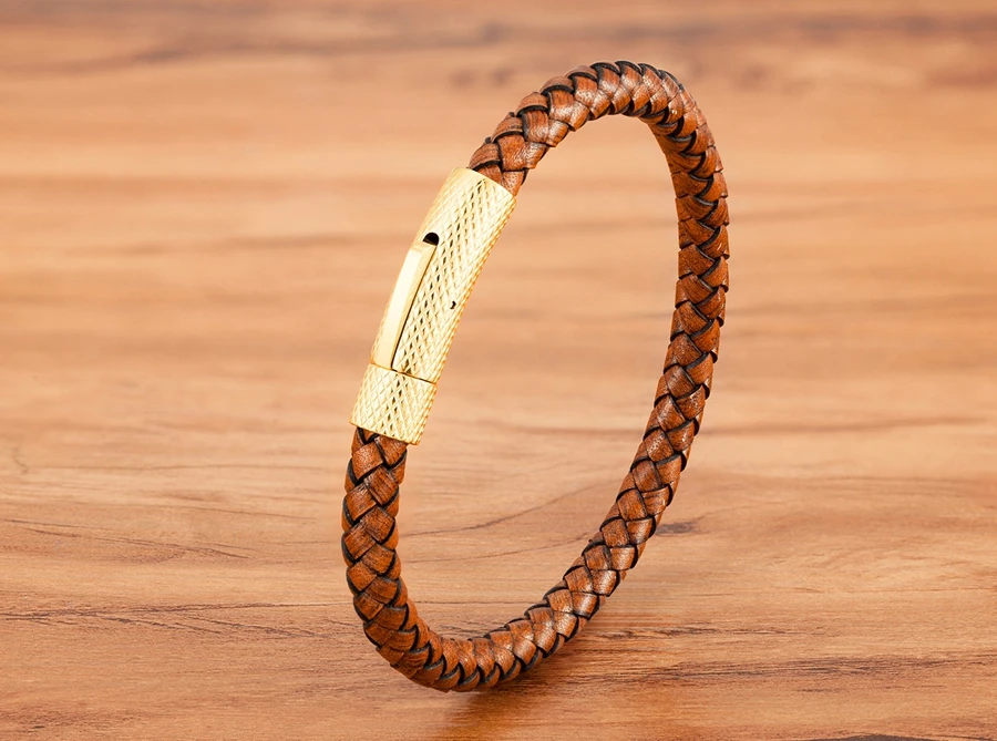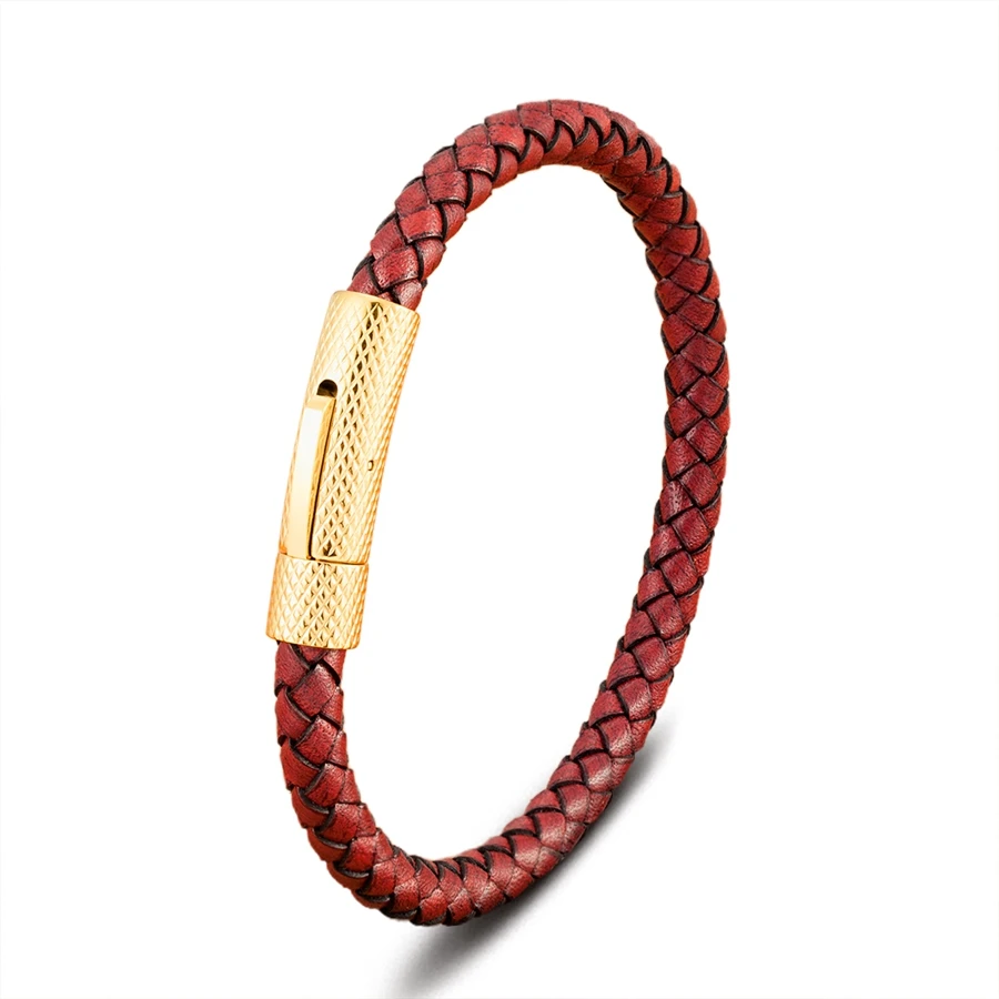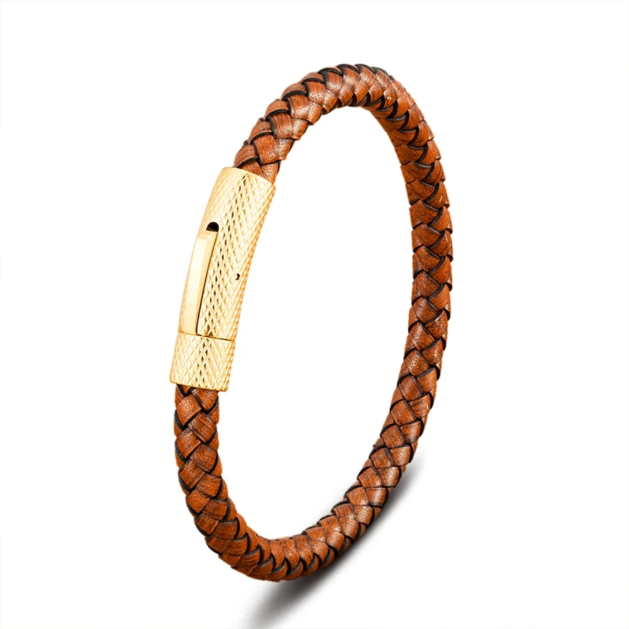 TYO Luxury Classic Style Stainless Steel Mens Leather Bracelet Hand-woven Magnetic Clasp Black Simple Jewelry Gifts Customization