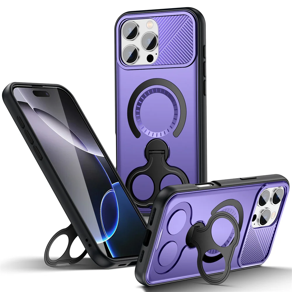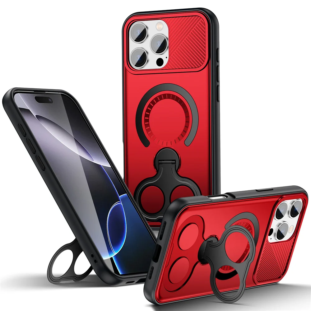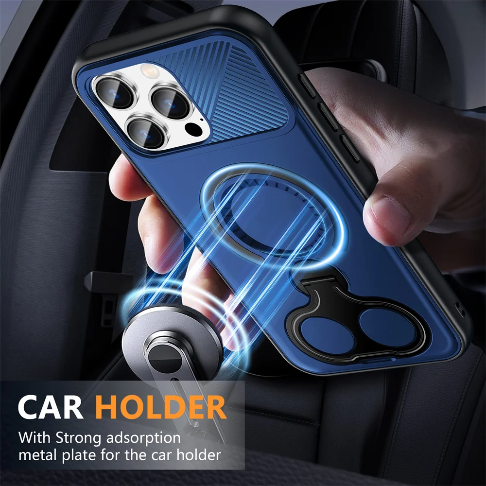 Luxury Dual Finger Ring Stand Magnetic Phone Case For iPhone 15 16 17 Pro Max Air Plus 16e 14 13 12 Wireless Charge Armor Cover