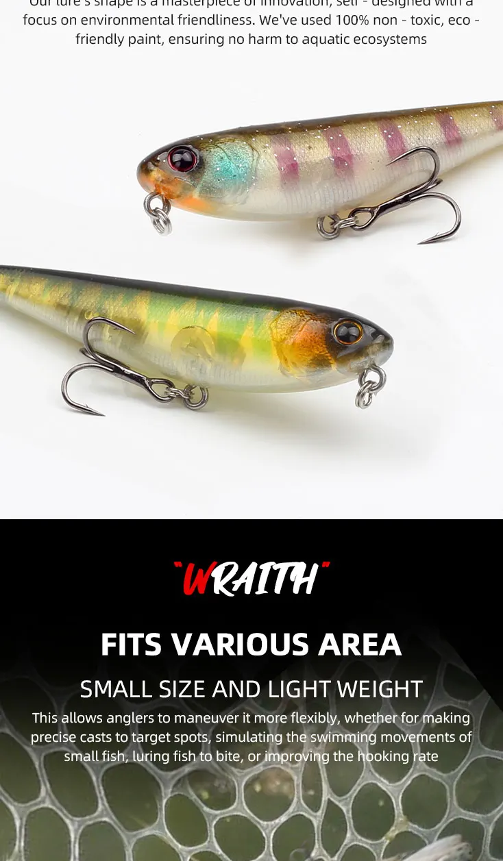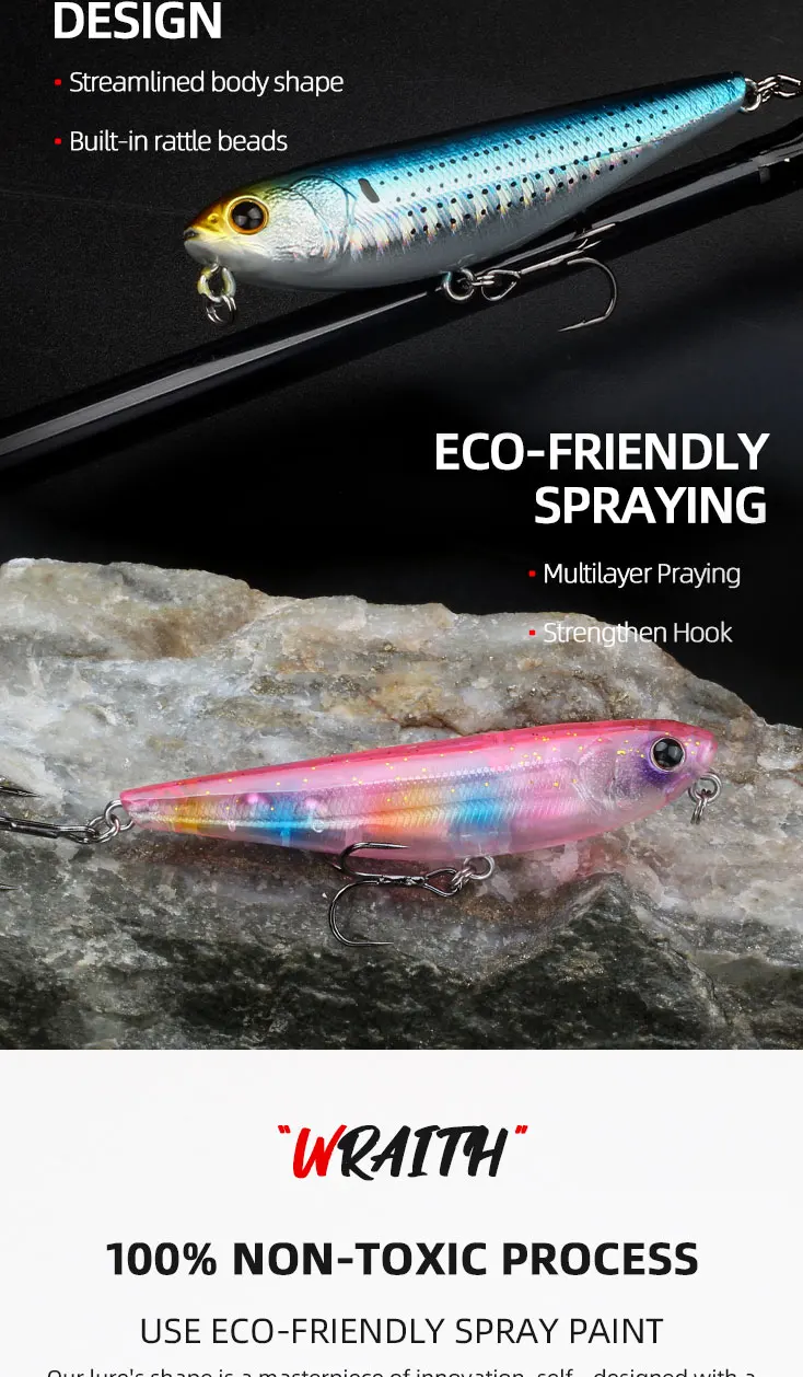 2.Our lure's shape is a masterpiece of innovation, self - designed with afocus on environmental friendliness. We've used 100% non - toxic, eco-friendly paint, ensuring no harm to aquatic ecosystems.