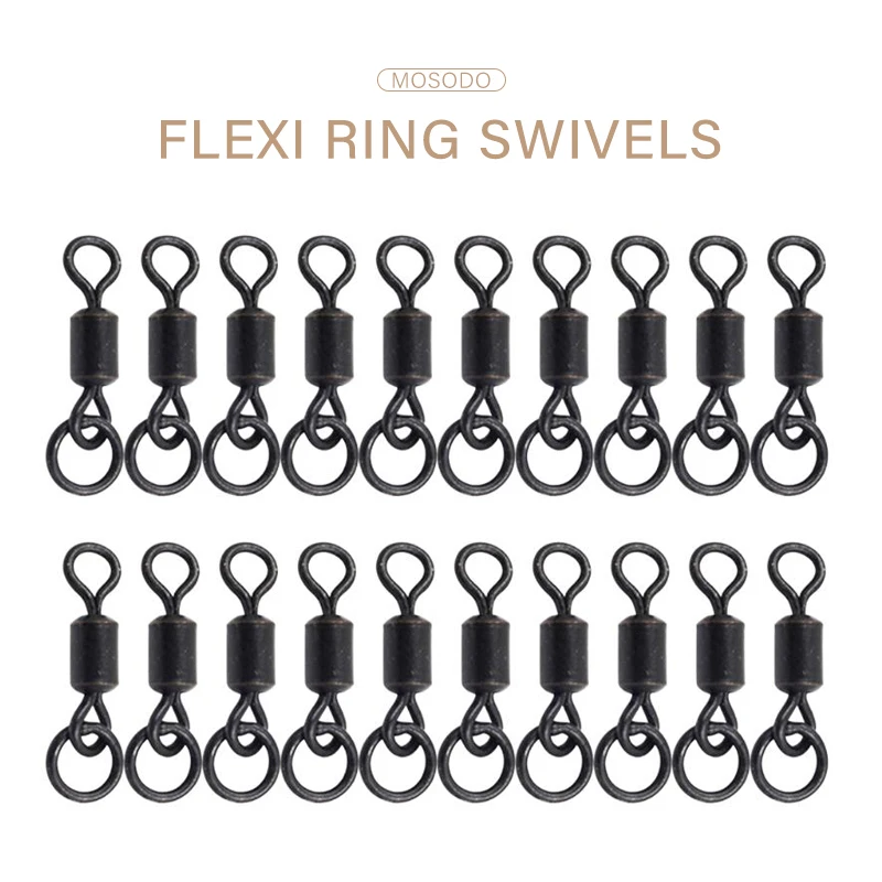 Mosodo 20PCS Carp Fishing Swivels Quick Change Flexi Ring Swivels Matt Black Micro Hook Ring Link Ring with Rolling Swivel