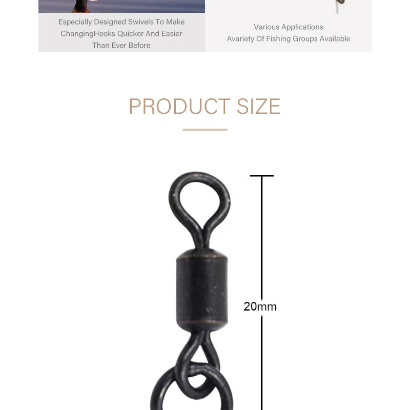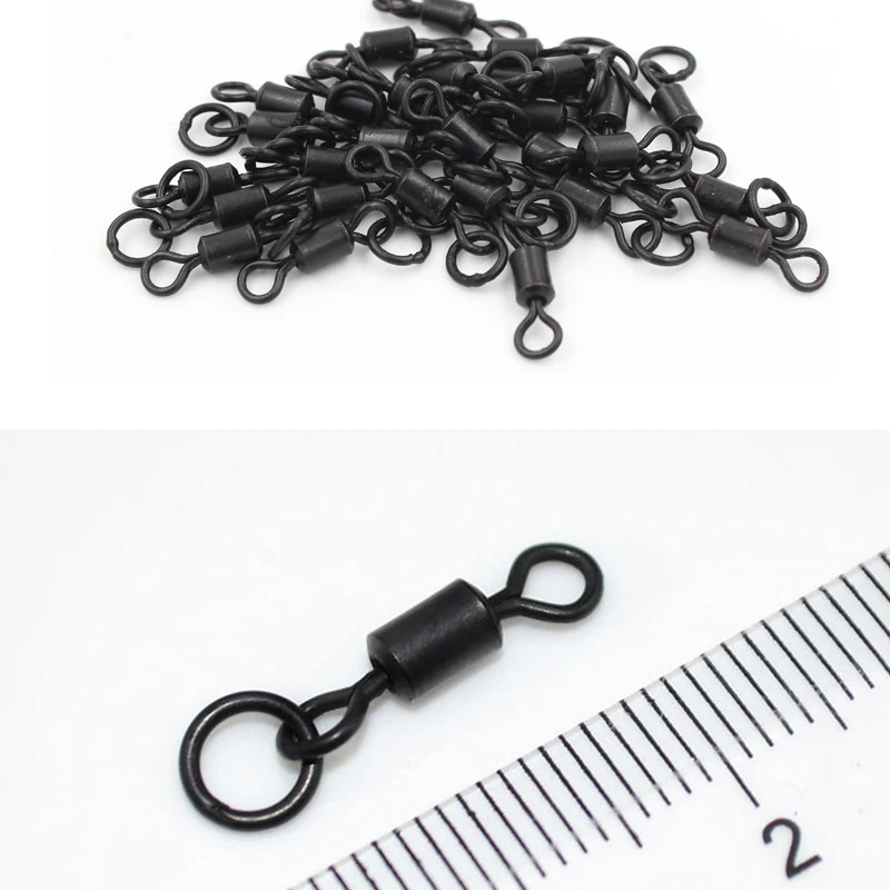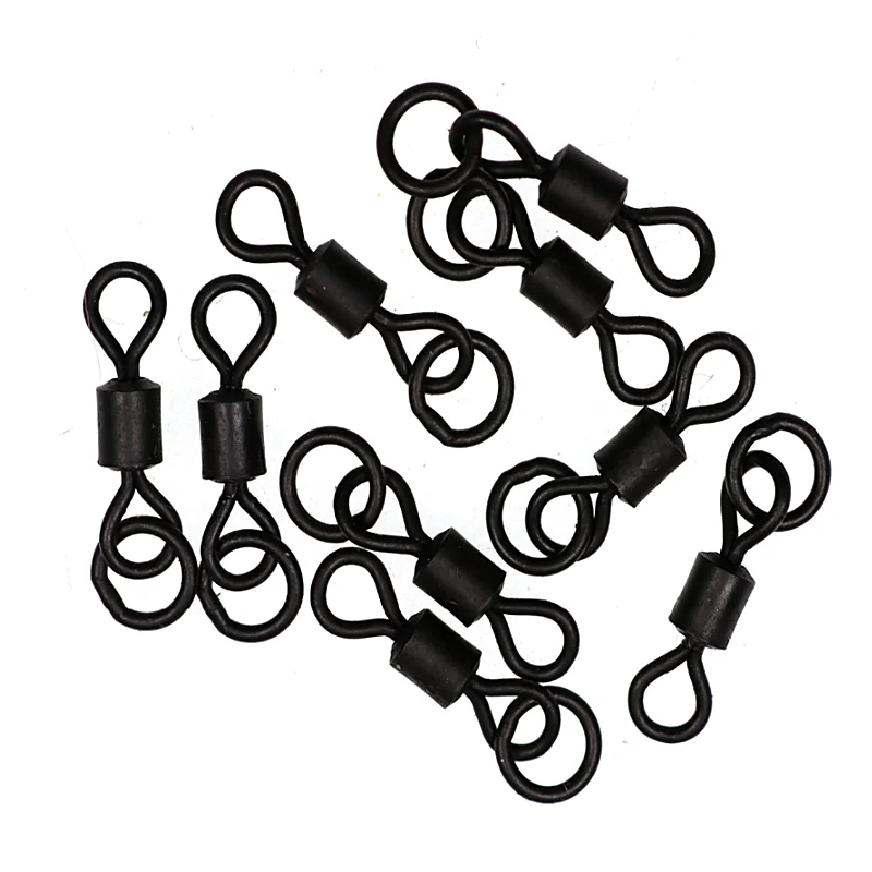 Specifications: Product Name: Carp Fishing Swivels Color:Matte Black Product Size:20mm Length Weight:10g/bag Application:Carp Fishing Package:OPP Bag Material:Metal Quantity:20 pcs/bag